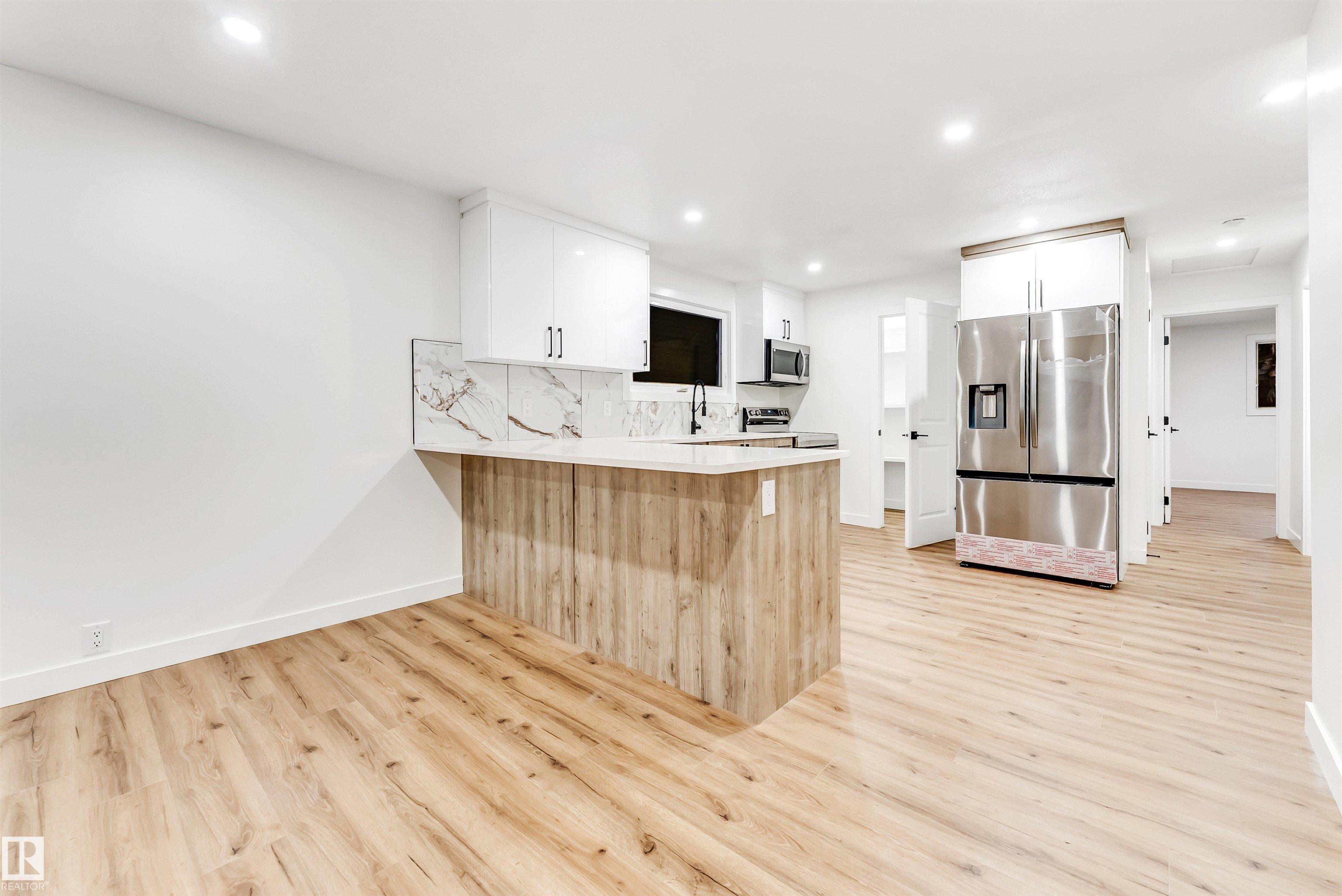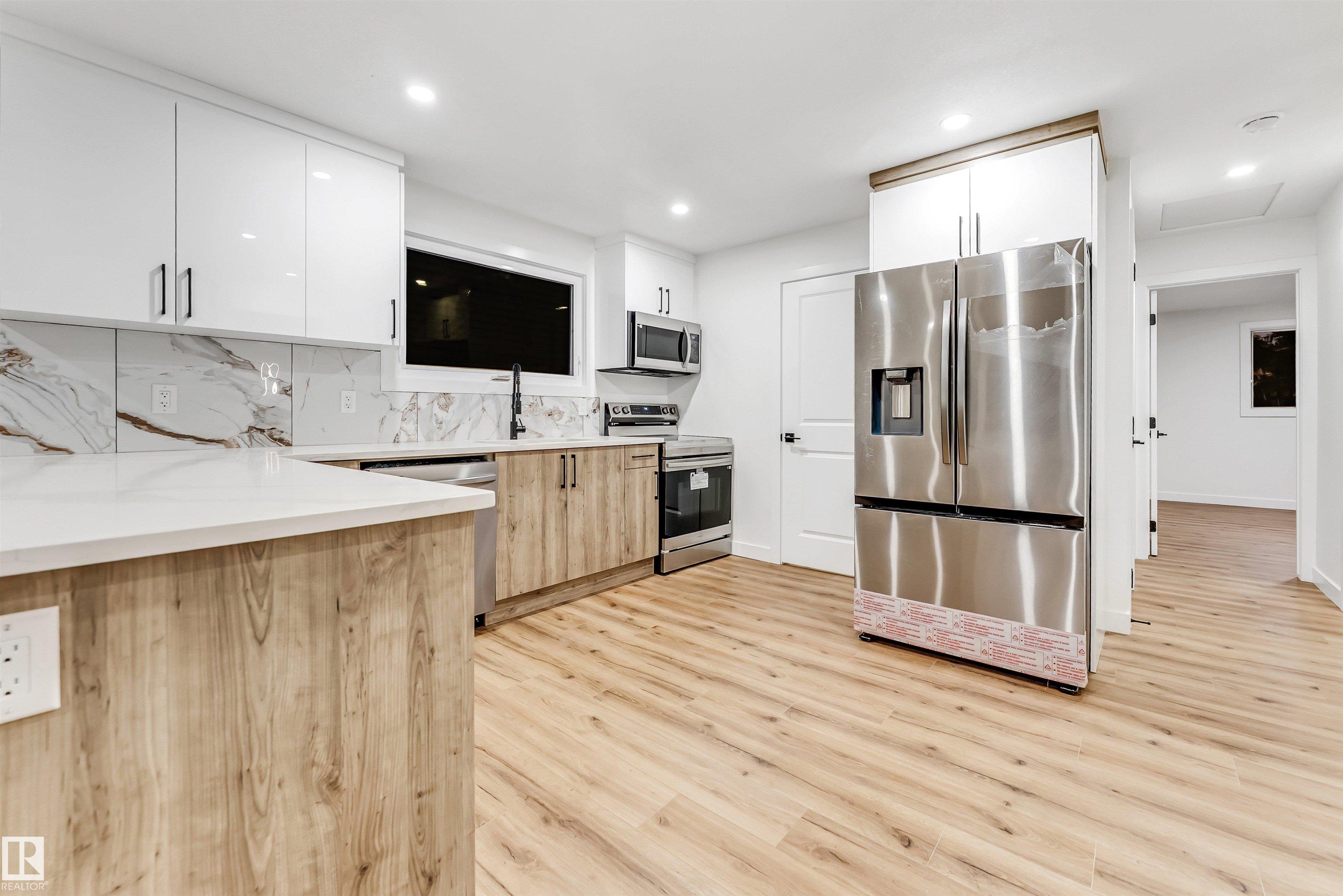FULLY FINISHED TWO-BEDROOM BASEMENT WITH SIDE ENTRY & SEPARATE LAUNDRY AND SECOND KITCHEN! Welcome to Weinlos! This FULLY RENOVATED, freshly painted, CARPET-FREE home offers a bright and inviting main floor with huge windows that fill the space with natural sunlight, upper-floor laundry, and a beautifully renovated kitchen featuring QUARTZ countertops and brand-new cabinets. The fully finished basement is perfect for extended family living, while major upgrades including all new interior doors, recently replaced hot water tank and shingles, and brand-new appliances (except the basement washer and dryer) provide peace of mind for years to come. Ideally located within walking distance to Kate Chegwin School (ONLY 2 mins ) , parks, and the Sikh temple, with quick access to Whitemud Drive and Anthony Henday Drive, this move-in-ready home offers the perfect blend of comfort, convenience, and quality. Some pictures are virtually staged.