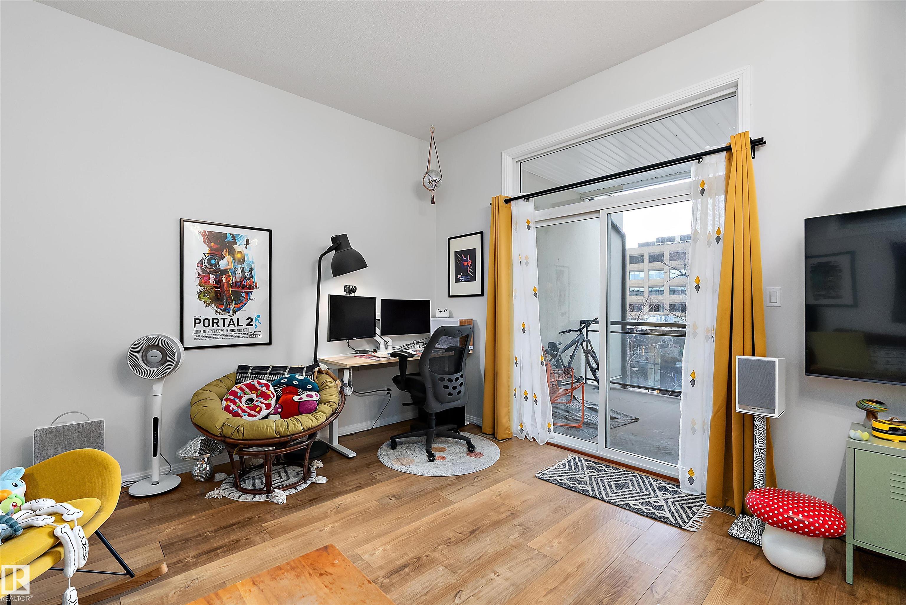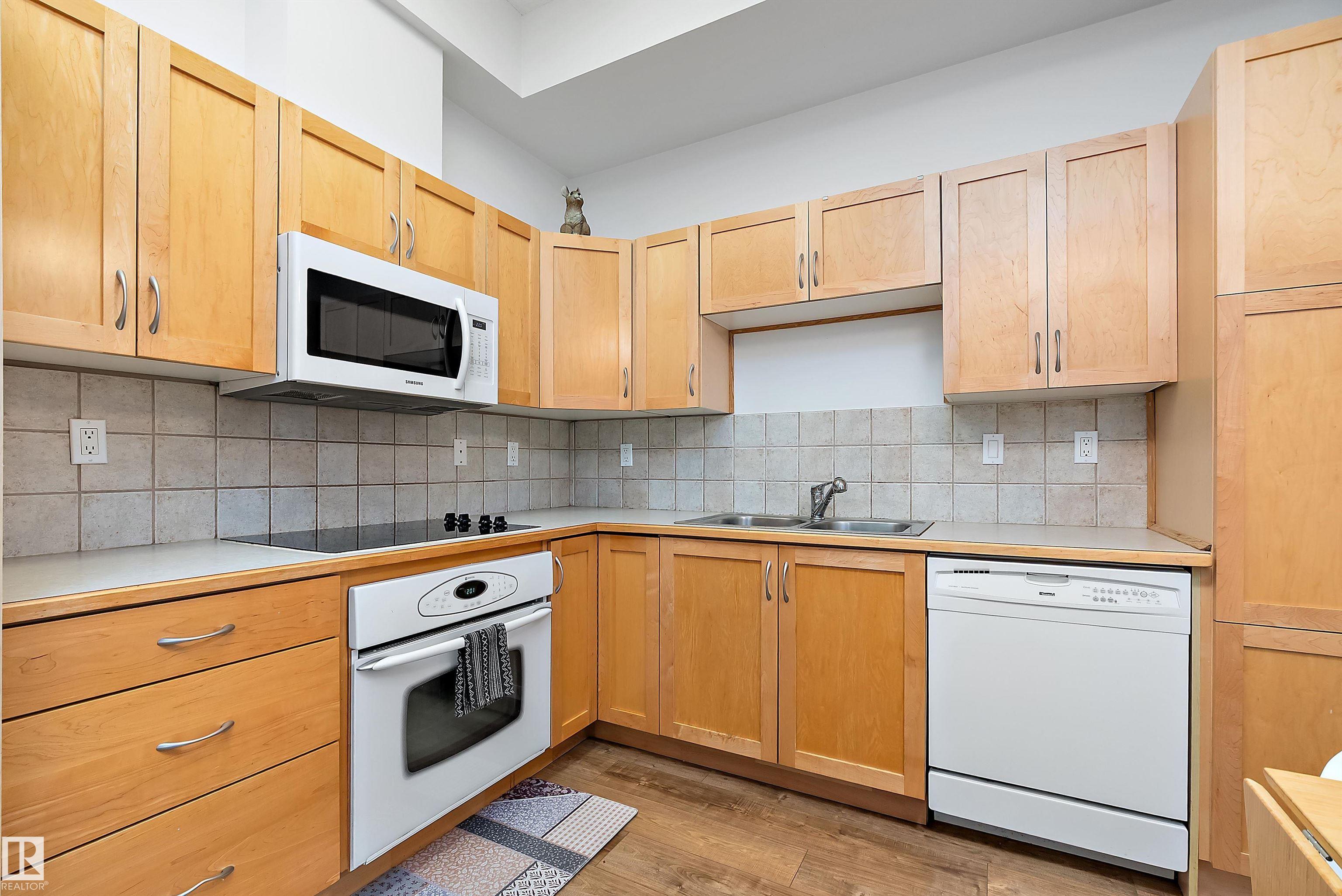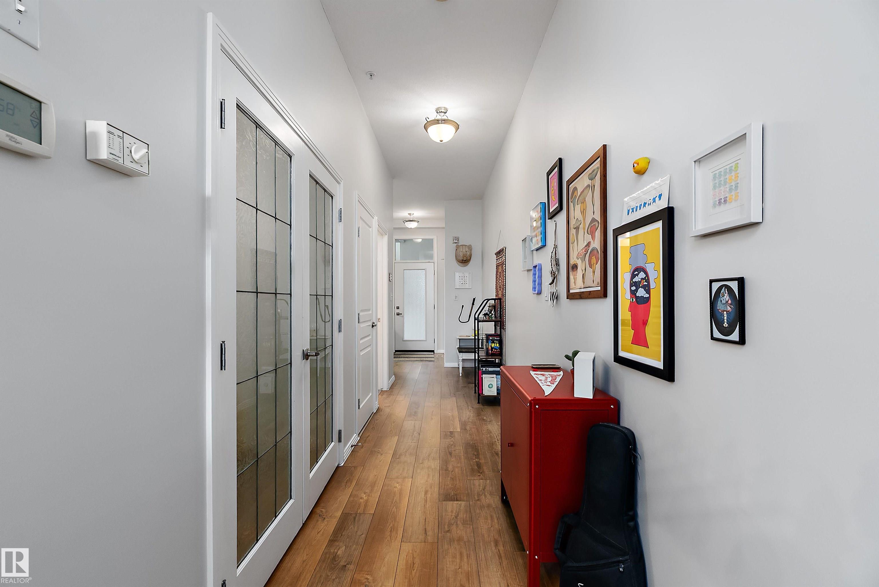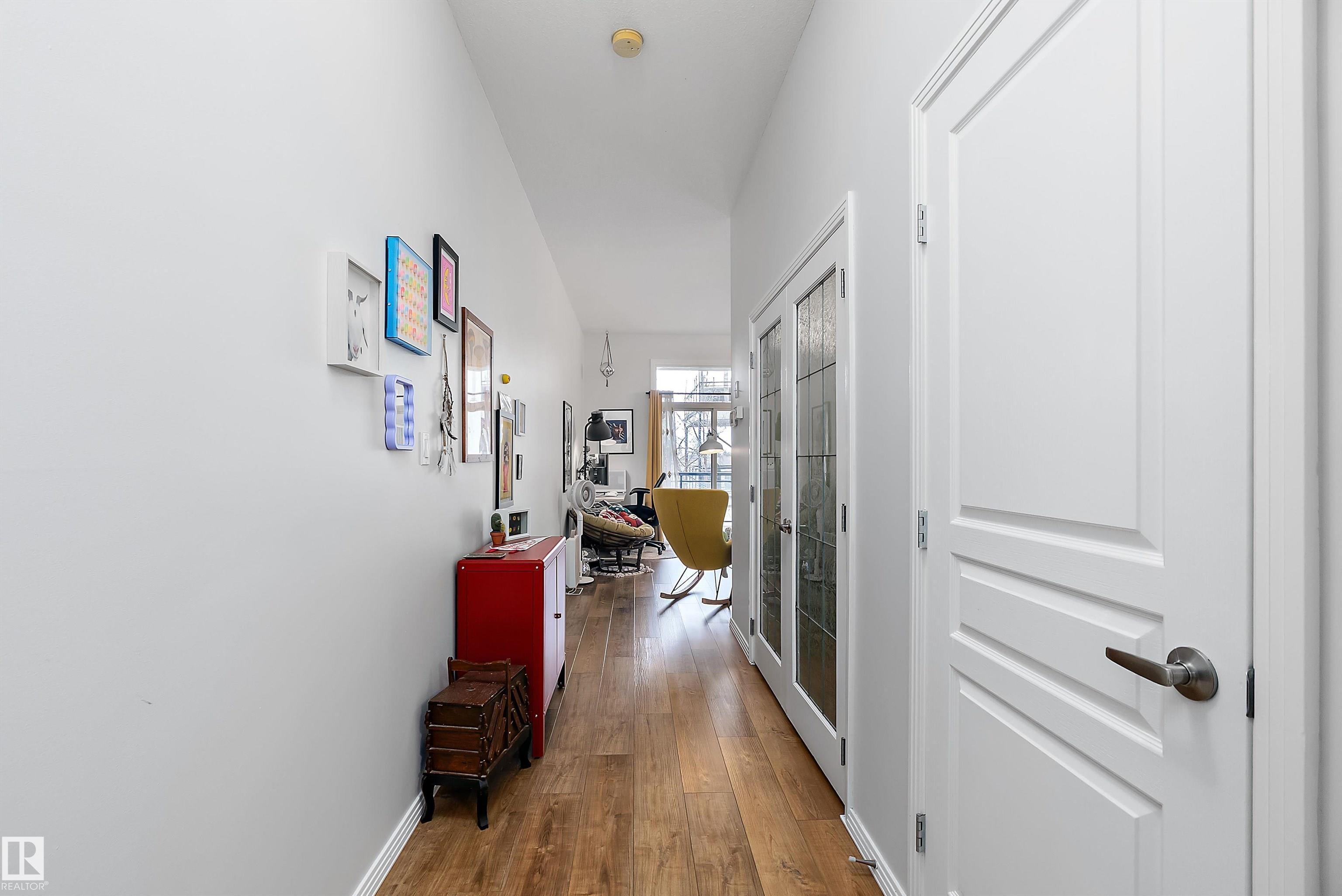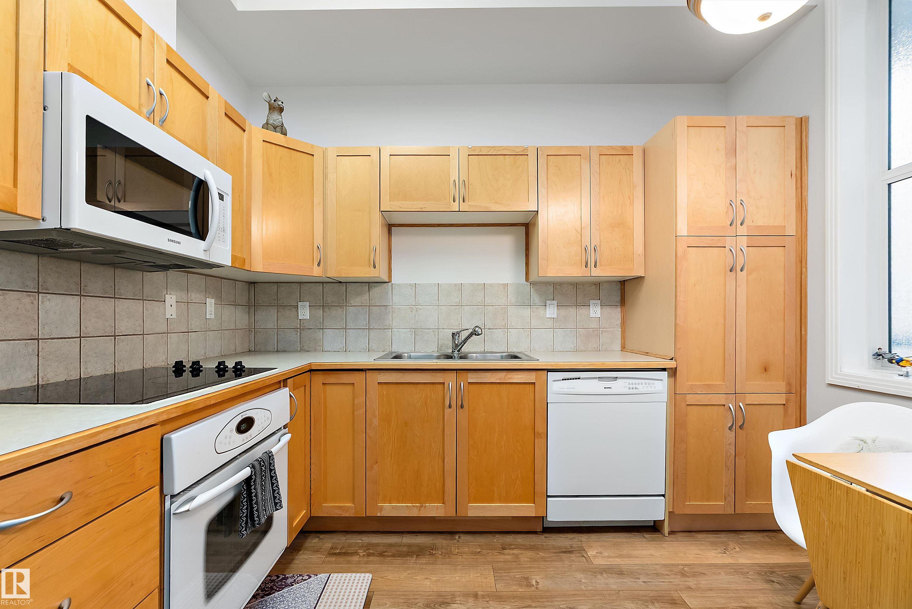 Welcome to Glenora Gates ? where urban convenience meets Westmount charm. This trendy one-bedroom condo showcases soaring ceilings and large windows that create a bright, airy atmosphere. The thoughtfully designed layout feels spacious and comfortable, highlighted by stylish finishes, modern lighting, and contemporary design touches that give the home an on-trend feel. The kitchen offers ample cabinetry and prep space. The inviting living area opens to your private covered balcony ? perfect for morning coffee or evening unwinding. Enjoy the convenience of in-suite laundry with a full-sized stacked washer and dryer, plus heated underground parking with a dedicated storage unit, secure building access, and visitor parking. An unbeatable central location just minutes to downtown, NAIT, MacEwan, the Brewery District, 124 Street boutiques and dining, parks, transit, and the river valley makes this an ideal home for students, professionals, or investors seeking stylish, low-maintenance living.