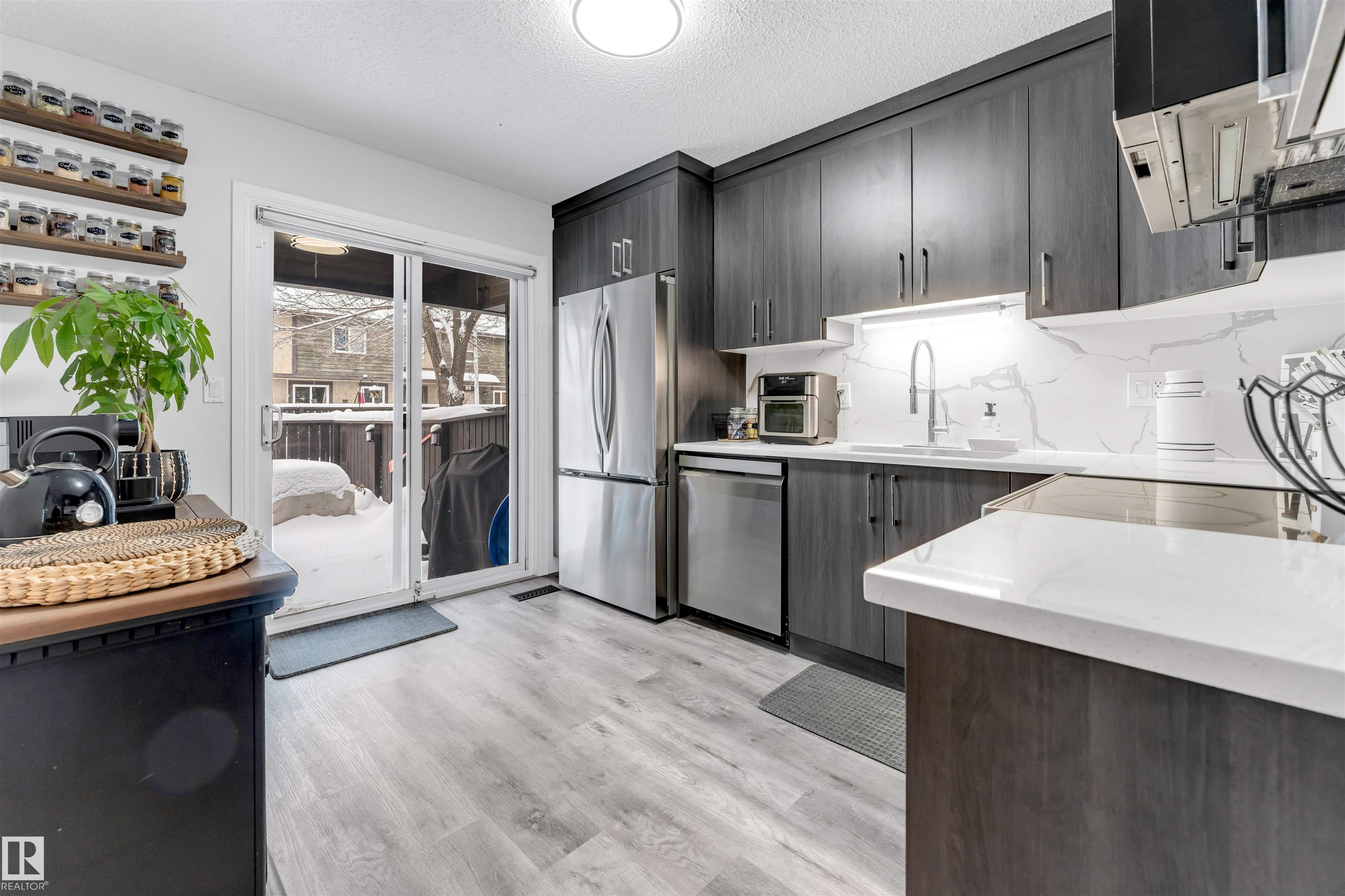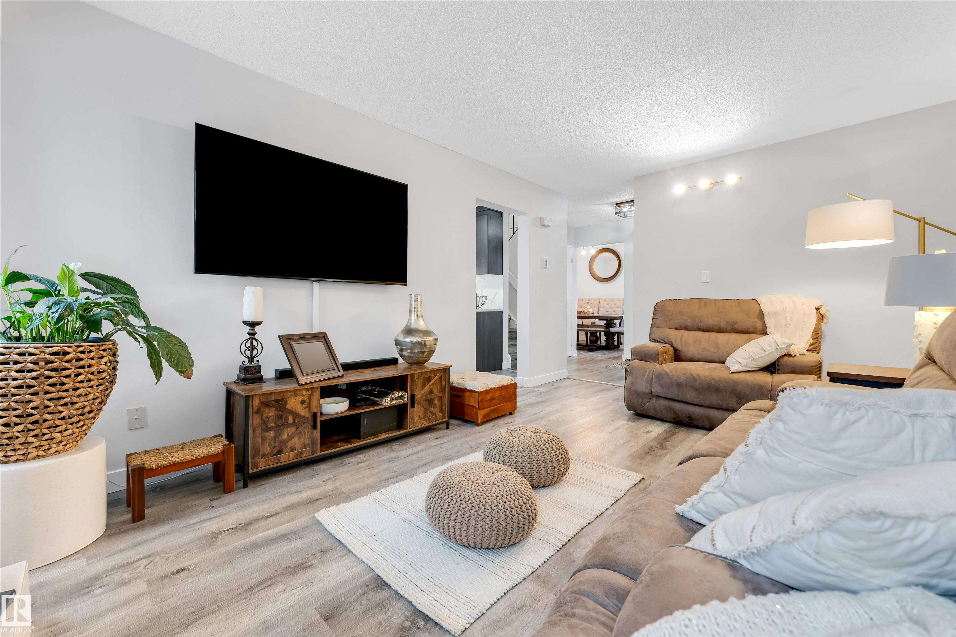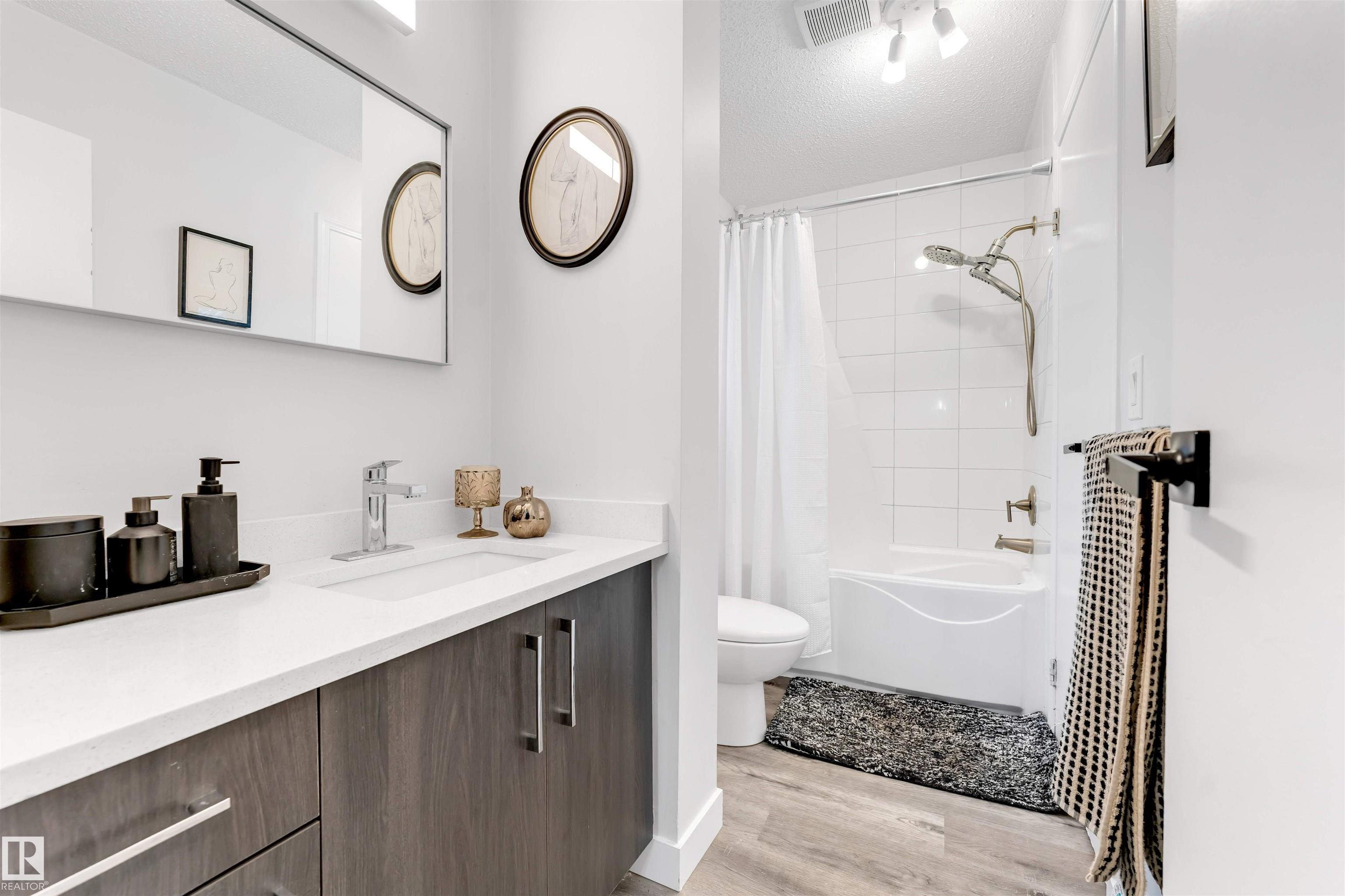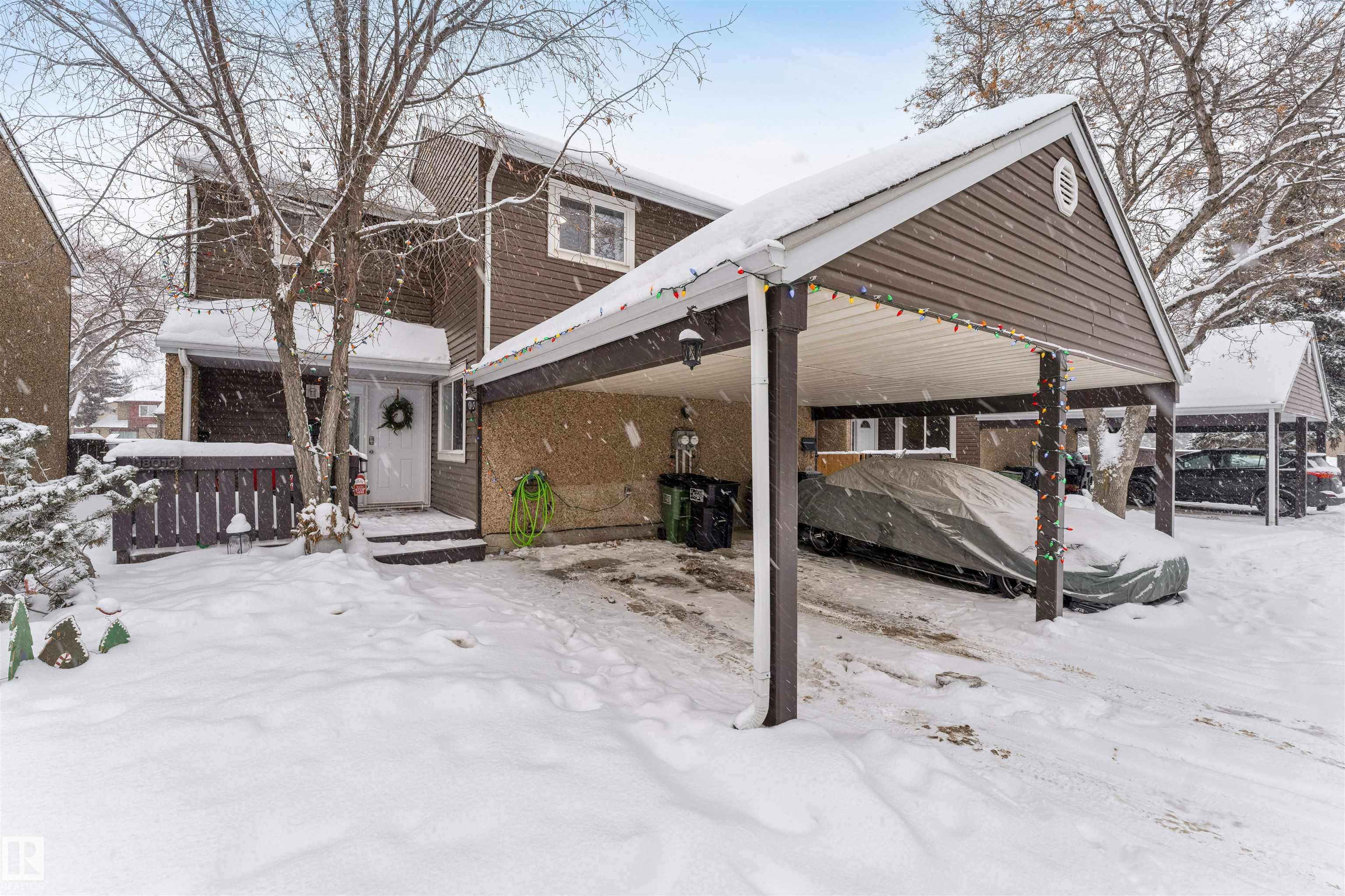PRICED TO SELL quickly! Turnkey and completely renovated, this 4-bedroom, 2.5-bath, two-story home is located in the highly sought-after La Perle neighborhood. The main floor welcomes you with a recently upgraded kitchen featuring elegant quartz countertops, stainless steel appliances, and ample cabinetry. The spacious living room, bright dining area, and convenient 2-piece bath create an ideal layout for everyday living and entertaining. Upstairs, the primary bedroom offers comfort and privacy with direct access to a 4-piece bathroom and private balcony while two additional generously sized bedrooms share the same full bathroom through a second door. The fully finished basement adds featuring an additional bedroom with attached 3-piece bathroom perfect for parents, guests, or a home office along with a large storage room providing plenty of space for organization. single parking covered carport. Prime location walking distance to west Edmonton Mall, schools, public transportation, and walking trails.