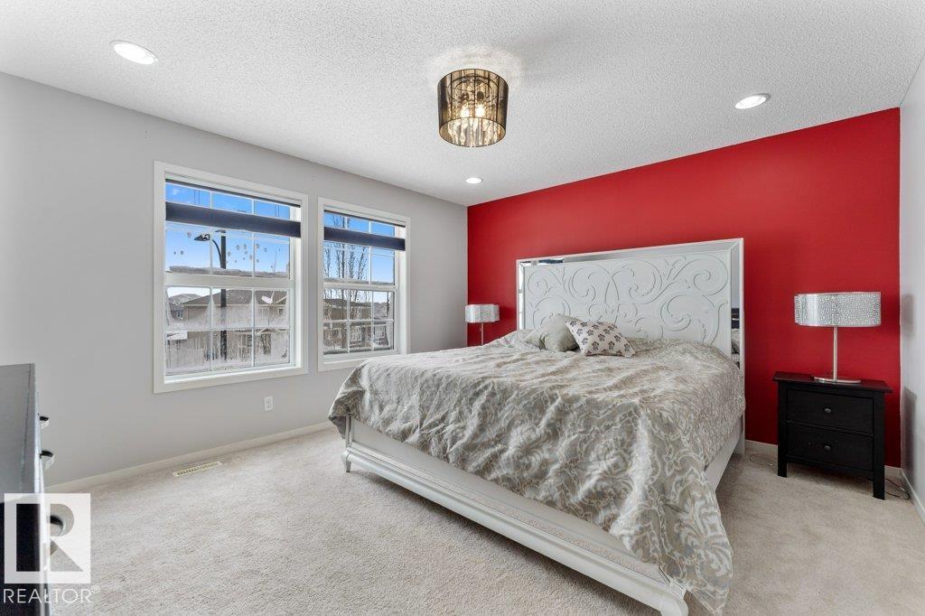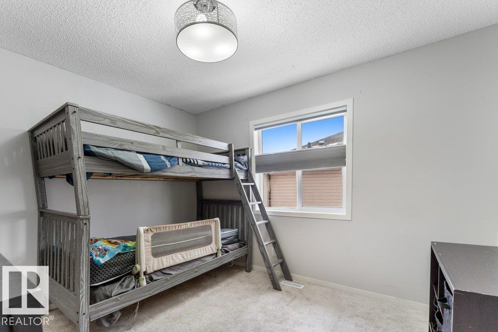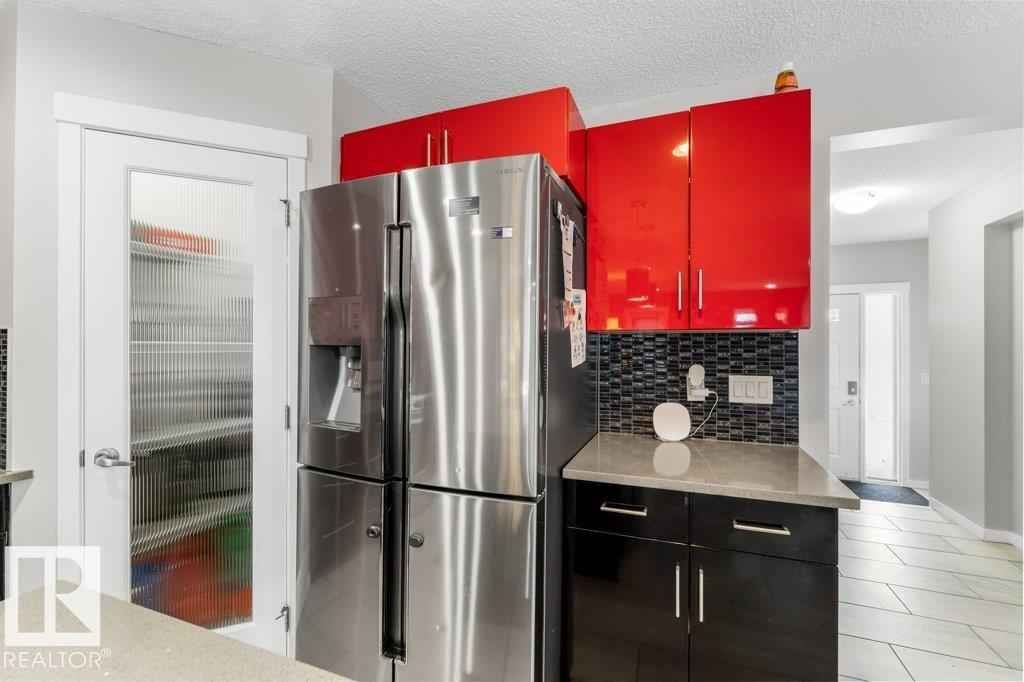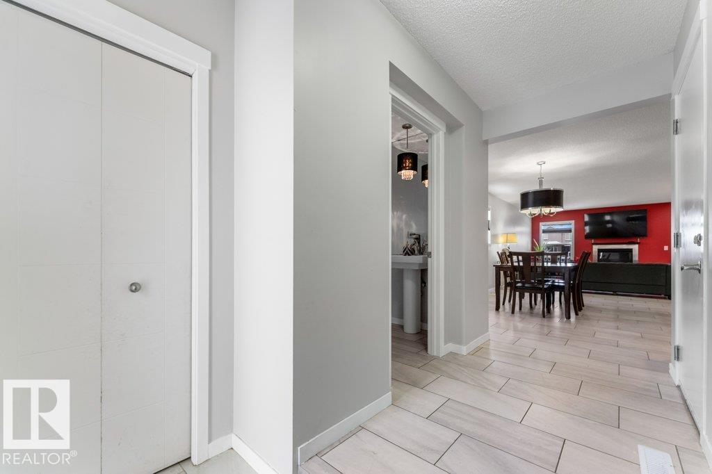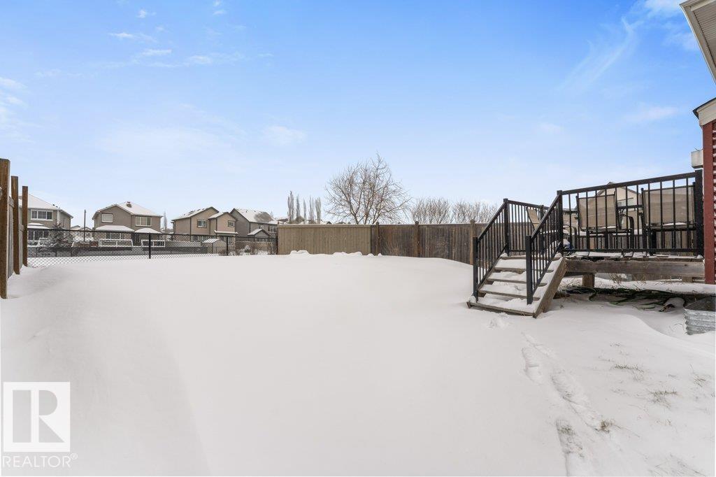 Large pie-shaped lot backing onto walking trails in the established community of Walker! No ongoing construction here ? schools are built, many stores including Walmart and Superstore are steps away, and you?ll enjoy nearby ponds with the extensive trail network. Easy access to Ellerslie, Edmonton South Common, and Highway 2 makes commuting simple. The main floor offers a spacious dining area, upgraded tile flooring, quartz countertops, and upgraded kitchen cabinetry. Cook incredible meals with the gas range, deep pot drawers, and corner pantry. The living room is spacious and light-filled, centered around a gas fireplace. Upstairs you?ll find a generous primary suite with walk-in closet and 4-piece ensuite, plus two additional bedrooms and a full bath. The unfinished basement is ready for your personal touch. The south-facing garage helps with winter snow melt. The backyard features a wood deck and mix of wood and chain-link fence. A rare lot in a fully developed neighbourhood ? don?t miss it!