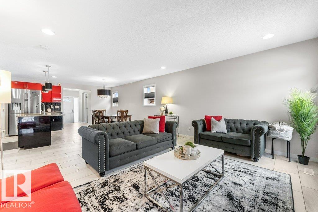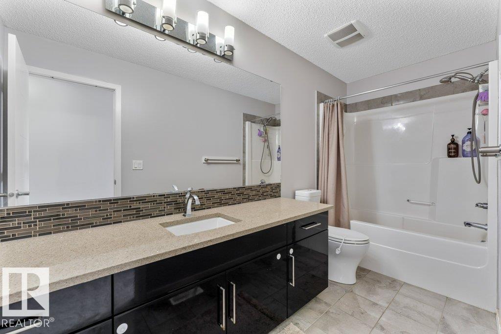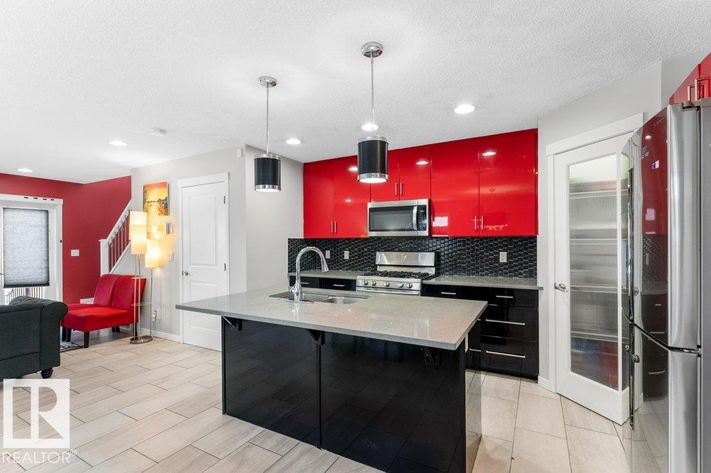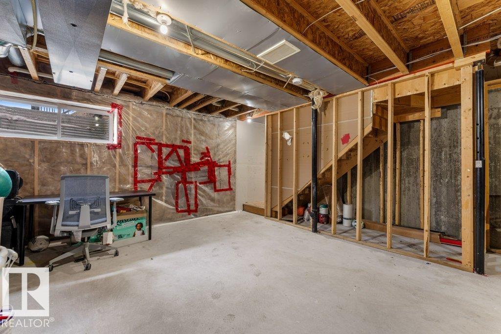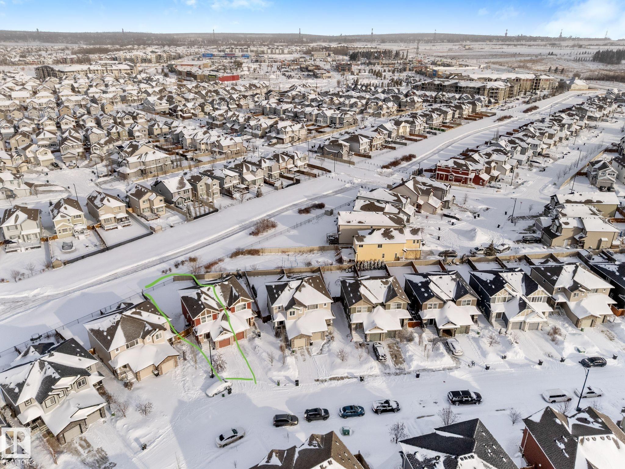 Large pie-shaped lot backing onto walking trails in the established community of Walker! No ongoing construction here ? schools are built, many stores including Walmart and Superstore are steps away, and you?ll enjoy nearby ponds with the extensive trail network. Easy access to Ellerslie, Edmonton South Common, and Highway 2 makes commuting simple. The main floor offers a spacious dining area, upgraded tile flooring, quartz countertops, and upgraded kitchen cabinetry. Cook incredible meals with the gas range, deep pot drawers, and corner pantry. The living room is spacious and light-filled, centered around a gas fireplace. Upstairs you?ll find a generous primary suite with walk-in closet and 4-piece ensuite, plus two additional bedrooms and a full bath. The unfinished basement is ready for your personal touch. The south-facing garage helps with winter snow melt. The backyard features a wood deck and mix of wood and chain-link fence. A rare lot in a fully developed neighbourhood ? don?t miss it!