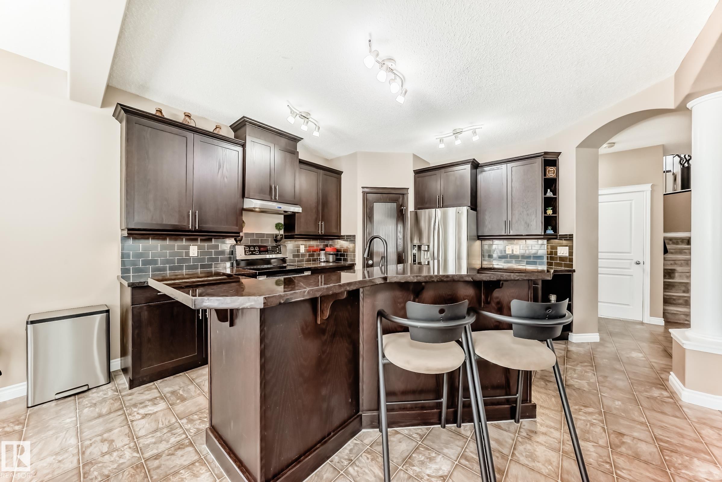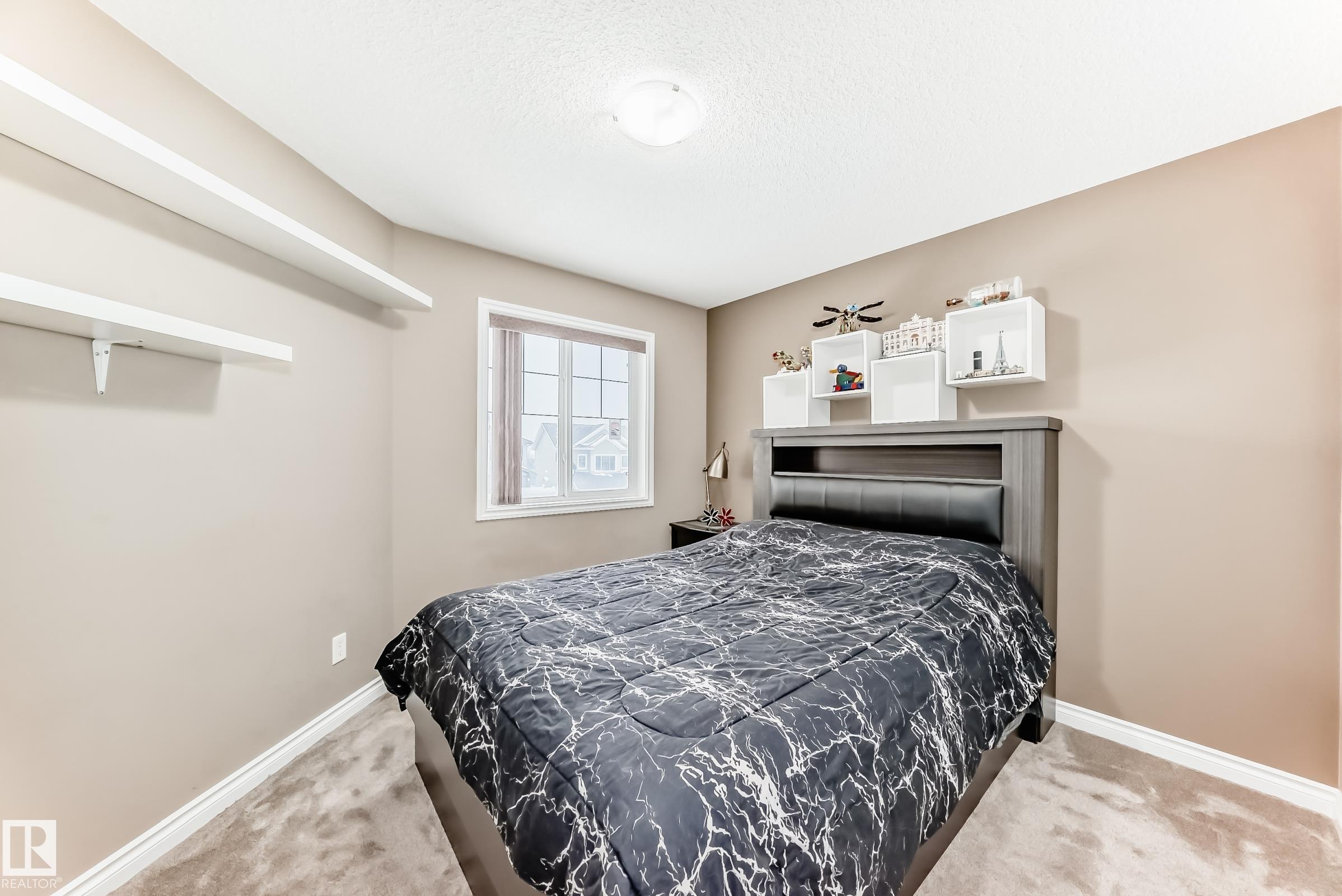 Triple attached heated garage with drive through access to a beautifully landscaped backyard. Located across from a lake, pond, and park, this property offers exceptional lifestyle and views. The private yard features a mature elm tree, rare double grafted purple and pink lilac, and a stunning mature pink hydrangea in the front. Rear access allows parking for a boat or tent trailer while still offering space to entertain, garden, or relax in a peaceful setting. Inside, enjoy an inviting open concept main floor with high ceilings, gas fireplace, and spacious island kitchen with stainless appliances, granite countertops, soft close cabinetry, and walk through pantry. Upstairs offers lake views from the vaulted bonus room, three bedrooms, second floor laundry, and a generous primary suite with walk in closet and four piece ensuite. The fully developed basement adds a large recreation room and fourth bedroom. An outstanding home in a premier lake location. Shows beautifully.