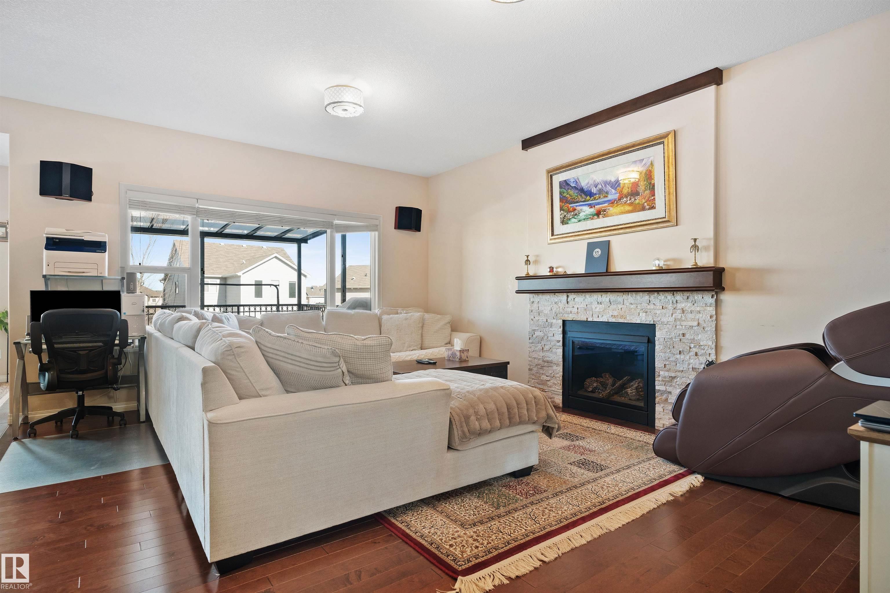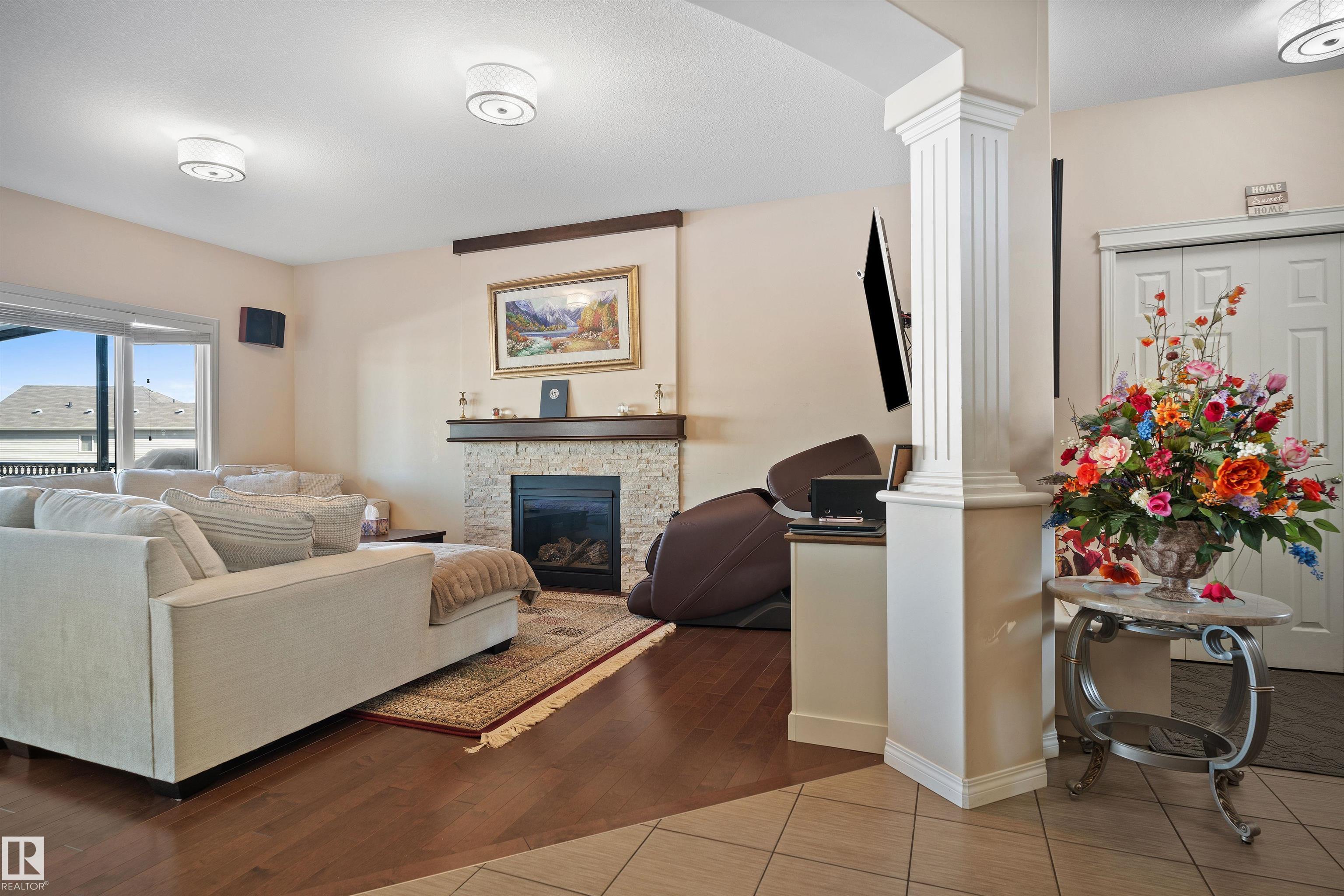 Beautiful and Well Maintained MONTORIO HOMES. Welcome to your dream home in the sought-after Walker community, backing onto a peaceful trail! This stunning single-family residence offers over 2,150 sq. ft. of beautifully designed living space. Step inside to an open-concept main floor featuring lots of windows that fill the space with natural light. The spacious living area is anchored by a cozy gas fireplace with a sleek mantel. The modern kitchen includes a large island, ample cabinetry, a corner pantry, and seamless flow to the bright, well-sized dining area with windows on multiple sides. Upstairs, the luxurious primary suite serves as your personal retreat, complete with an ensuite featuring a deep soaking tub, glass shower, and dual vanity. Two additional generously sized bedrooms and a full bathroom provide comfort and flexibility. The upper level also includes a bonus room and a walk-in laundry room. Step outside to a backyard with direct trail access, a landscaped yard, and spacious deck.