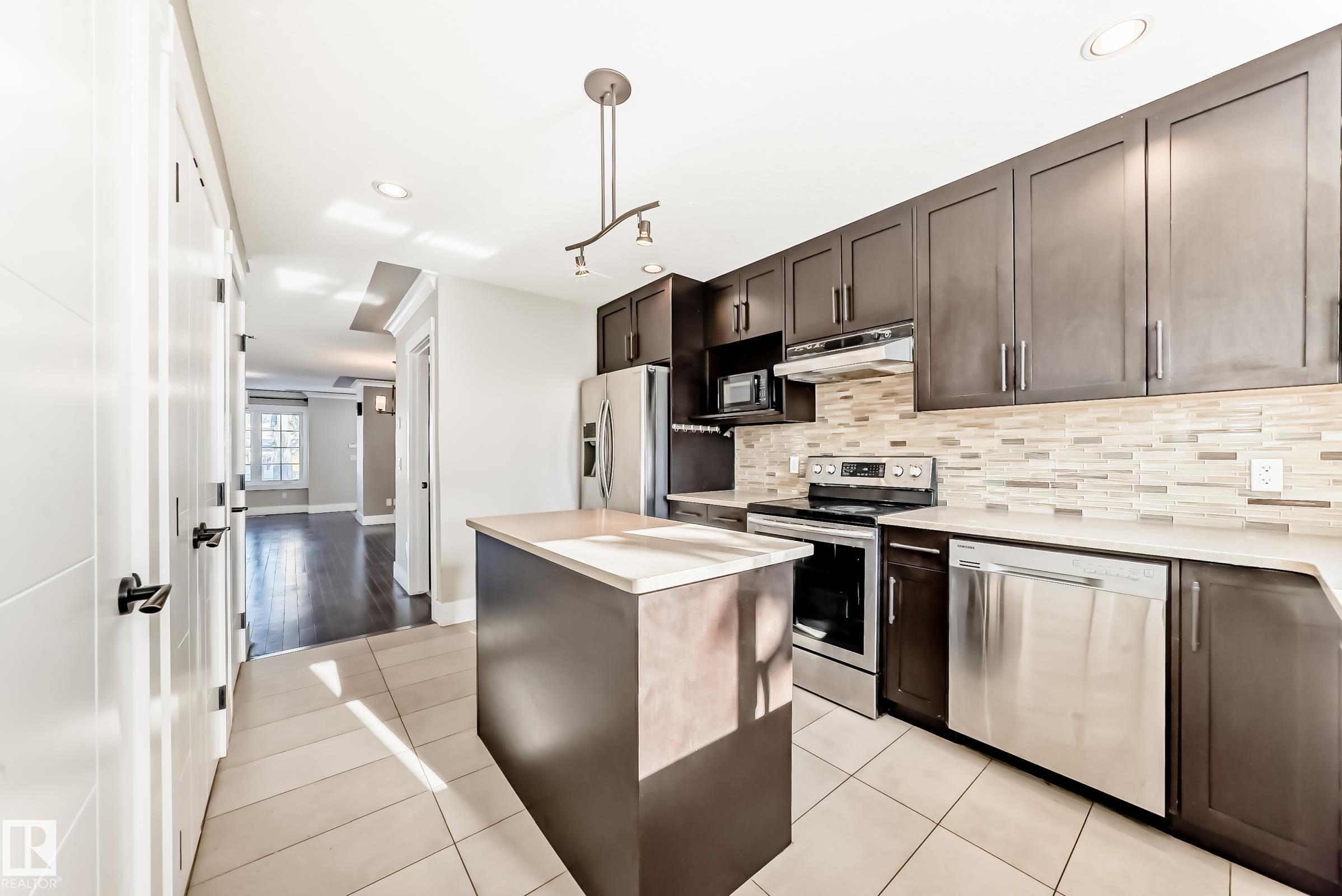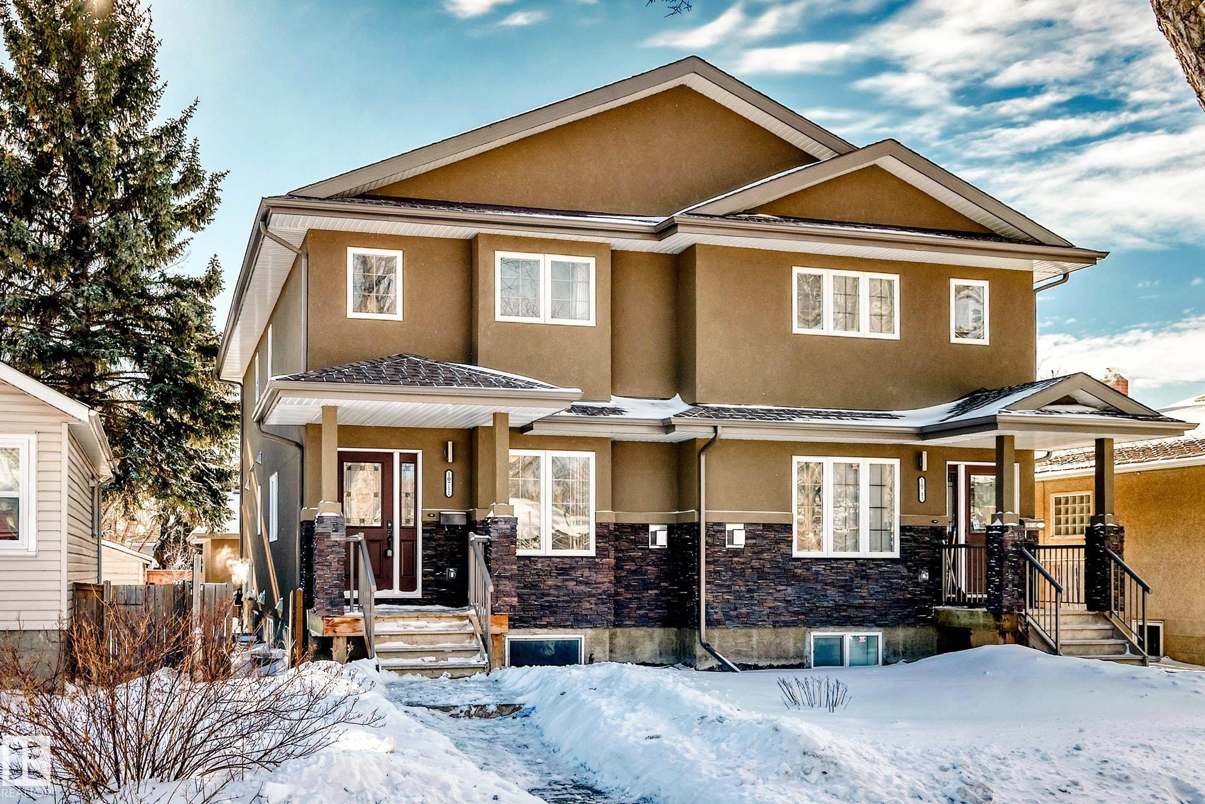 Located in sought-after Allendale, this 2015-built half duplex offers modern design and a fully finished basement. The main floor features hardwood flooring, washer/dryer large windows, and a contemporary kitchen with quartz countertops, stainless steel appliances, tile backsplash, and ample cabinetry. The open-concept layout flows into the dining and living areas?ideal for entertaining or everyday living. Upstairs includes three bedrooms, highlighted by a spacious primary suite with walk-in closet and 4-piece ensuite, plus an additional full bath. The fully finished basement with separate entrance, laundry hookup, adds two bedrooms, a full bathroom, and a comfortable living room?perfect for guests, extended family, or added flexibility. Outside, enjoy a fully landscaped and fenced yard with double detached garage and rear lane access. Minutes to the University of Alberta, Whyte Ave, Downtown, and transit. A move-in ready home offering 5 bedrooms and 3.5 baths in a prime central location.