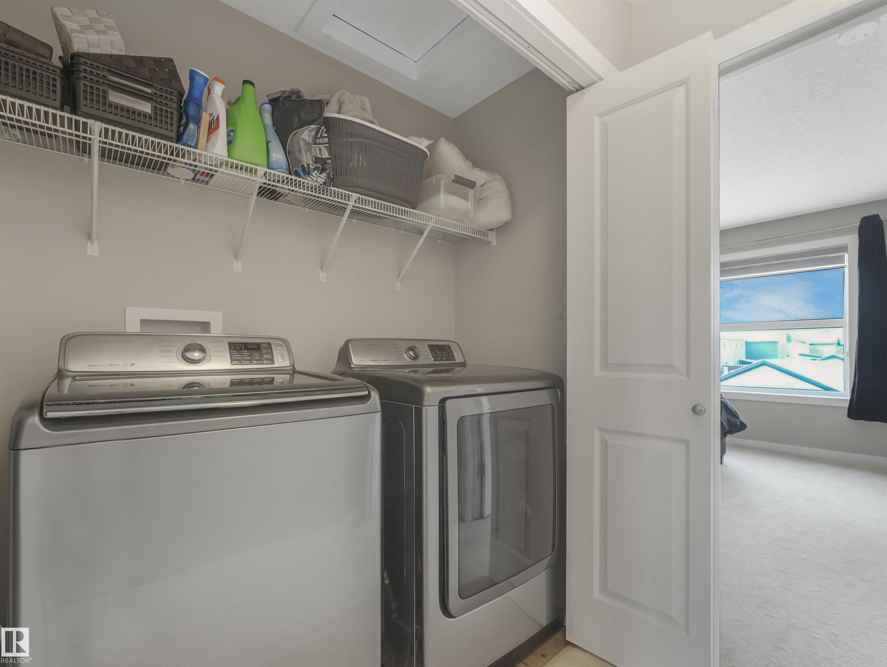 Super clean modern 2 story home. Main floor is an open concept. Bright white kitchen with subway backsplash, stainless appliances and an island with room for seating. This home has large windows - sun in the kitchen in the morning and sun in the living room in the evening. Lots of space for a large dining table, and comfy living space. Thoughtful details throughout. Powder room is tucked at the base of the stairs. Primary bedroom suite has a beautiful decorative tiled black wall with built in sconces and side tables. All ready for your furniture. Full ensuite and walk in closet. Upstairs laundry is so convenient. 2 addl bedrooms are situated beside the full bath. The basement is ready for your personalization-tankless hot water system; solar panel rough in; HRV & 96% high efficiency furnace. Double garage in the private backyard. Located in the south east corner with great access to 50 st and the Henday. All amenities are located on and around 50 st. Charlesworth has excellent waling trails and parks.