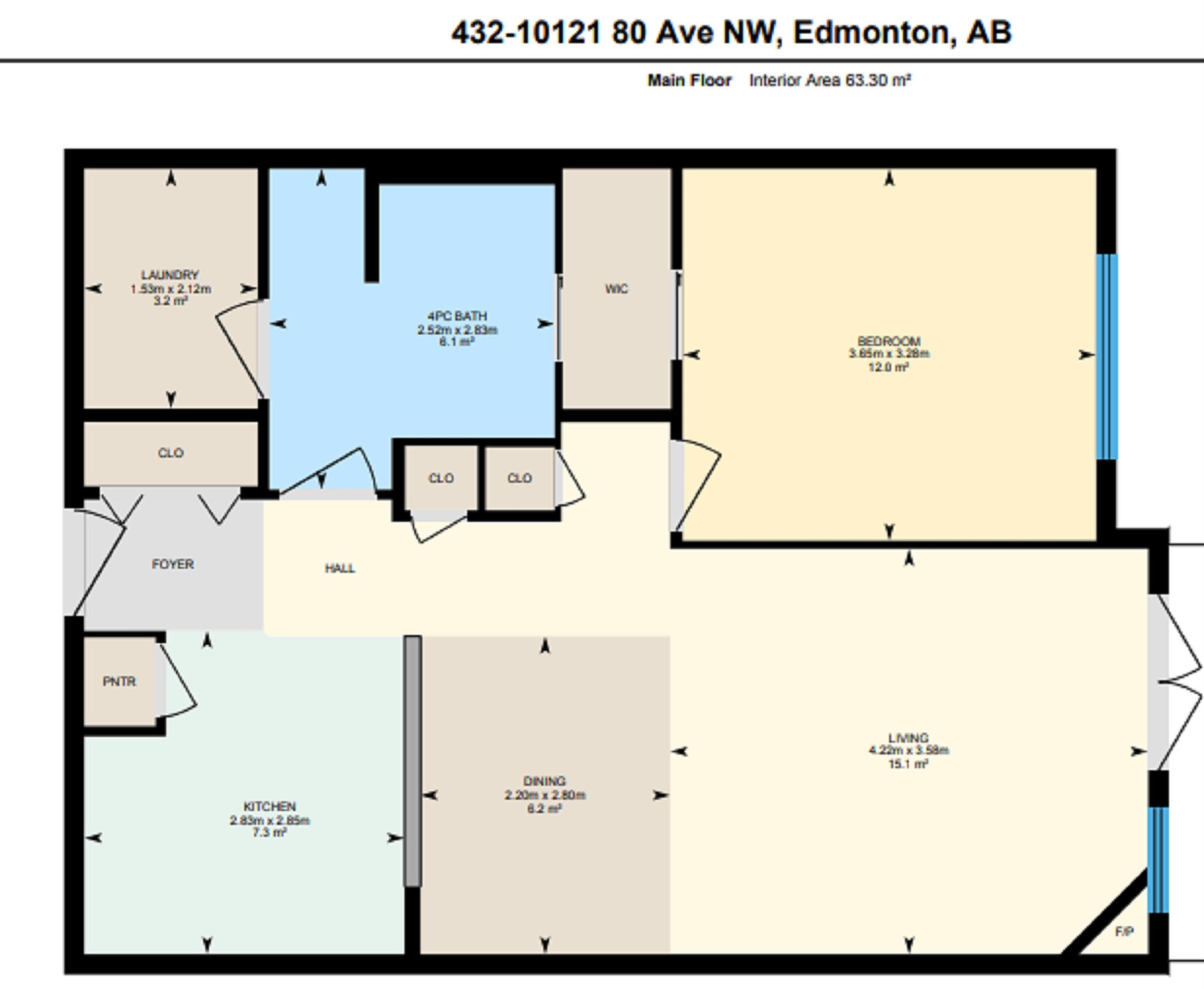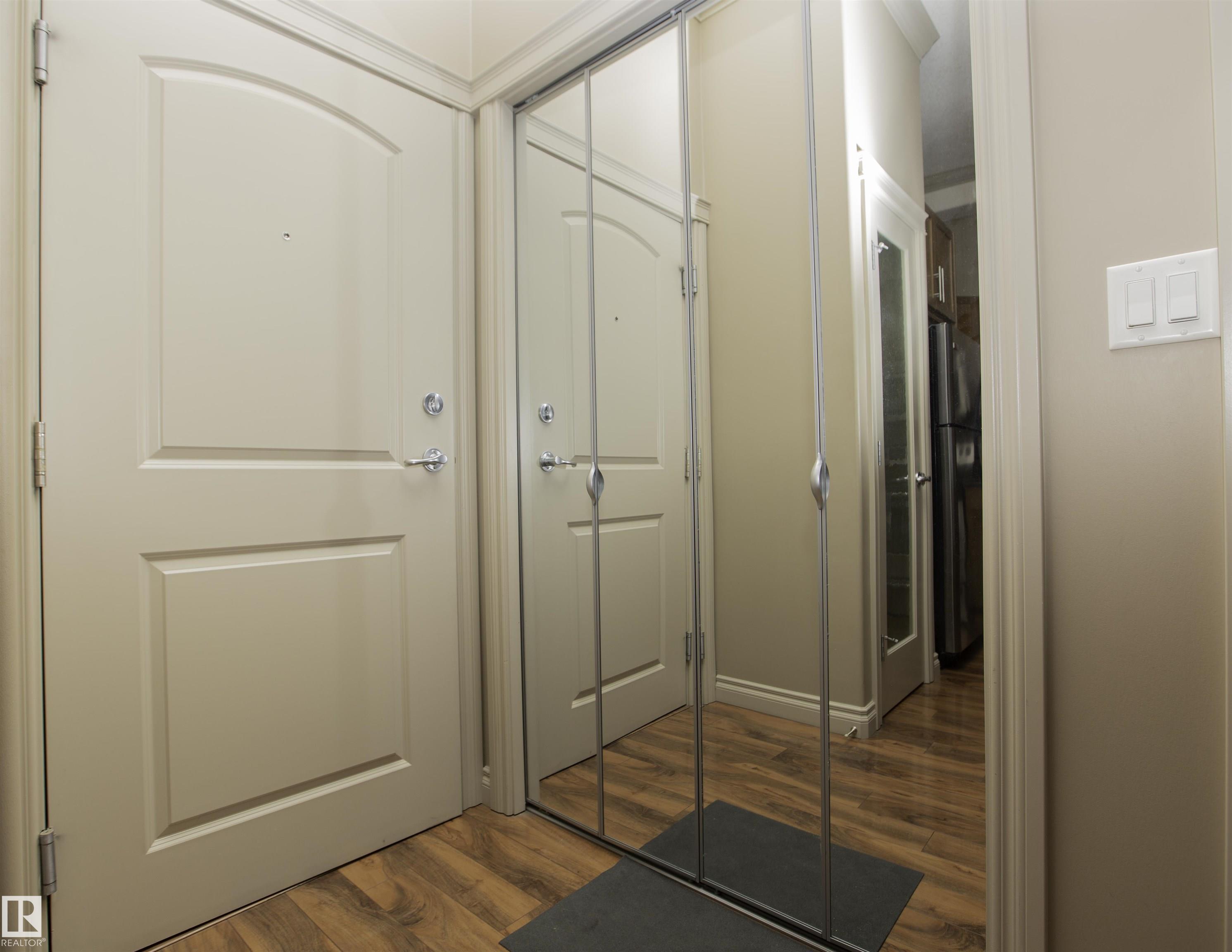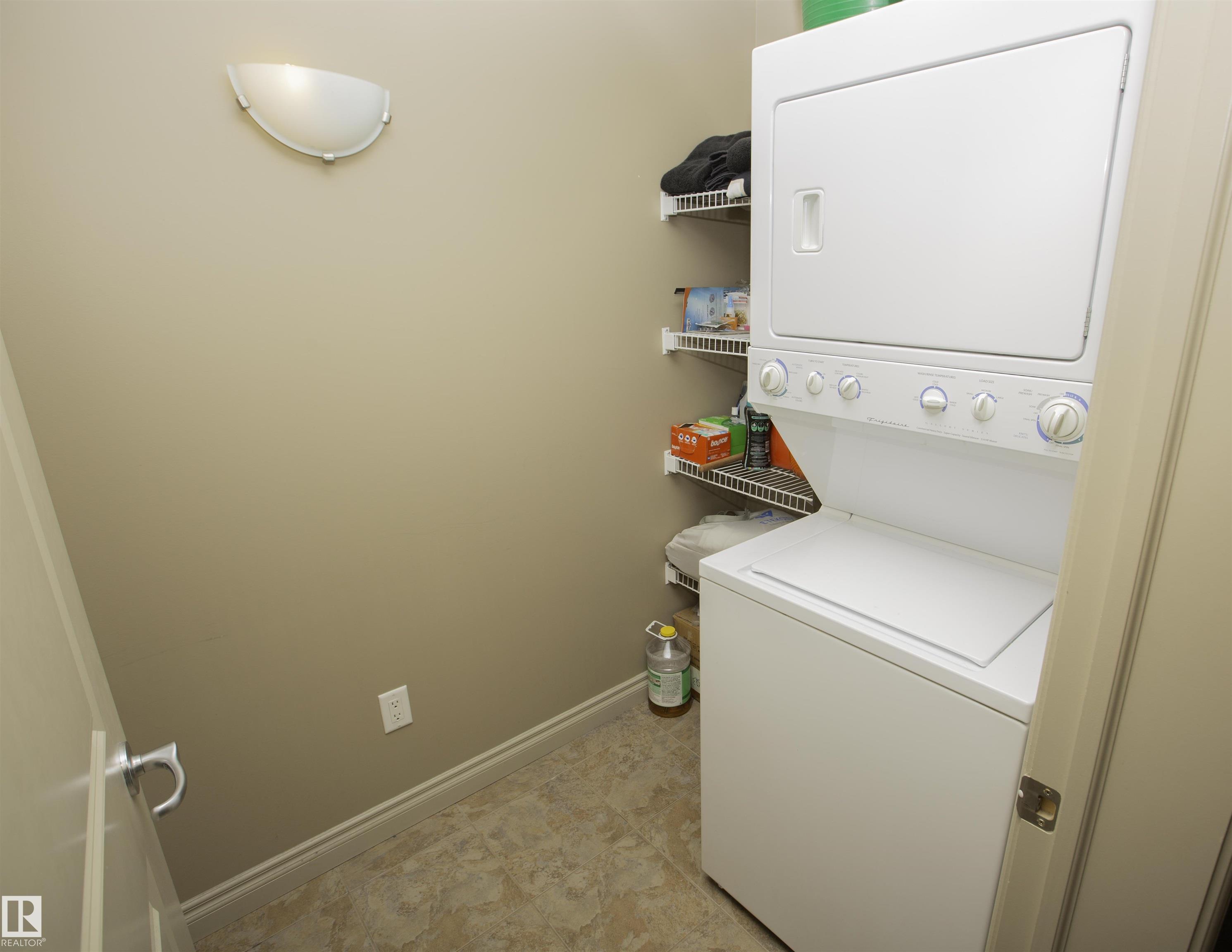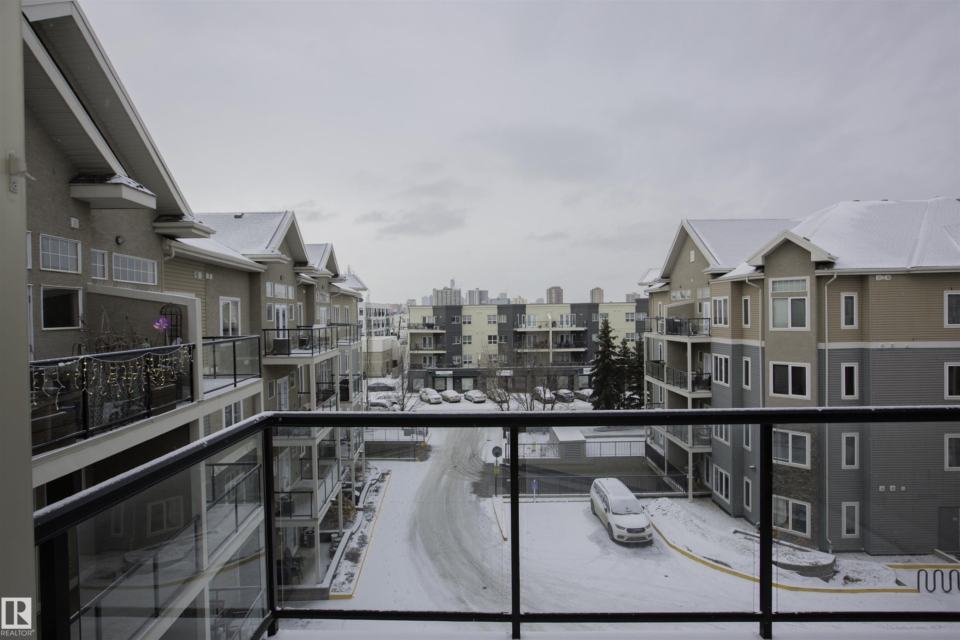 Executive Penthouse in Scona Gardens! This top floor unit boasts a contemporary floor plan with 12 & 14 FT ceilings, crown molding and granite counters throughout. The lovely kitchen overlooks the dining area and features a 4 person breakfast bar, espresso maple cabinets, lrg pantry and stainless steel appliances that include a stove, built in microwave w hood fan, fridge & dishwasher. Cozy electric fireplace in the living room, an East facing balcony with courtyard views and a gas bbq outlet. SPACIOUS MASTER BDRM features a walk through wardrobe and private entrance to the 4 pc bathroom. In-suite washer/dryer, titled underground parking w storage space. Building is soundproofed and amenities include an exercise room, social room, guest suite, heated underground visitor parking, car wash bay and a beautiful courtyard. Come check out this gorgeous condo today! Located only 2 blocks away from Whyte Ave, and a short walk from the U of A and the Old Strathcona Farmer's Market.