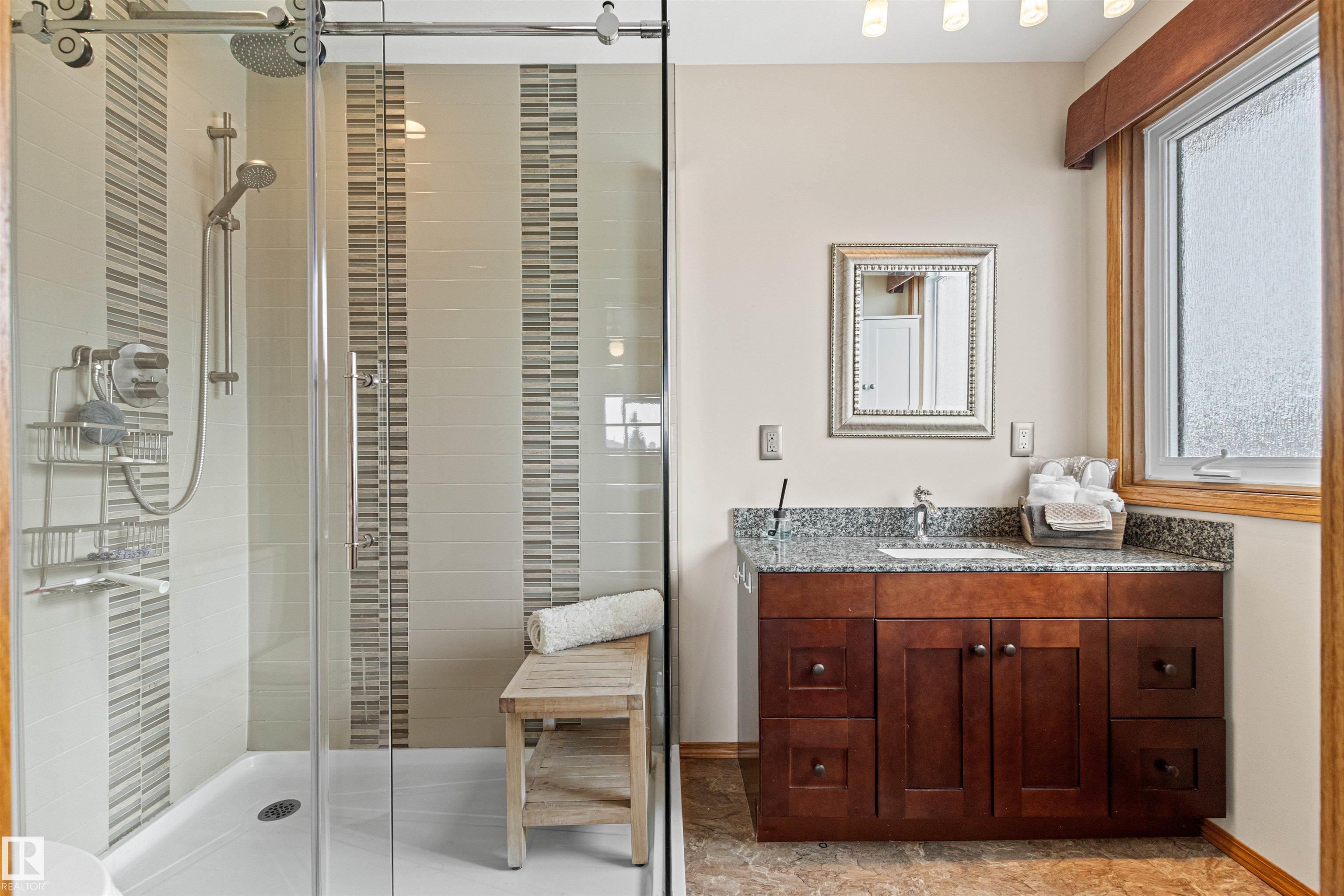 Pride of ownership is evident throughout this beautifully maintained, nearly one-owner home located on a quiet cul-de-sac with a large lot. Bright & welcoming, the main floor features vaulted ceilings, a charming bay-windowed living room, a bedroom/office, & convenient laundry. The updated kitchen offers quartz countertops, modern backsplash, newer appliances, & the a addition of garden doors. With over $150,000 in upgrades, this home is truly move-in ready. Improvements include A/C, shingles, windows, furnace, hot water tank, flooring, window coverings, Bathrooms, and more!!. The renovated ensuite adds a fresh, modern touch. Outside, enjoy the beautifully landscaped yard with U/G sprinklers, composite deck, & brick patio. An extra-large parking pad was added providing space for additional vehicles or an RV, & the heated garage adds year-round comfort. Close to parks, playgrounds, schools, shopping, cafés, and transit ? plus the sellers rave about having the BEST neighbours EVER!