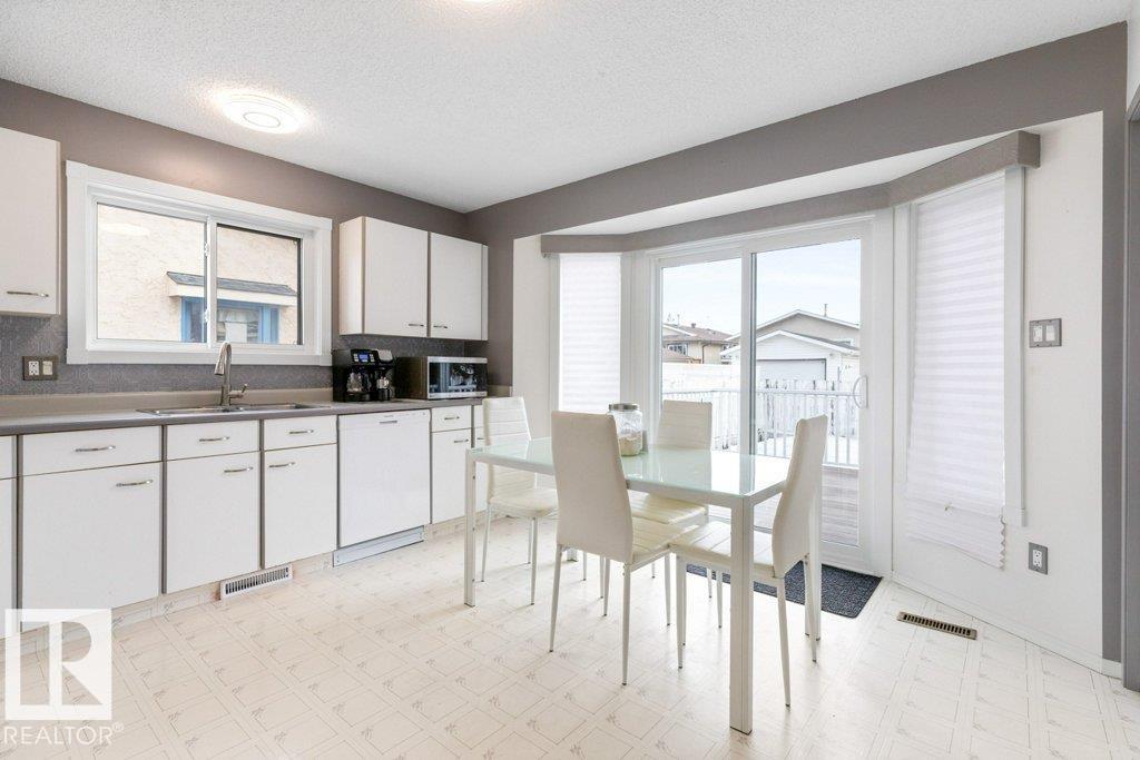 Welcome to this well-maintained family home in the community of Kirkness. This spacious 4-level split offers a large eat-in kitchen with patio doors leading to a composite deck overlooking the fully fenced, east-facing yard?perfect for morning sun and outdoor gatherings. The bright living room features new vinyl plank flooring, and the main bathroom has been tastefully updated. Recent improvements include a new front door and patio door. Upstairs you?ll find three comfortable bedrooms, including a primary suite with a convenient 2-piece ensuite. The third level provides excellent family space with a cozy gas fireplace, fourth bedroom, and a 3-piece bathroom. The fourth level includes the laundry area along with mechanical updates such as a newer hot water tank (2017), furnace with A/C installed in 2022, and shingles replaced in 2021. Completing the property is a rebuilt double garage measuring 22'8" x 24'4", offering plenty of room for parking and storage.