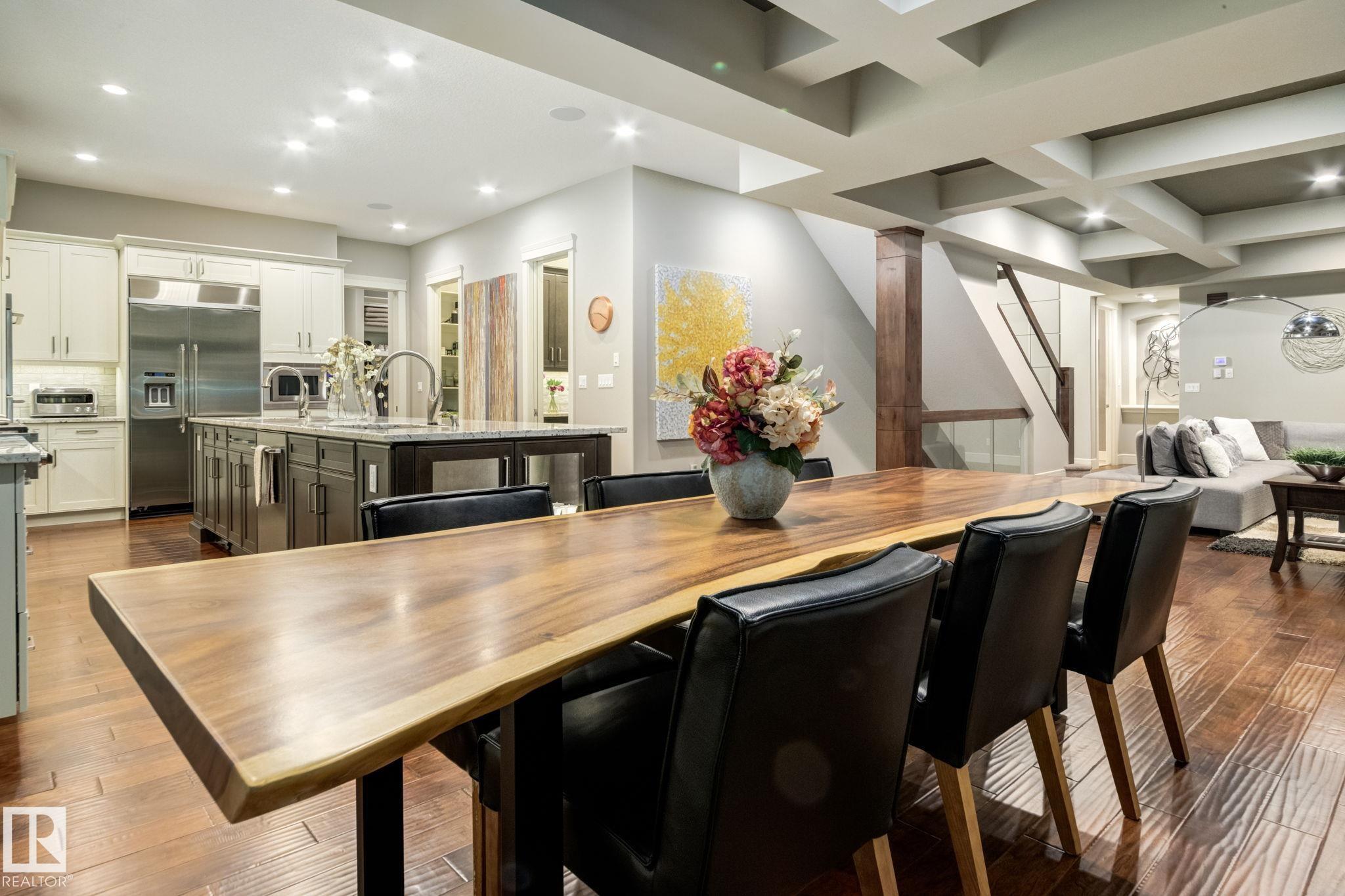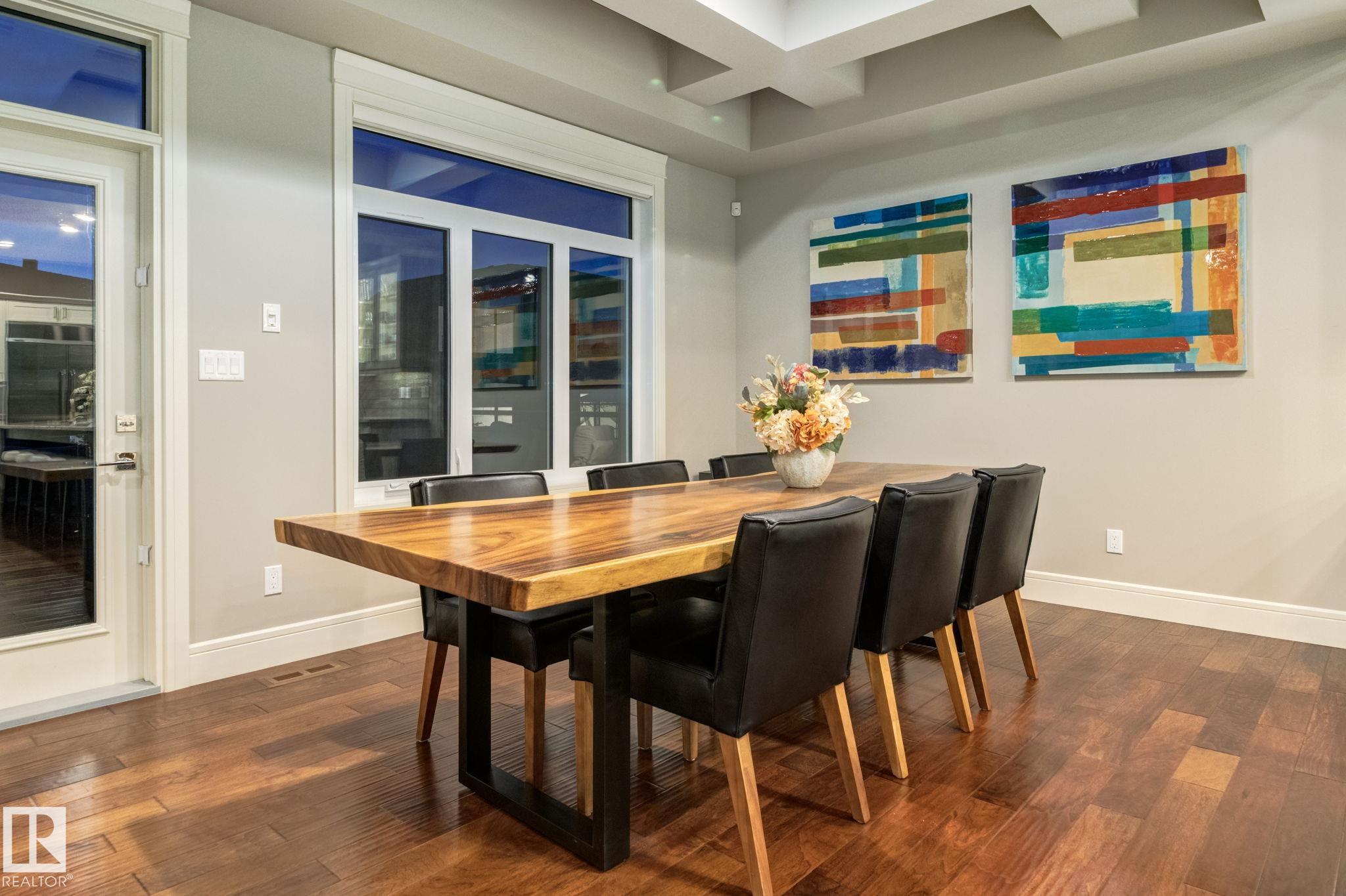 Set on a quiet cul-de-sac in prestigious Westpointe, directly across from the ravine & on a 1/3-acre lot, this stunning walk-out estate offers a rare blend of luxury, scale, & thoughtful design. The chef?s kitchen is beautifully appointed with premium Dacor appliances, a stunning 13' island, & a fully equipped butler?s pantry. Entertaining is effortlessly elevated in the formal dining room with tray ceiling details & the living room with rich coffered ceilings. Created for seamless main-floor living, discover an elegant primary retreat complete with a fireplace & spa-inspired en-suite. Upstairs, a spacious family lounge overlooks the grand foyer, while 3 bedrooms that each enjoy their own en-suite. The lower level offers a sophisticated wet bar, glass wine room, theatre, gym, bedroom, & covered patio. Finished with practical luxuries including Hunter Douglas blinds, whole home sound, triple heated garage, & Built Green efficiency. Direct access to river valley trails, sought after schools & amenities.