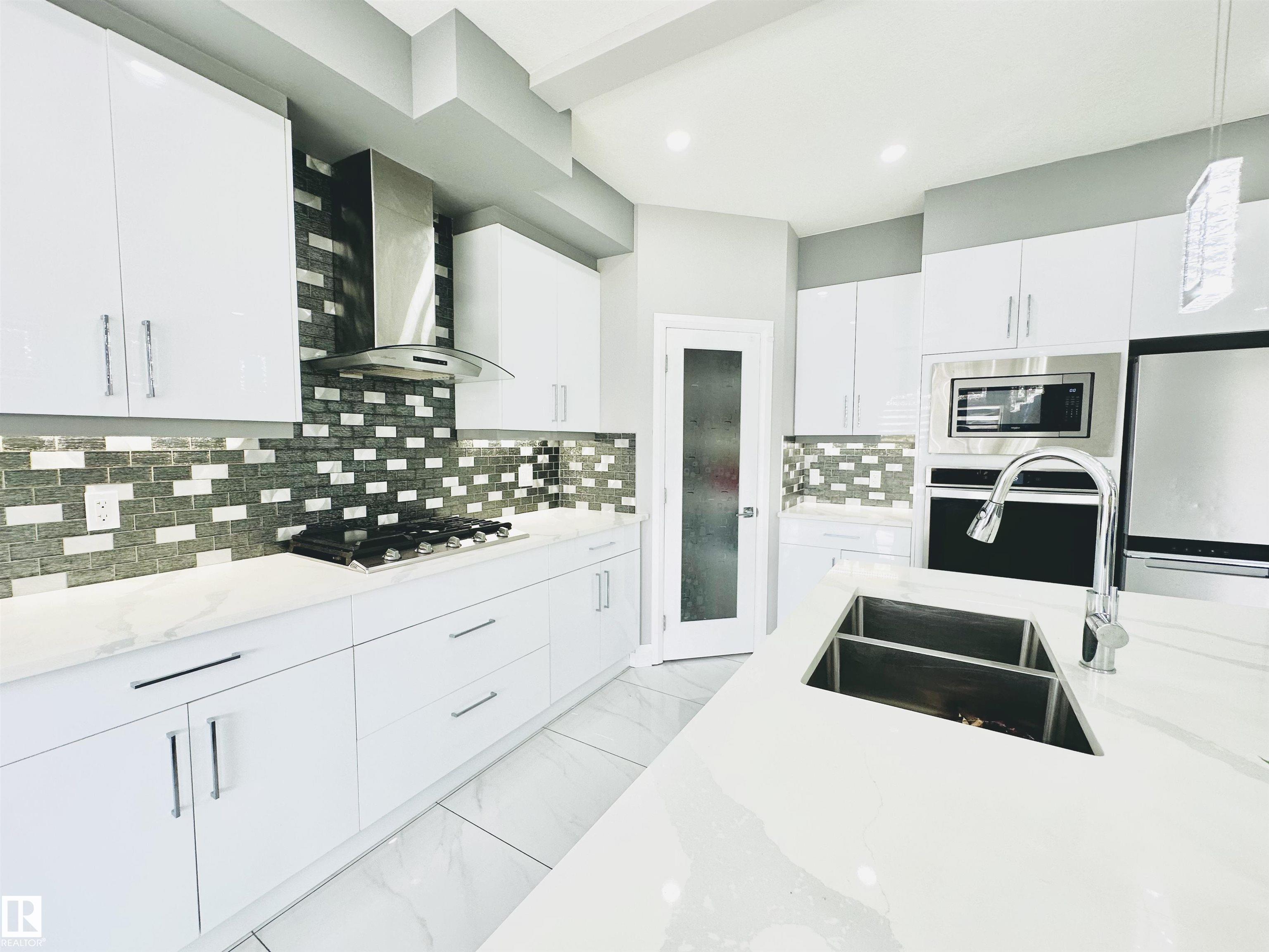 Positioned on a quiet cul-de-sac and backing a PARK, this residence combines prestige & lifestyle. Experience refined living in this elegant 2-storey, offering 6 beds & 5 baths incl. a fully finished LEGAL SUITE with total of approx 3,176 sq ft of living space! Step through the grand open-to-below foyer into a sunlit main floor featuring a designer kitchen w/ quartz counters, custom cabinetry & premium SS appliances ? ideal for entertaining. A main-flr bed & full bath provide versatility for guests/Office or multi-gen living. Upstairs, indulge in the primary retreat w/ spa-inspired ensuite & walk-in closet, plus two add?l beds, full baths & a BONUS ROOM. OVERSIZED double-attached GARAGE, panoramic park views, near schools, trails & amenities. Where luxury, space, and location meet, all this McConachie DREAM HOME needs is YOU!