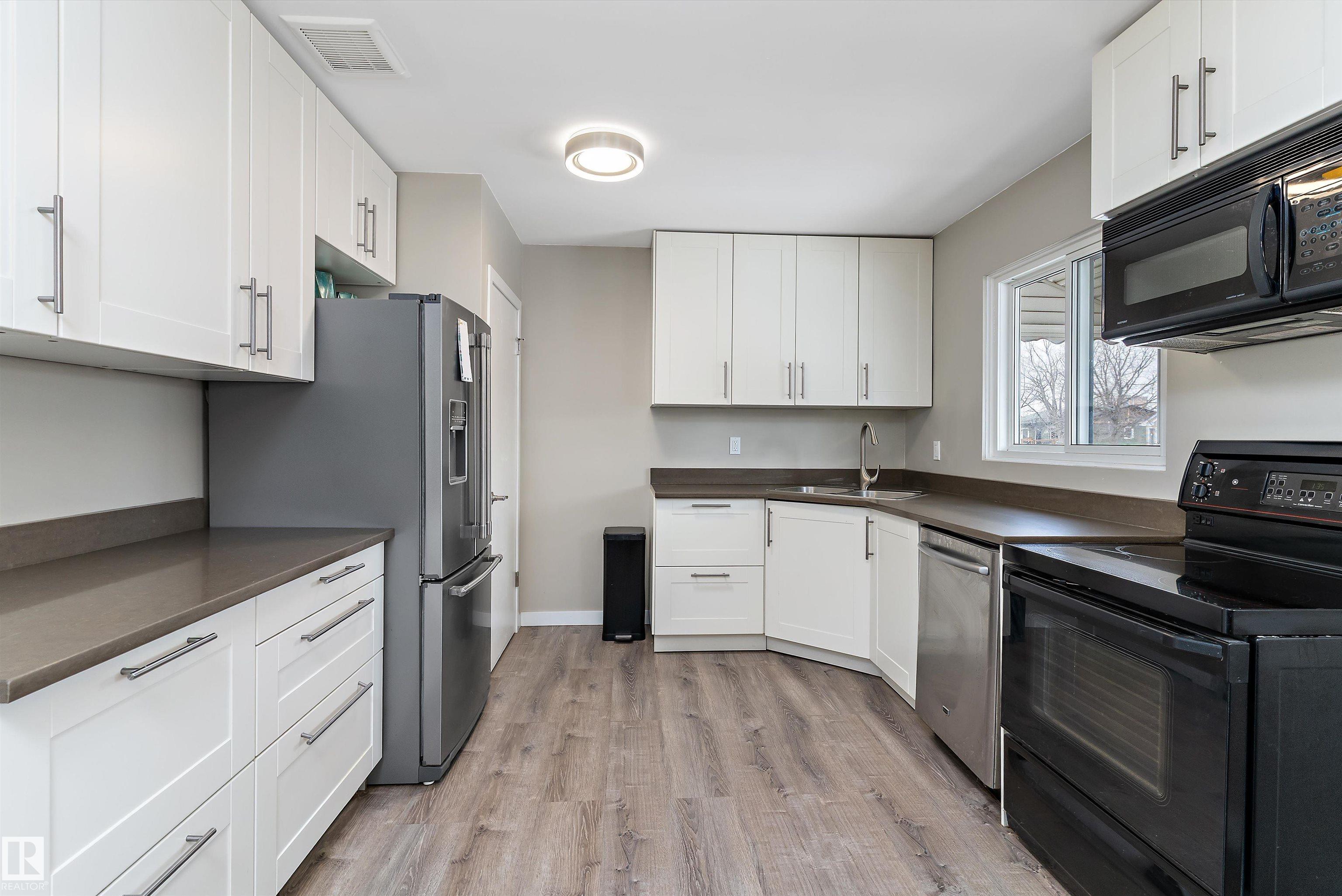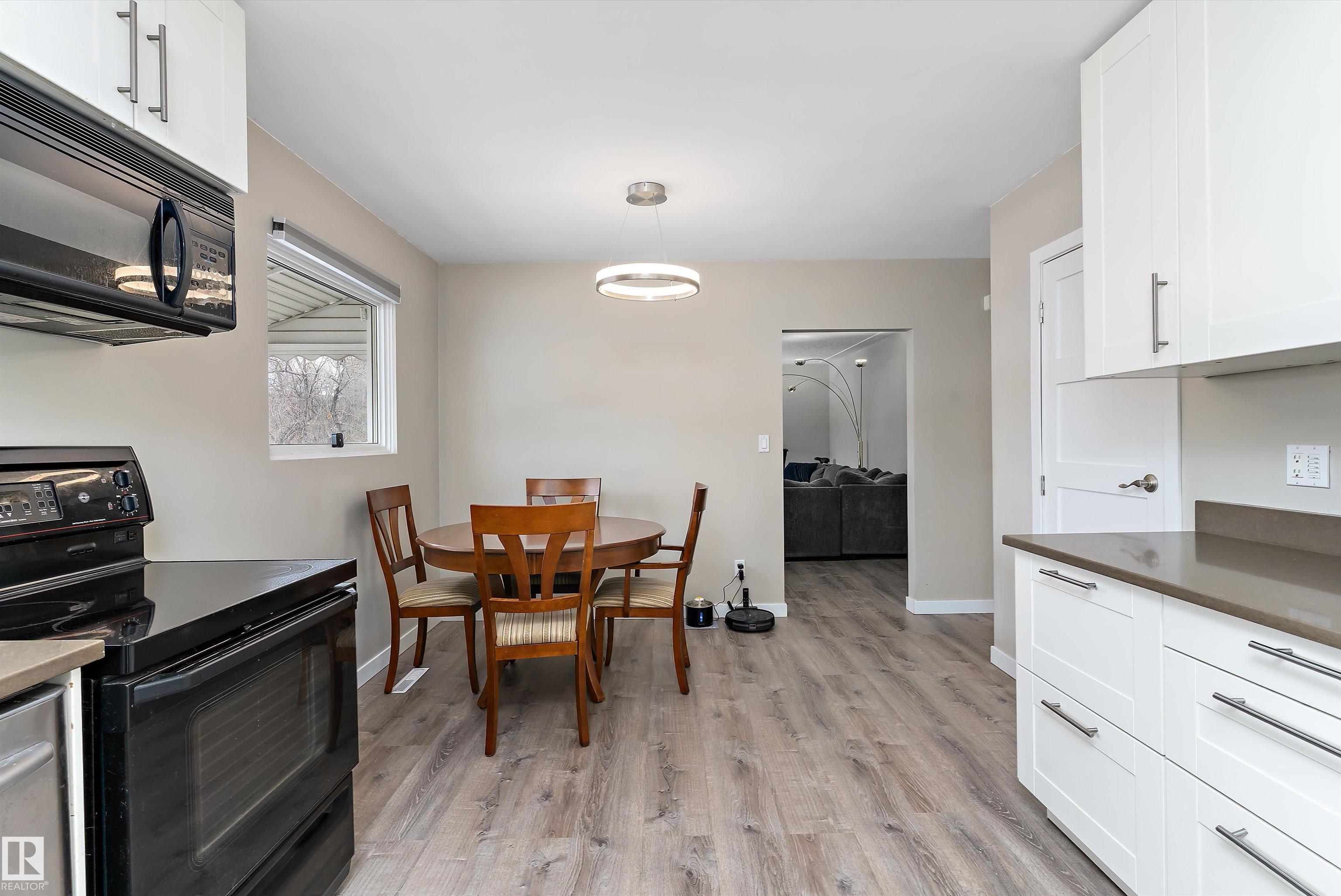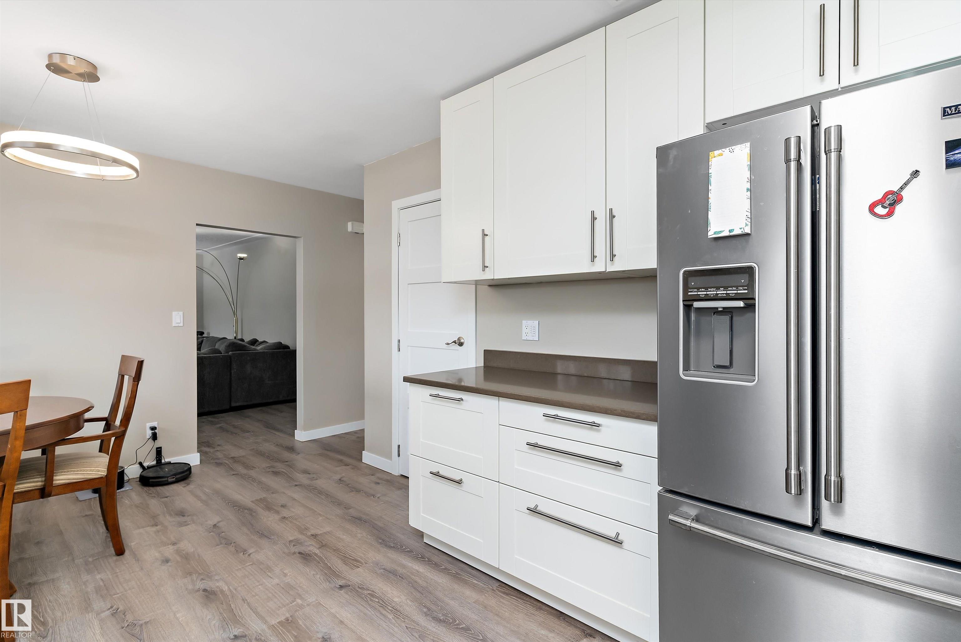 Welcome to 13035 126 St, a thoughtfully updated home on an oversized lot in Calder. This property has undergone extensive renovations, featuring durable vinyl plank flooring, contemporary LED lighting, and stylish custom doors throughout. The kitchen has been completely reimagined with elegant Caesarstone countertops, and full-height white cabinetry offering ample storage, including convenient pot & pan drawers, plus a large walk-in pantry. The kitchen connects effortlessly to the dining space, creating a functional & inviting atmosphere. A sunlit living room at the front of the home is enhanced by a large picture window, filling the space with natural light. The main floor also includes three bdrms, a full bath, and a versatile sunroom. Downstairs, the fully developed bsmt provides excellent additional living space w/second kitchen, family room, fourth bdrm, 3 pc bath, and laundry area. Perfectly positioned close to schools, parks, shopping, Yellowhead Trail and Henday, and a quick commute to downtown.