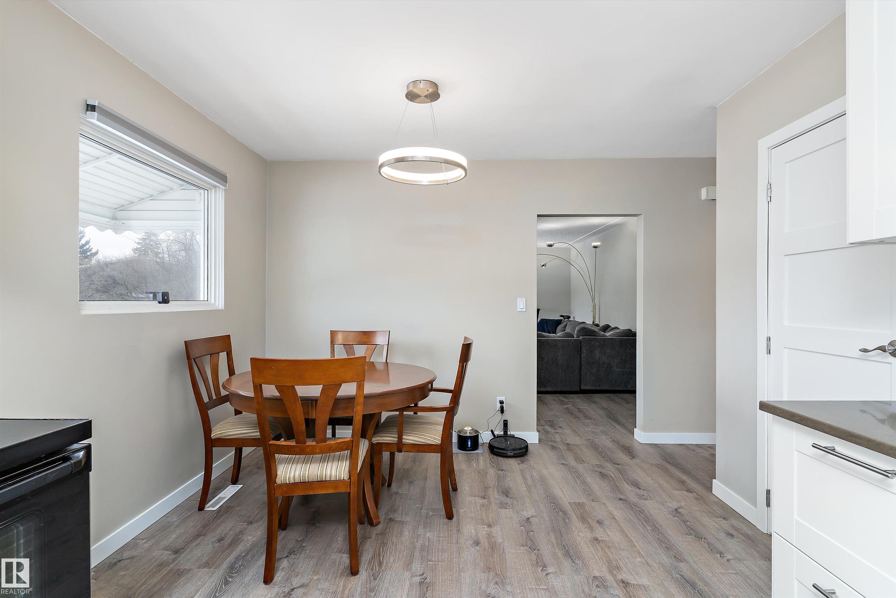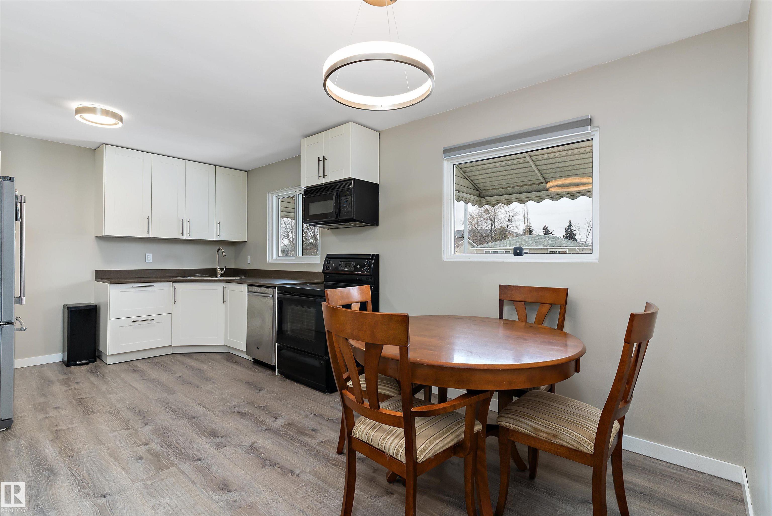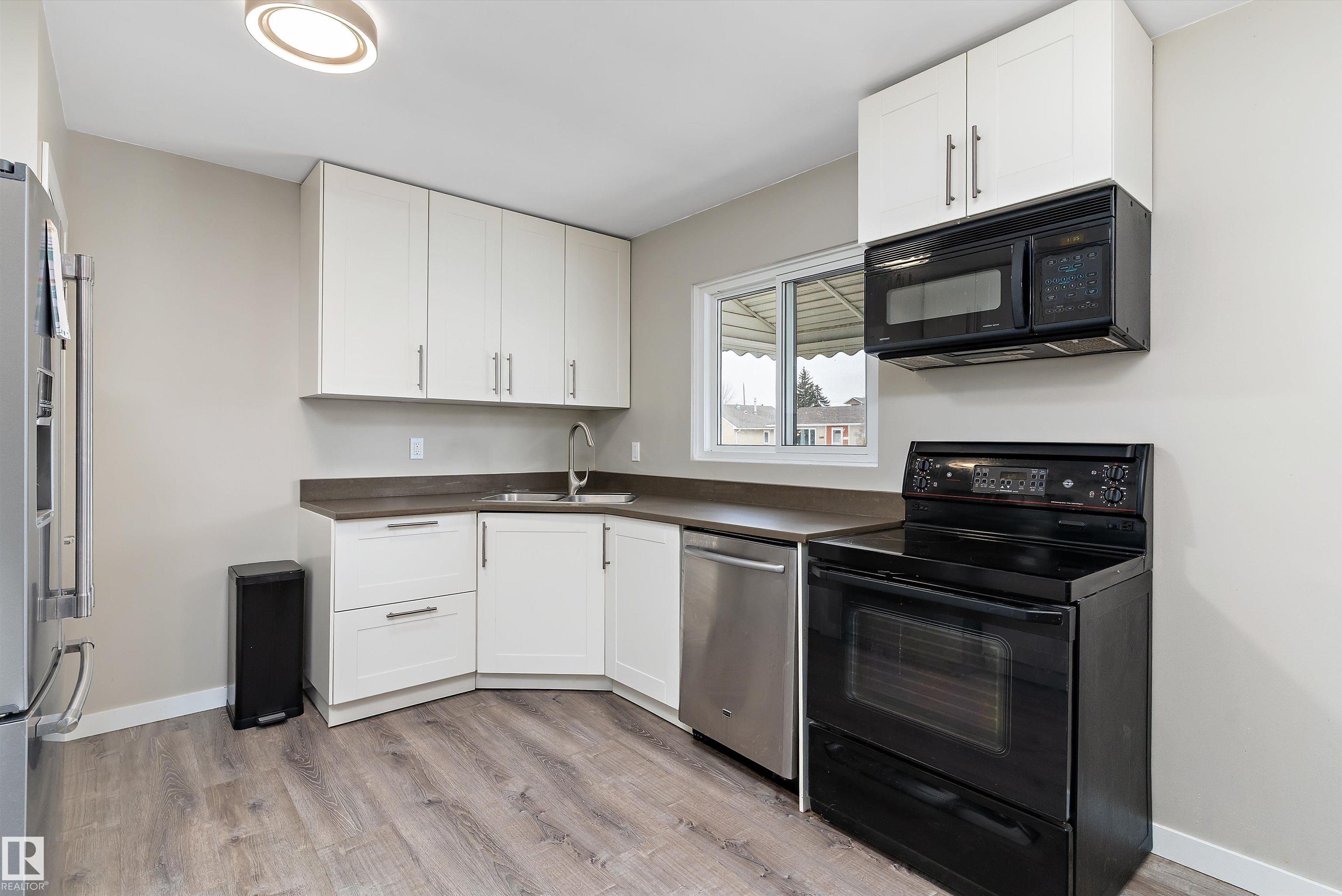 Welcome to 13035 126 St, a thoughtfully updated home on an oversized lot in Calder. This property has undergone extensive renovations, featuring durable vinyl plank flooring, contemporary LED lighting, and stylish custom doors throughout. The kitchen has been completely reimagined with elegant Caesarstone countertops, and full-height white cabinetry offering ample storage, including convenient pot & pan drawers, plus a large walk-in pantry. The kitchen connects effortlessly to the dining space, creating a functional & inviting atmosphere. A sunlit living room at the front of the home is enhanced by a large picture window, filling the space with natural light. The main floor also includes three bdrms, a full bath, and a versatile sunroom. Downstairs, the fully developed bsmt provides excellent additional living space w/second kitchen, family room, fourth bdrm, 3 pc bath, and laundry area. Perfectly positioned close to schools, parks, shopping, Yellowhead Trail and Henday, and a quick commute to downtown.