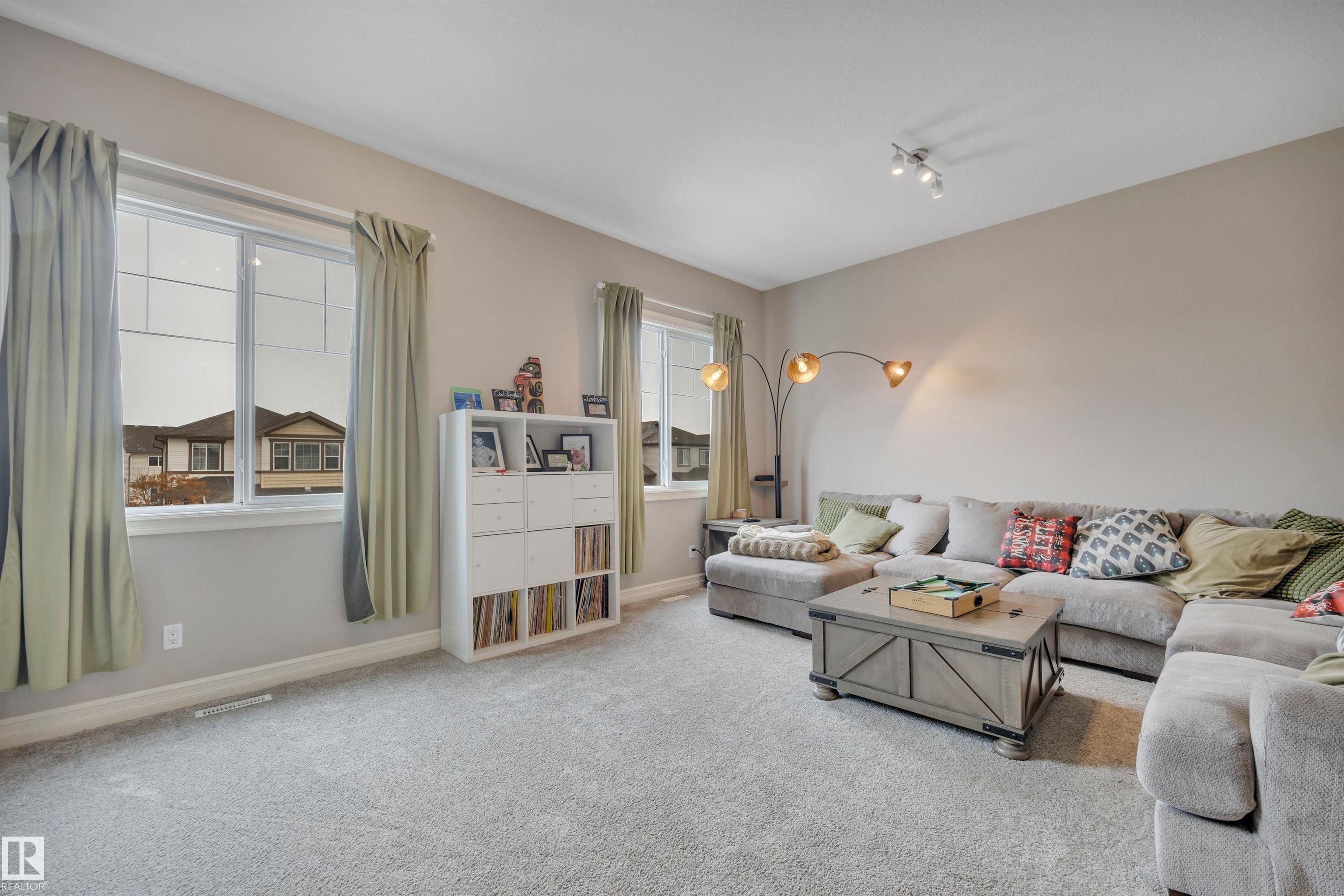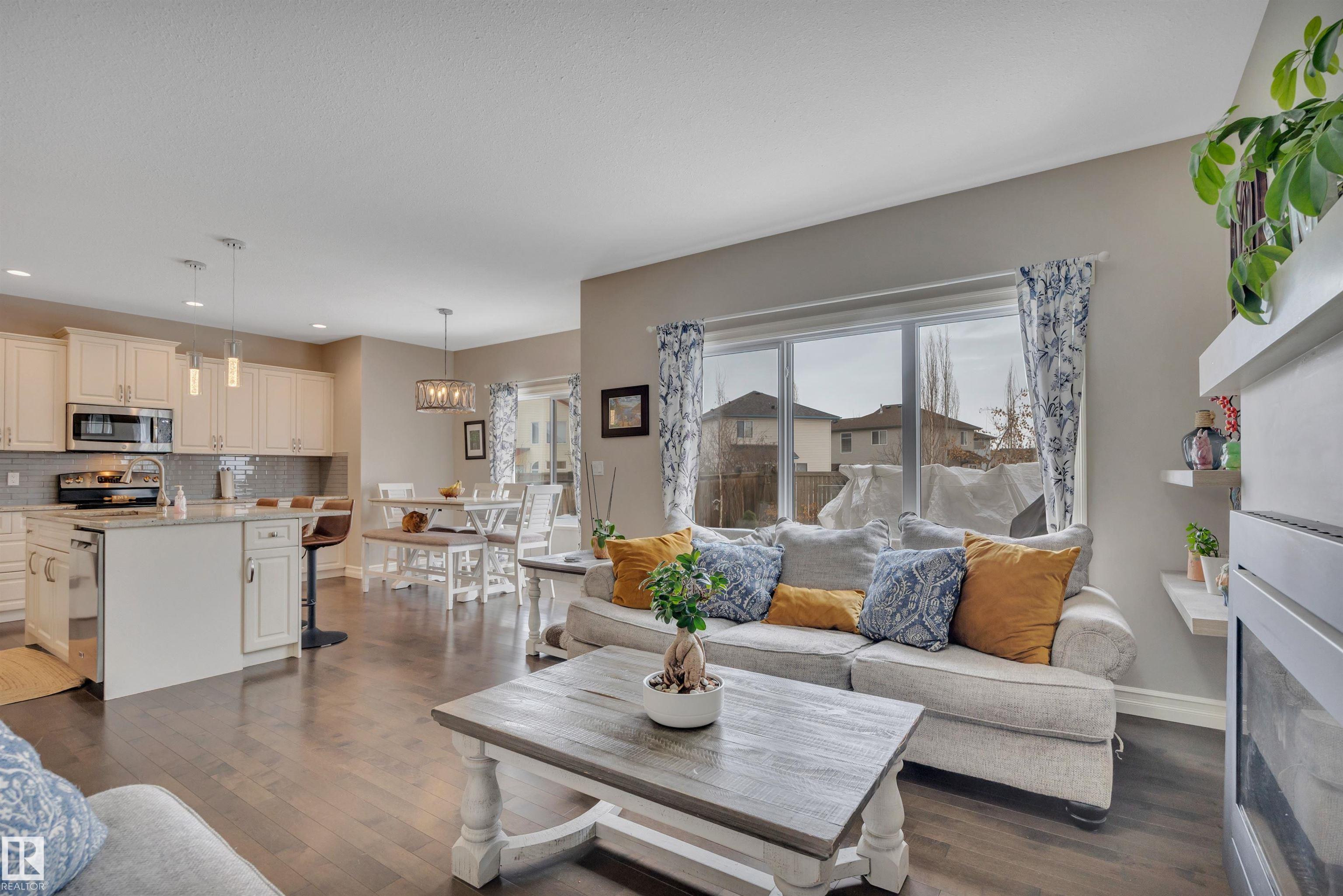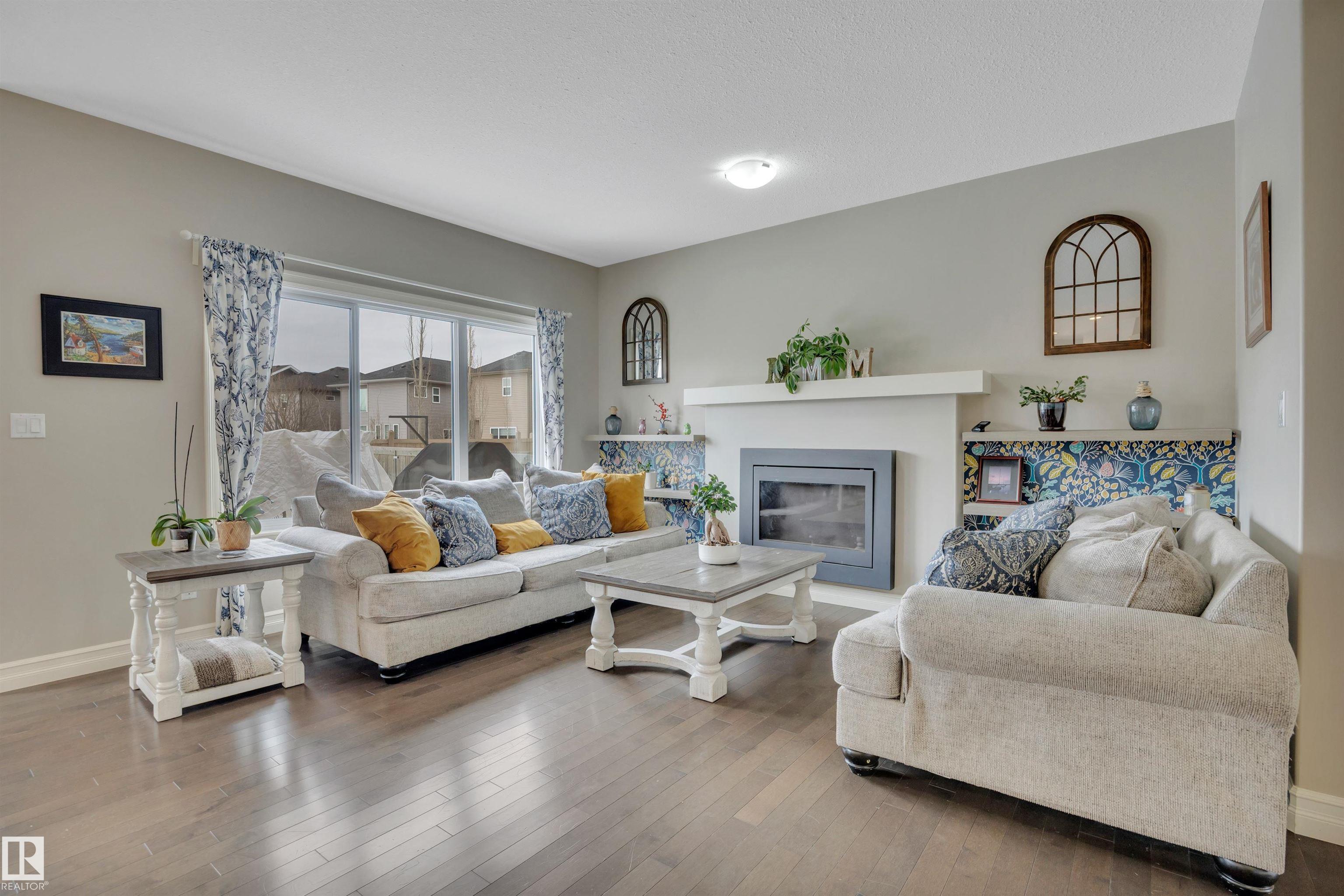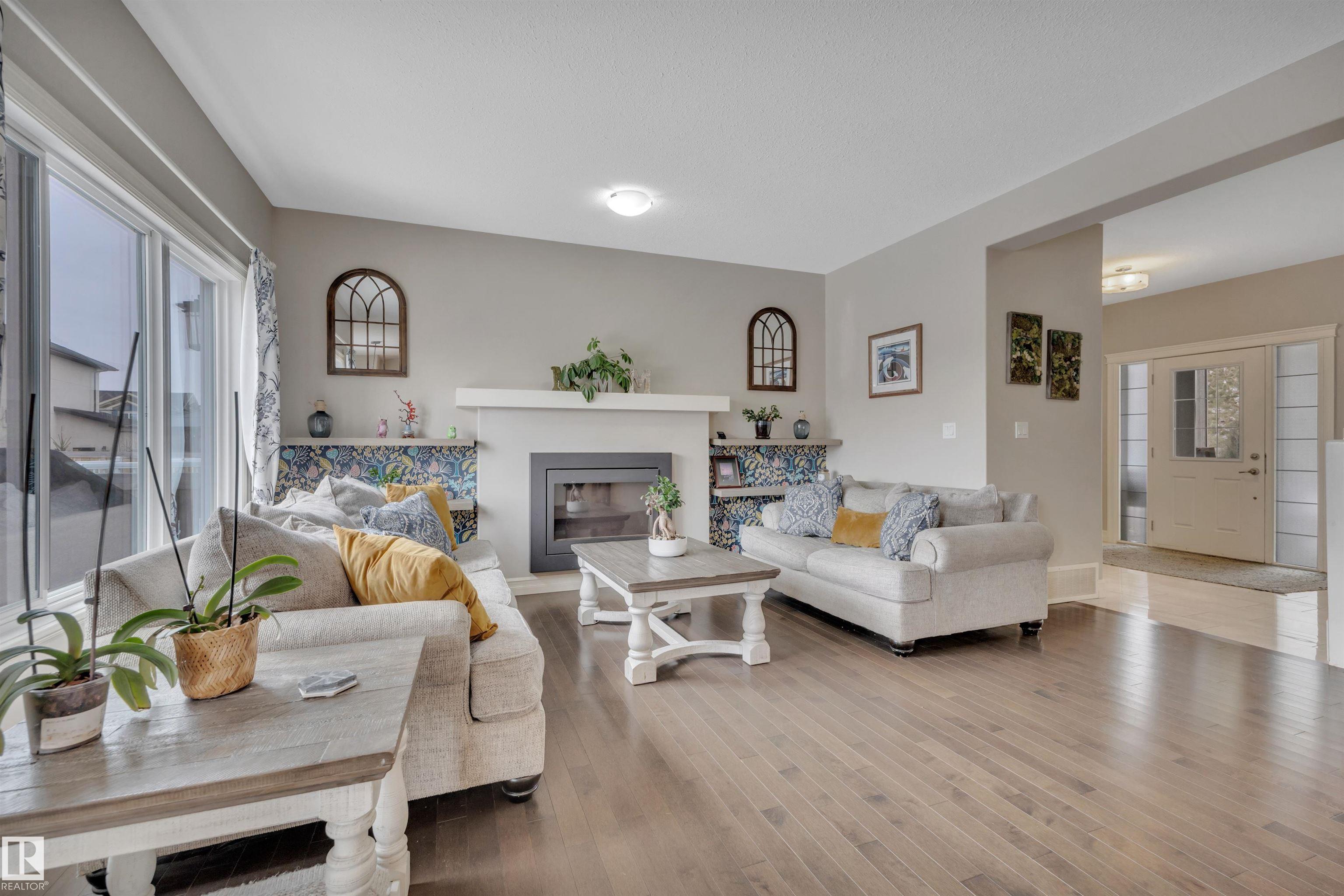 This F/F 3+1 bdrm & 3.5 bath home offers the perfect blend of space, comfort & timeless design. Rich hardwood, warm neutral tones & large windows fill the home with natural light and create a bright, welcoming feel.The open concept main floor is ideal for daily living & entertaining, featuring a spacious kitchen with white cabinetry, large island, corner pantry, dining area & seamless flow into the inviting living room with fireplace & shelving. Upstairs you'll love the impressive bonus room with soaring ceilings ? perfect for movie nights or a relaxing retreat. Generous bedrooms include a comfortable primary suite with 5 pc ensuite. The F/F bsmt. adds the 4th bdrm and large rec space ideal for a media room, games area or teen hangout. Enjoy the beautifully landscaped east-facing yard with glass-railed deck ideal for morning coffee and summer evenings. Located in the family friendly Hudson - close to parks, schools, all the amenities one needs with quick access to the Anthony Henday & Yellowhead.