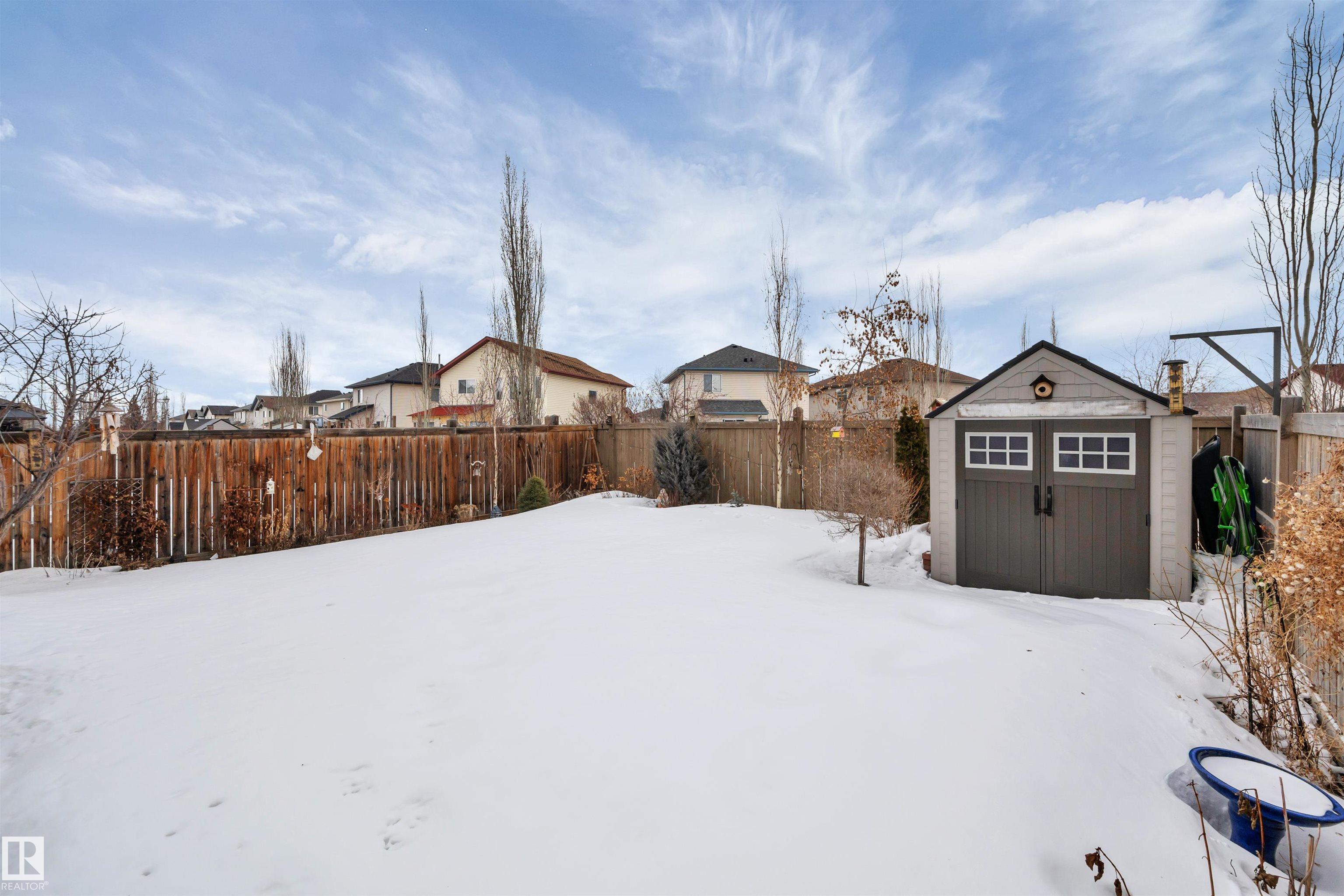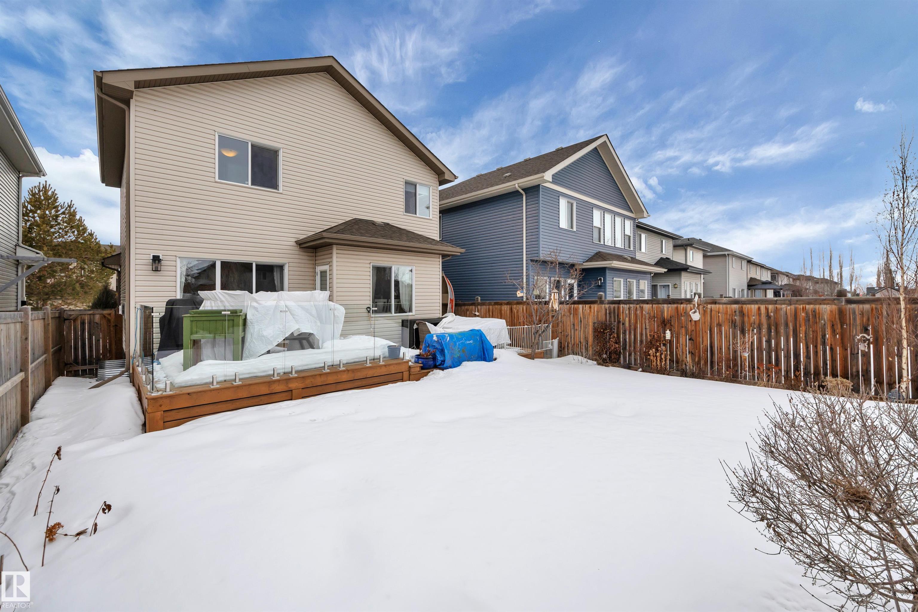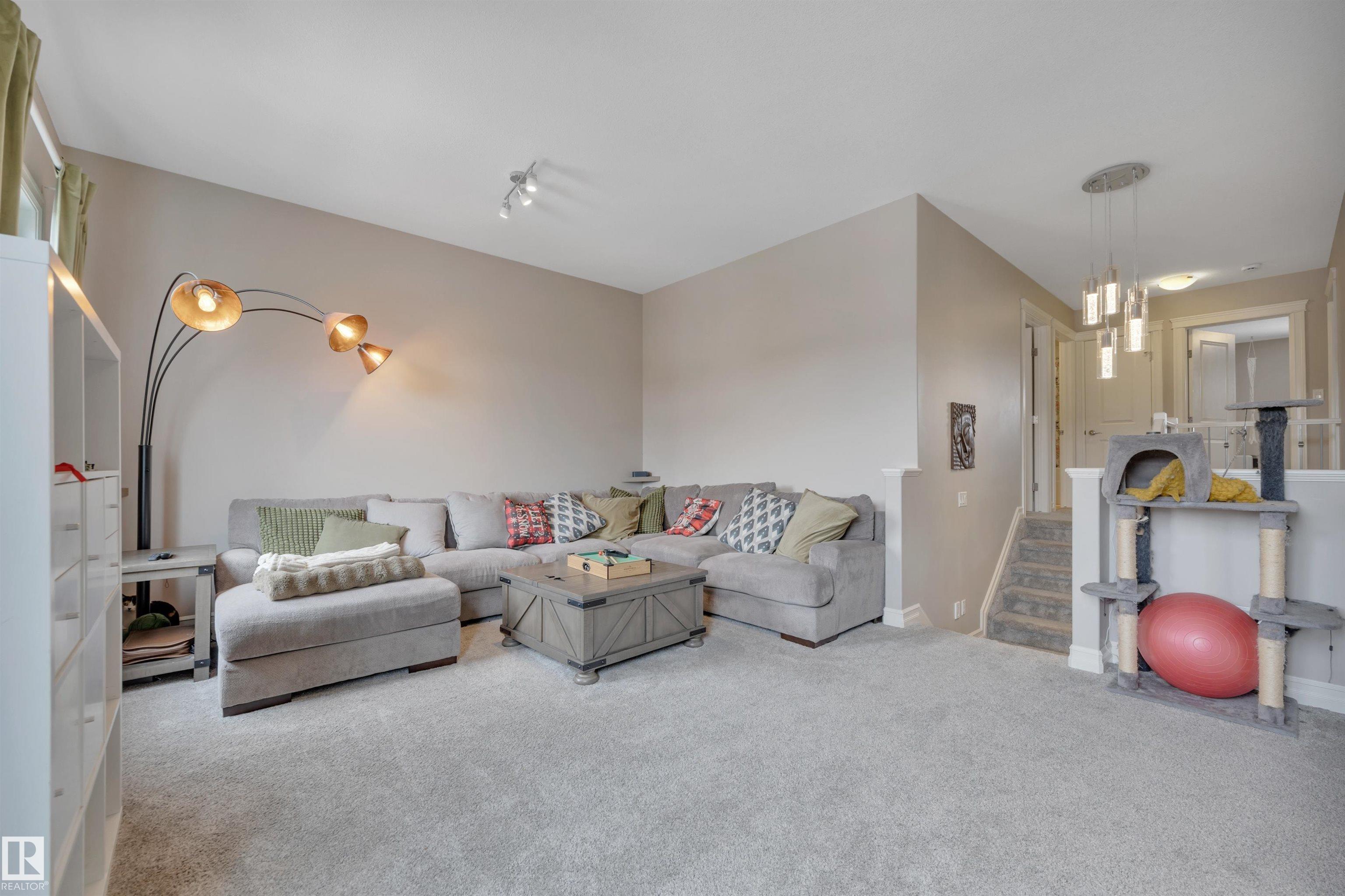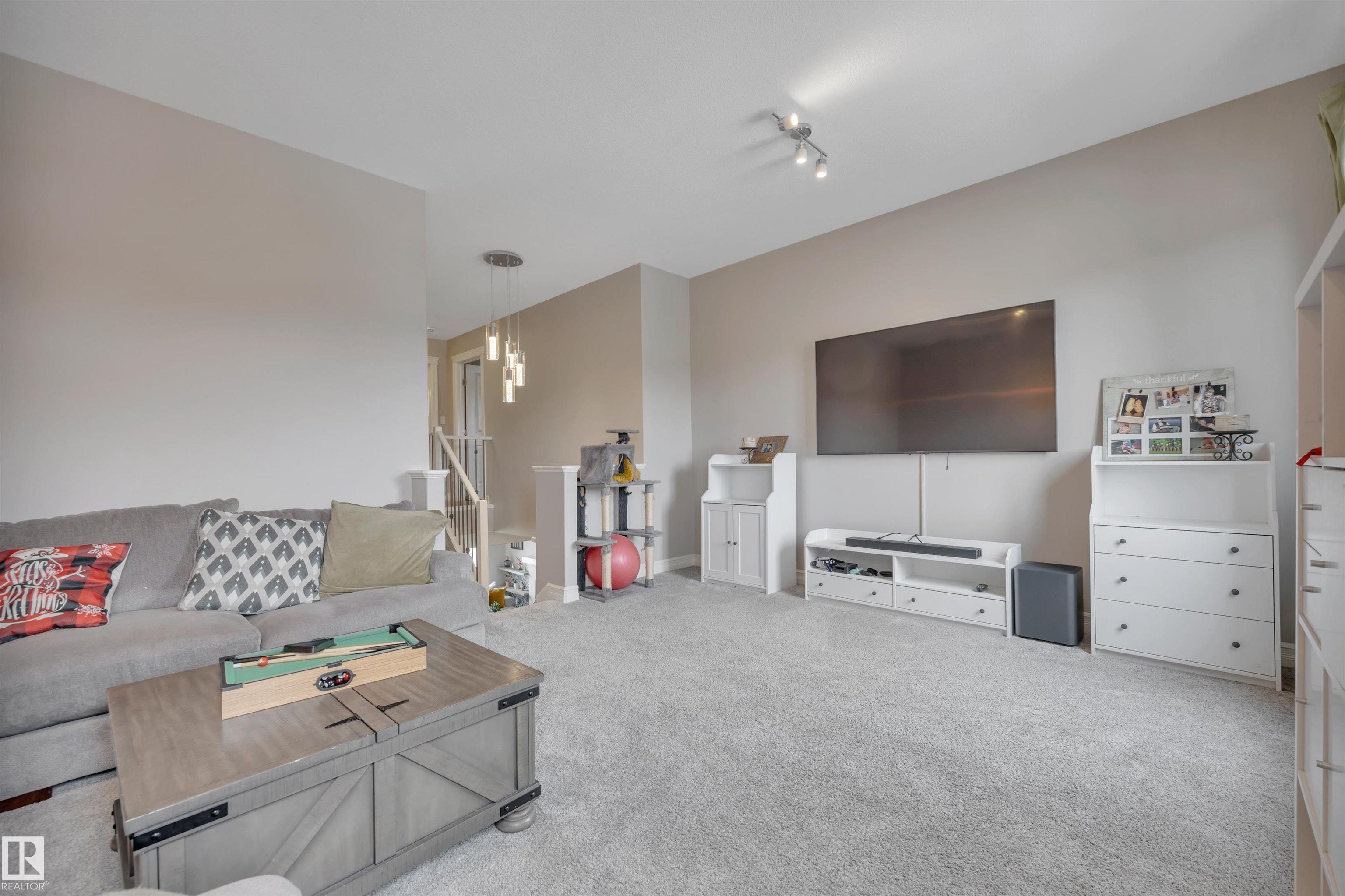 This F/F 3+1 bdrm & 3.5 bath home offers the perfect blend of space, comfort & timeless design. Rich hardwood, warm neutral tones & large windows fill the home with natural light and create a bright, welcoming feel.The open concept main floor is ideal for daily living & entertaining, featuring a spacious kitchen with white cabinetry, large island, corner pantry, dining area & seamless flow into the inviting living room with fireplace & shelving. Upstairs you'll love the impressive bonus room with soaring ceilings ? perfect for movie nights or a relaxing retreat. Generous bedrooms include a comfortable primary suite with 5 pc ensuite. The F/F bsmt. adds the 4th bdrm and large rec space ideal for a media room, games area or teen hangout. Enjoy the beautifully landscaped east-facing yard with glass-railed deck ideal for morning coffee and summer evenings. Located in the family friendly Hudson - close to parks, schools, all the amenities one needs with quick access to the Anthony Henday & Yellowhead.