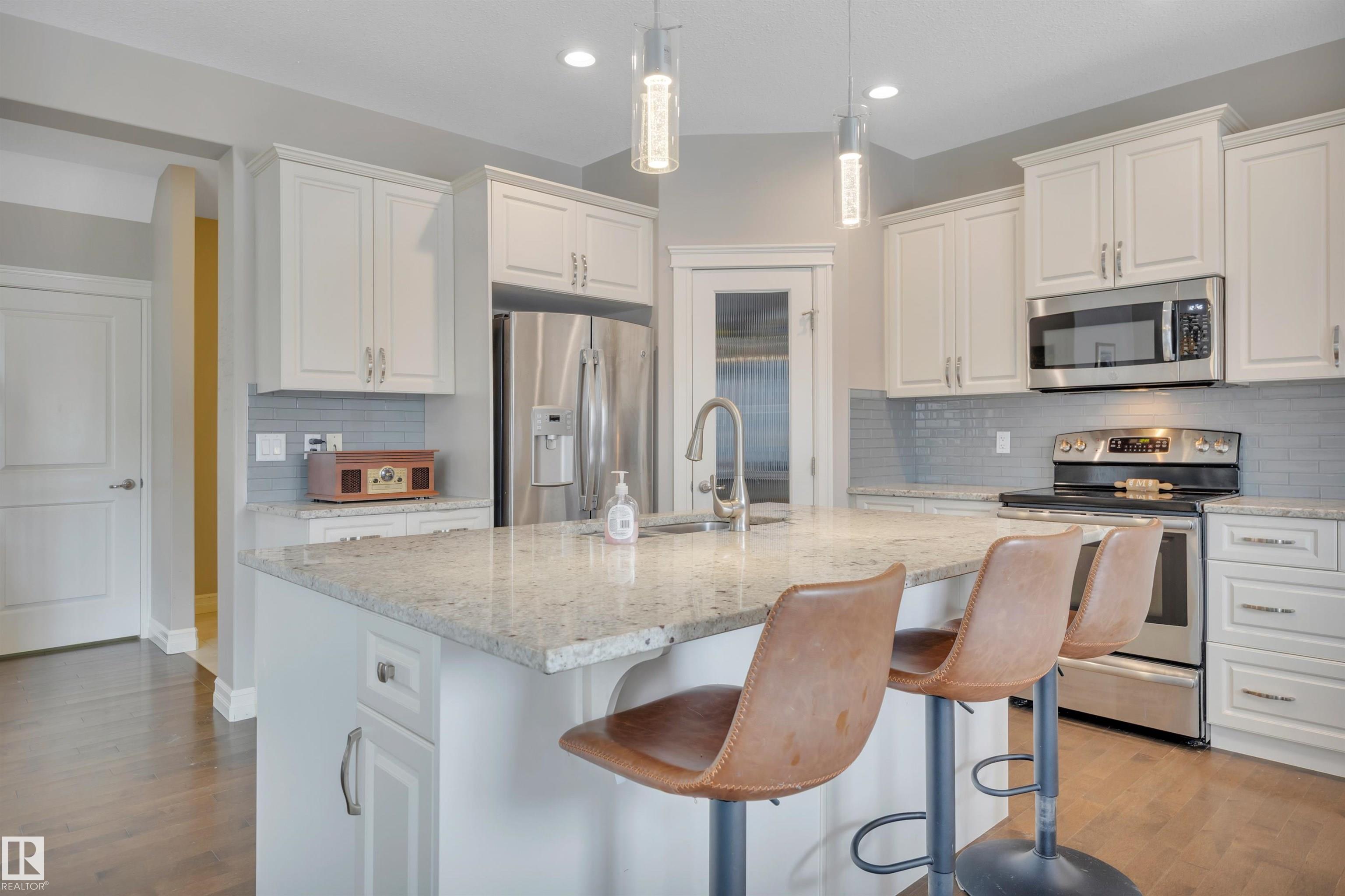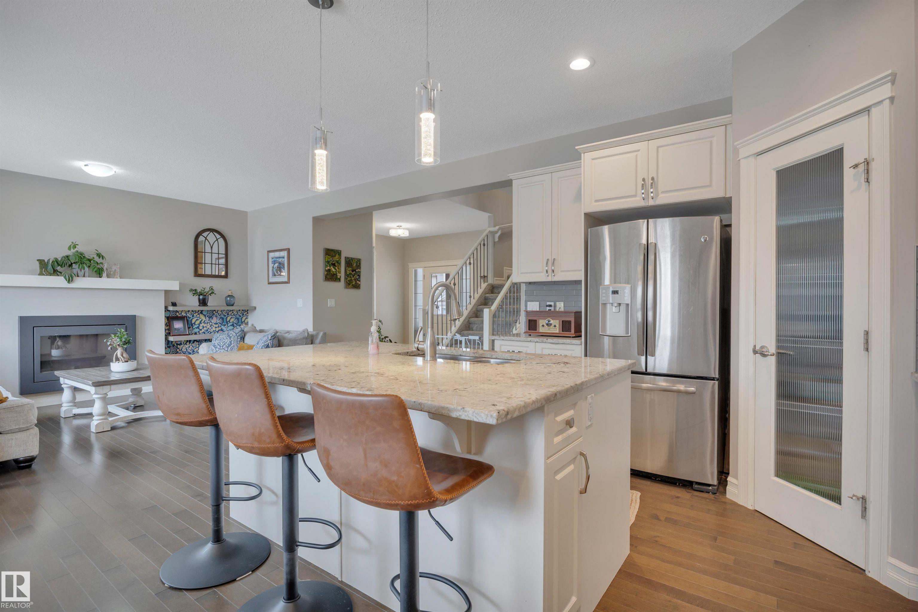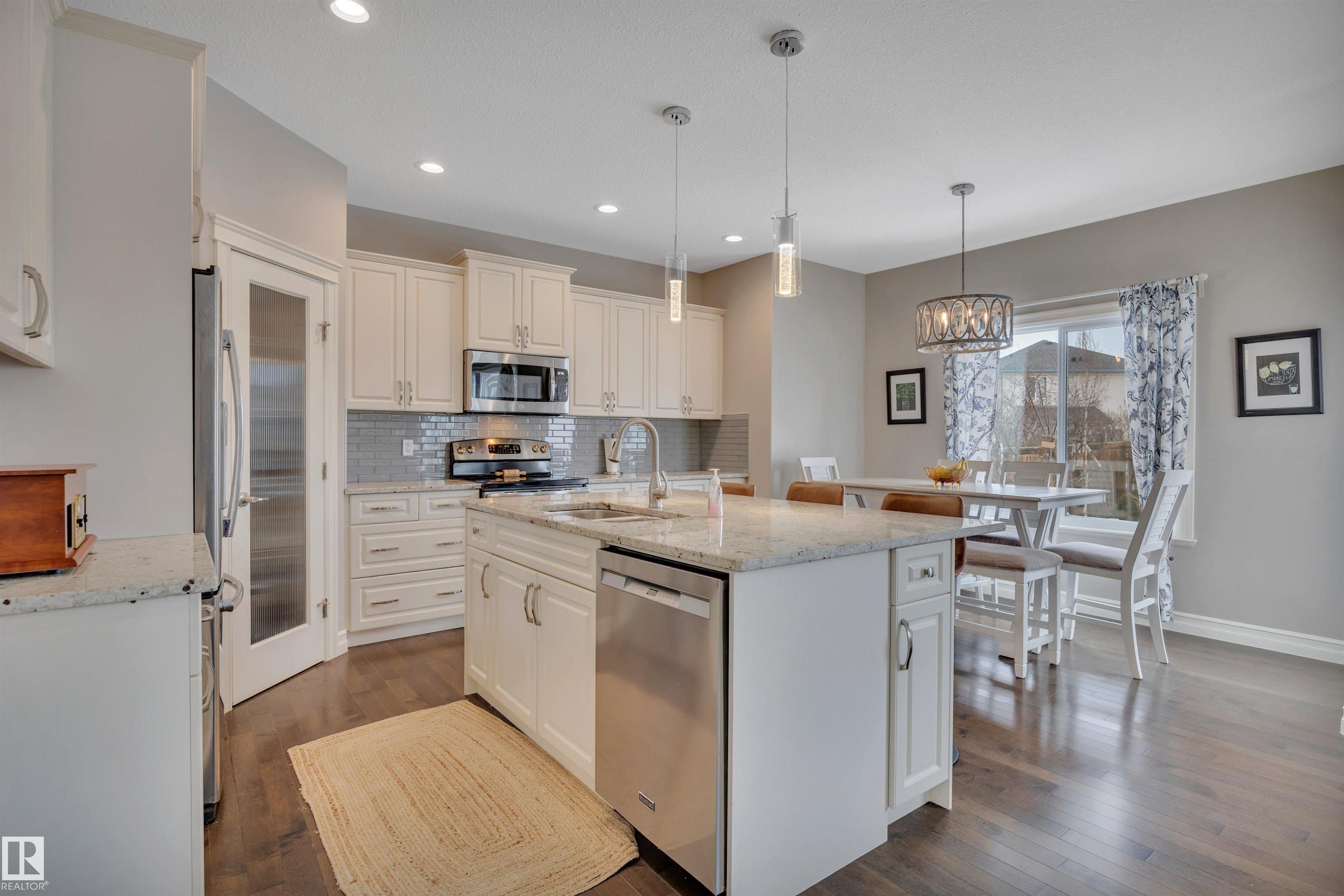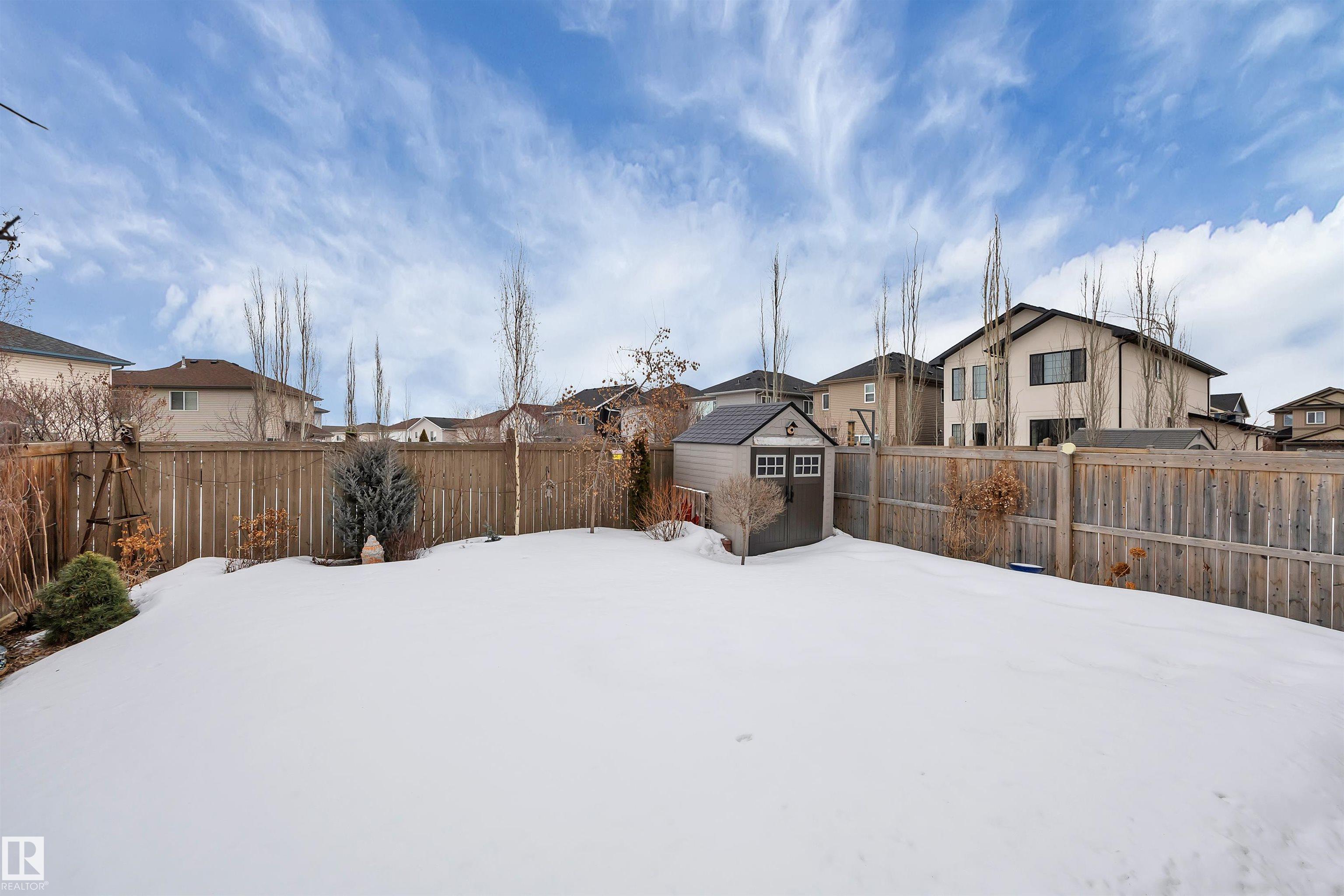This F/F 3+1 bdrm & 3.5 bath home offers the perfect blend of space, comfort & timeless design. Rich hardwood, warm neutral tones & large windows fill the home with natural light and create a bright, welcoming feel.The open concept main floor is ideal for daily living & entertaining, featuring a spacious kitchen with white cabinetry, large island, corner pantry, dining area & seamless flow into the inviting living room with fireplace & shelving. Upstairs you'll love the impressive bonus room with soaring ceilings ? perfect for movie nights or a relaxing retreat. Generous bedrooms include a comfortable primary suite with 5 pc ensuite. The F/F bsmt. adds the 4th bdrm and large rec space ideal for a media room, games area or teen hangout. Enjoy the beautifully landscaped east-facing yard with glass-railed deck ideal for morning coffee and summer evenings. Located in the family friendly Hudson - close to parks, schools, all the amenities one needs with quick access to the Anthony Henday & Yellowhead.