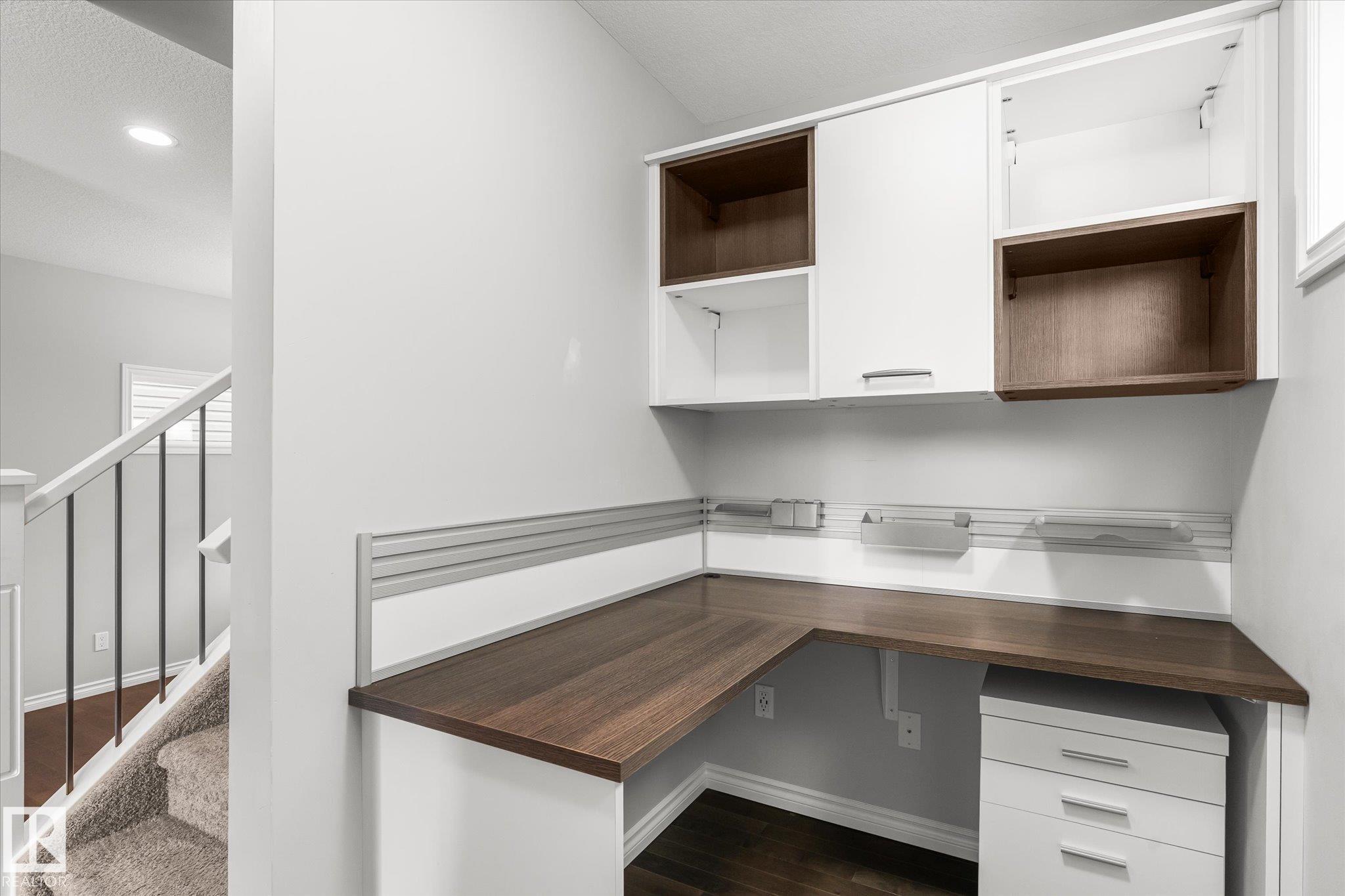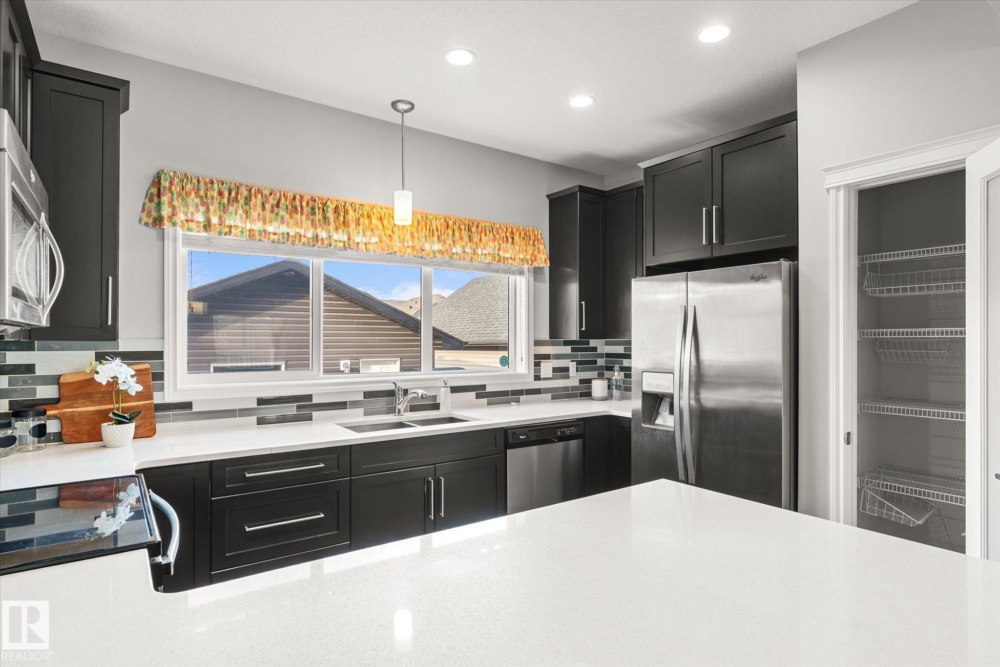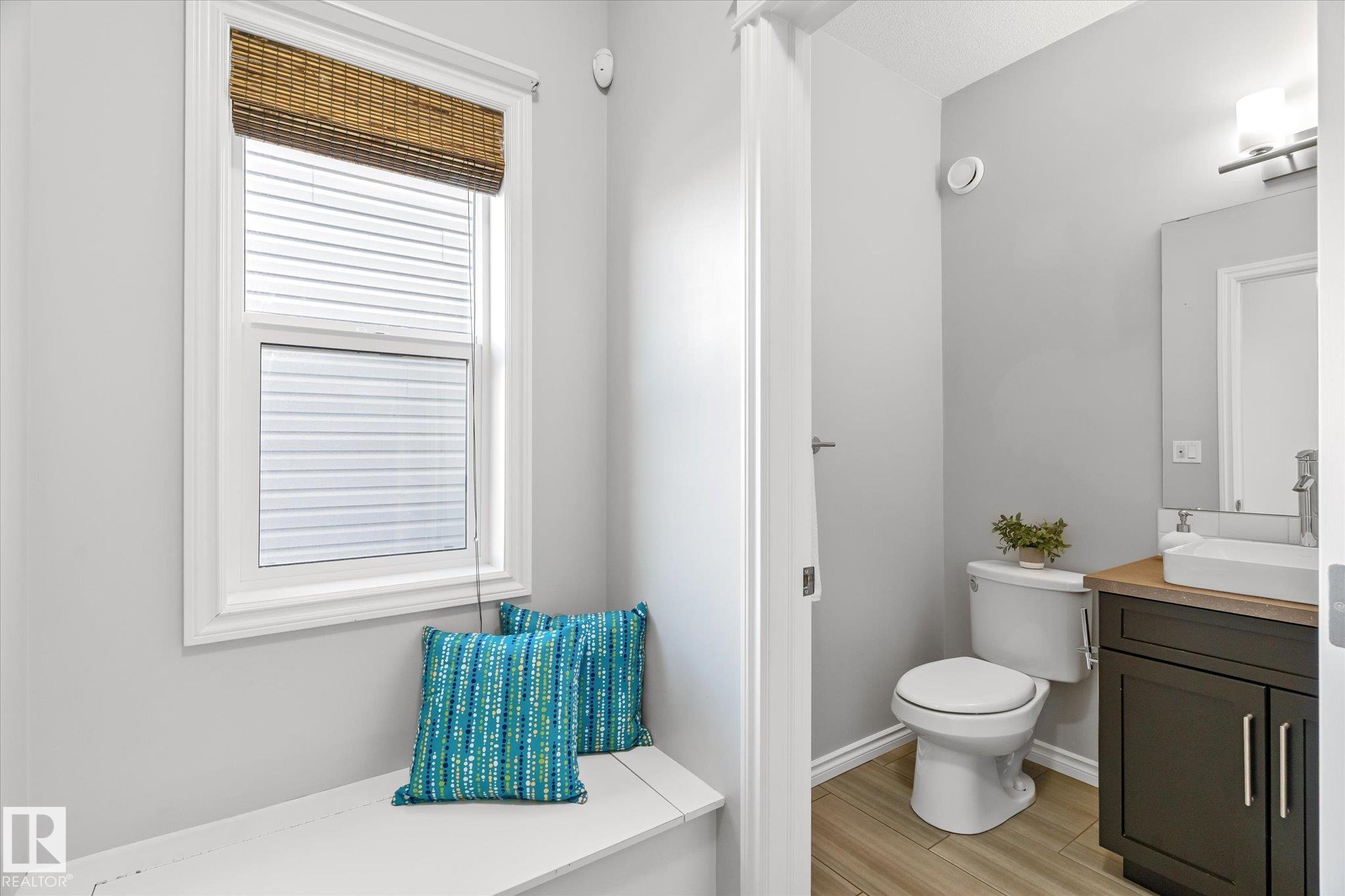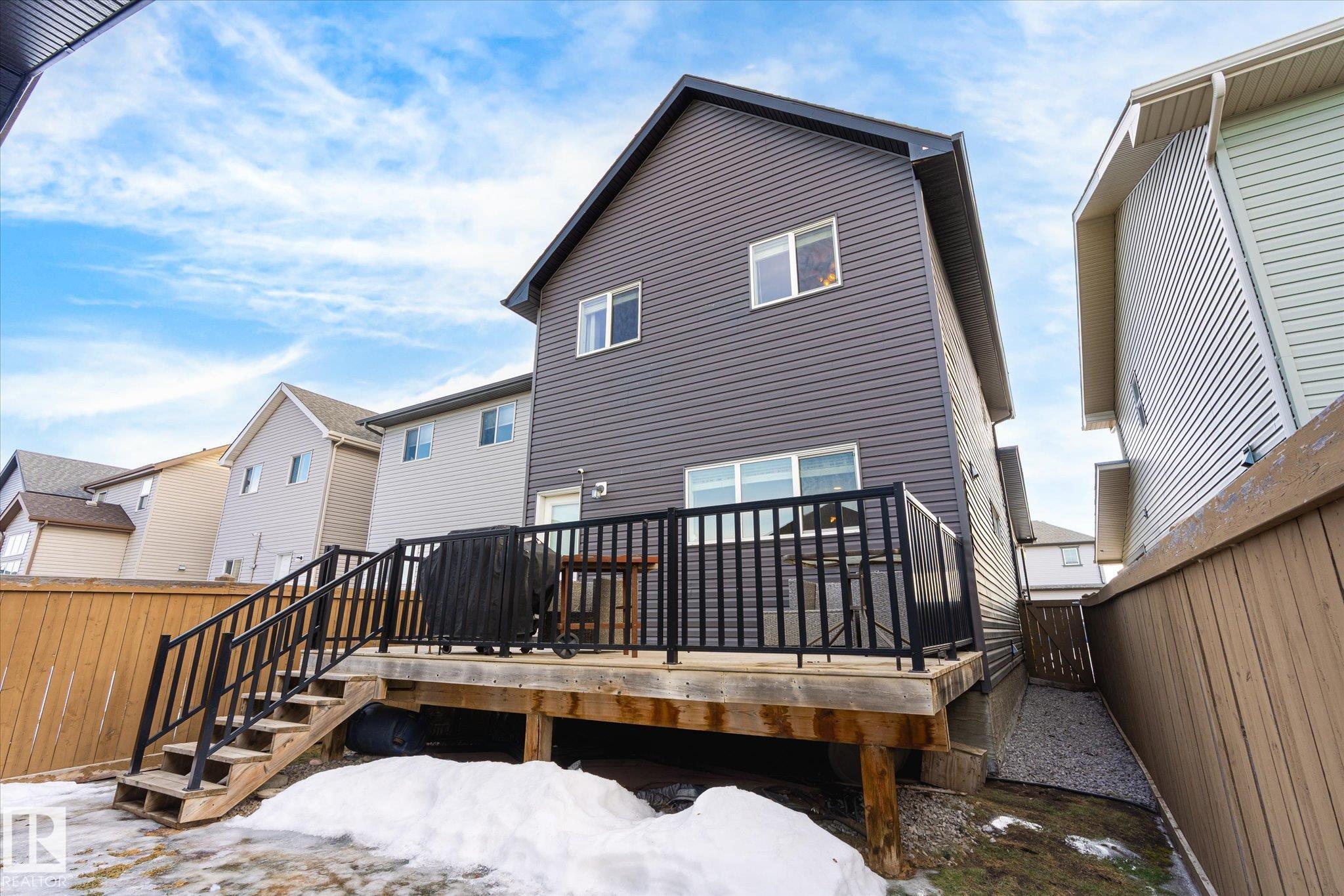 Your next chapter starts here! This adorable 2 storey home is ready for its next family-a place to grow,gather & unwind. Located on a great street w/ ample parking & across from a landscaped centre boulevard island, this property has great curb appeal w/ its sweet front porch & bright front door! The main floor features 9ft ceilings, a sunny front living room, dining space & beautiful kitchen w/ stainless steel appliances & quartz countertops. This level also boasts the perfect little office space w/ built-in desk & cabinets, a 2 pce guest bathroom, back entry that leads out to the sizeable deck, maintainable yard & double detached garage. Upstairs hosts 3 bedrooms & 2 bathrooms which includes the primary bedroom w/ vaulted ceilings & a 5pce ensuite w/ double sinks! Finishing off this level is the convenient upstairs laundry room. Additionally the basement has 9ft ceilings,rough in plumbing for future bathroom & a clean palette to complete. Another property highlight is central A/C for those warm summers.