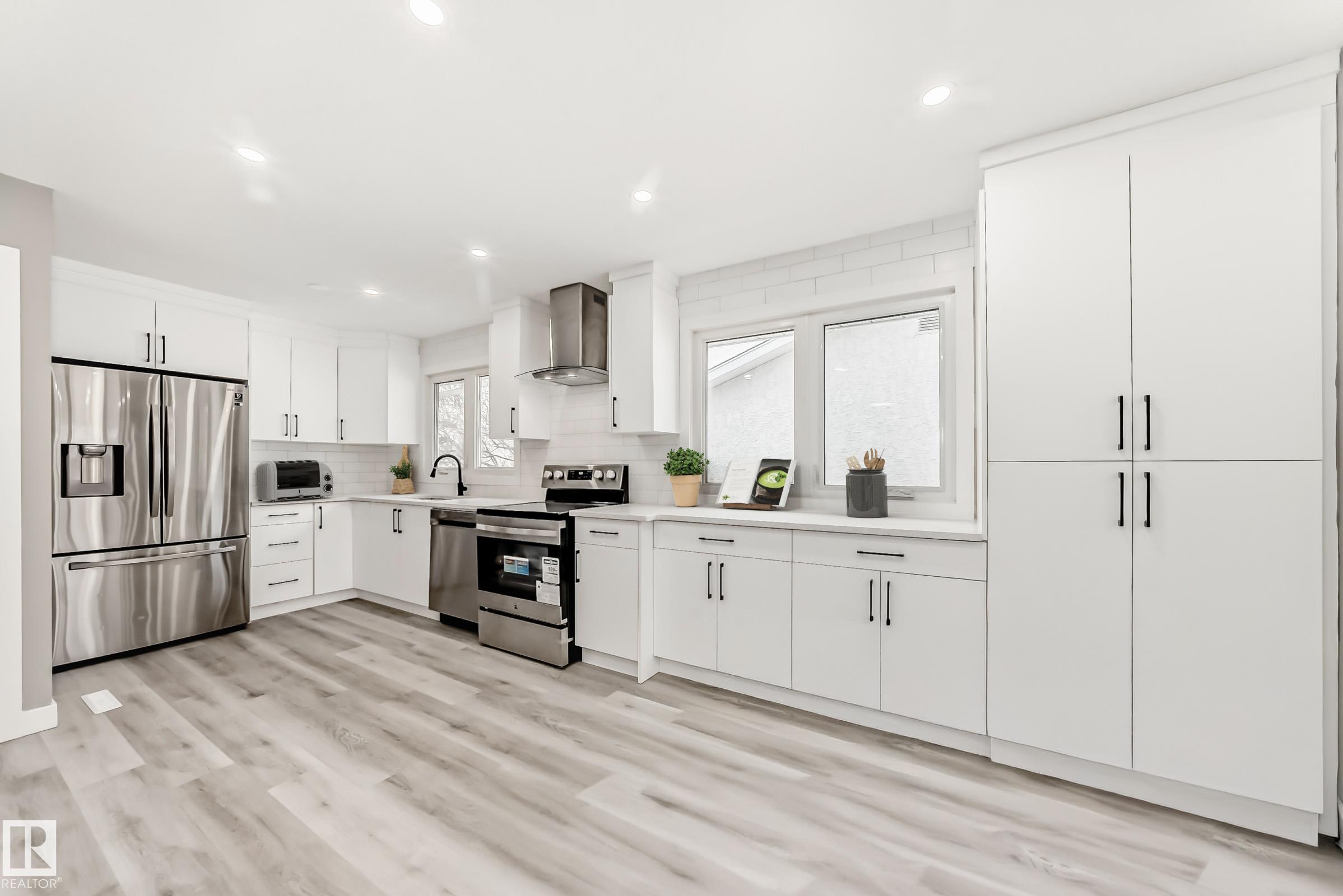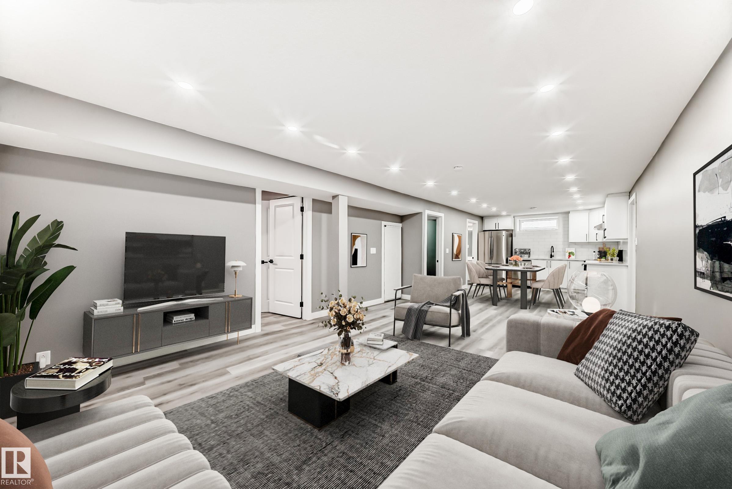 Prepare to be wow'ed by this beautiful home perfectly located in a highly sought-after neighbourhood in Delwood. Fully turn-key. Completely renovated Top to Bottom. Brand new 2 kitchens, appliances, High Efficient Furnace, New Windows, New Roof, New flooring and bathroom, Freshly painted. Walking into this home you are greeted by the large bright and open family room/dining room with large windows, spacious kitchen, Master bedroom with sunroom, 2 more bedrooms, separate 4 pc bath & Storage. Basement has it's own SEPERATE ENTRANCE with large family room/dining room, 2nd Kitchen, 2 more bedrooms, Full Bathroom, laundry & storage room. Huge private backyard with Double detached oversize garage, Sunroom & RV Parking. It is one of the best commute to anywhere with Yellowhead Hwy being 5 minutes and Anthony Henday being 9 minutes away, Easy access to schools, park, Londonderry Mall, Northgate Mall & all amenities. This is a terrific family home you do not want to miss! Some photos are virtually staged