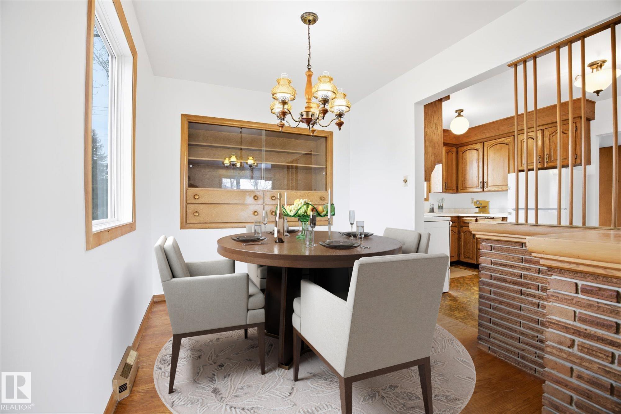 Welcome to this well-maintained 1,080 sq ft bungalow on a large corner lot in the highly desirable community of Capilano! This charming home has been lovingly cared for and features fresh paint throughout, making it move-in ready. The main floor offers a bright and spacious living room with large windows, beautiful original hardwood flooring, amazing real-wood built-ins, and plenty of natural light. The adjoining dining area flows into the kitchen with ample cabinet and counter space. You?ll also find three well-sized bedrooms and a full 4-piece bathroom. The fully finished basement adds incredible additional living space with a large rec room, retro-style bar, second bathroom, and your own private sauna?perfect for relaxing. Outside, enjoy the oversized yard, built-in firepit area, and an oversized single detached garage. Close to schools, parks, shopping, and the river valley, this is a fantastic opportunity!