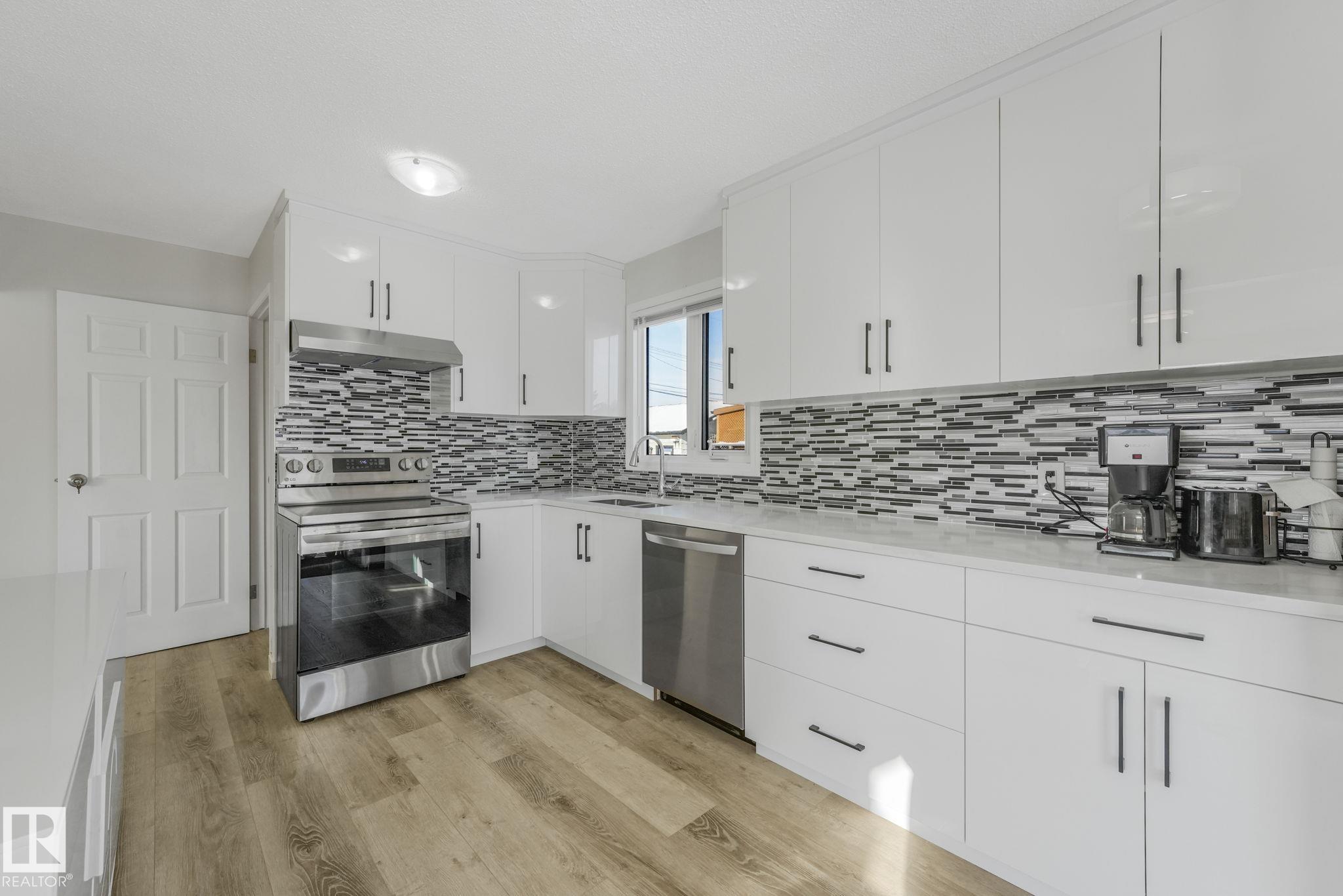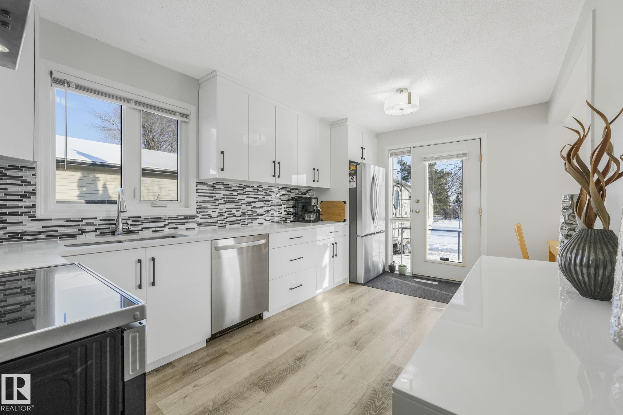Some homes just feel right the moment you arrive, this one is no exception. Situated on a large corner lot across from the park in the Delwood neighbourhood. This four bedroom, two bathroom home is in one of Edmonton's most cherished community Step inside the main level and observe the abundance of natural light pouring through the large windows. The updated kitchen featuring modern finishes is the heart of the home With three bedrooms and a full bathroom, the main level offers space and comfort. A double detached heated garage offers storage and work space with dedicated RV parking. The new shingles mean you can move in with confidence. The fully finished basement has its own separate entrance, kitchen, bedroom, rec room and bathroom. Perfect for a in-law suite. With quick access to Yellowhead, Londonderry, the buzz of 97 street are all close at hand and a short drive to downtown. This is the complete package for first- time home buyers, growing families or savvy investors.