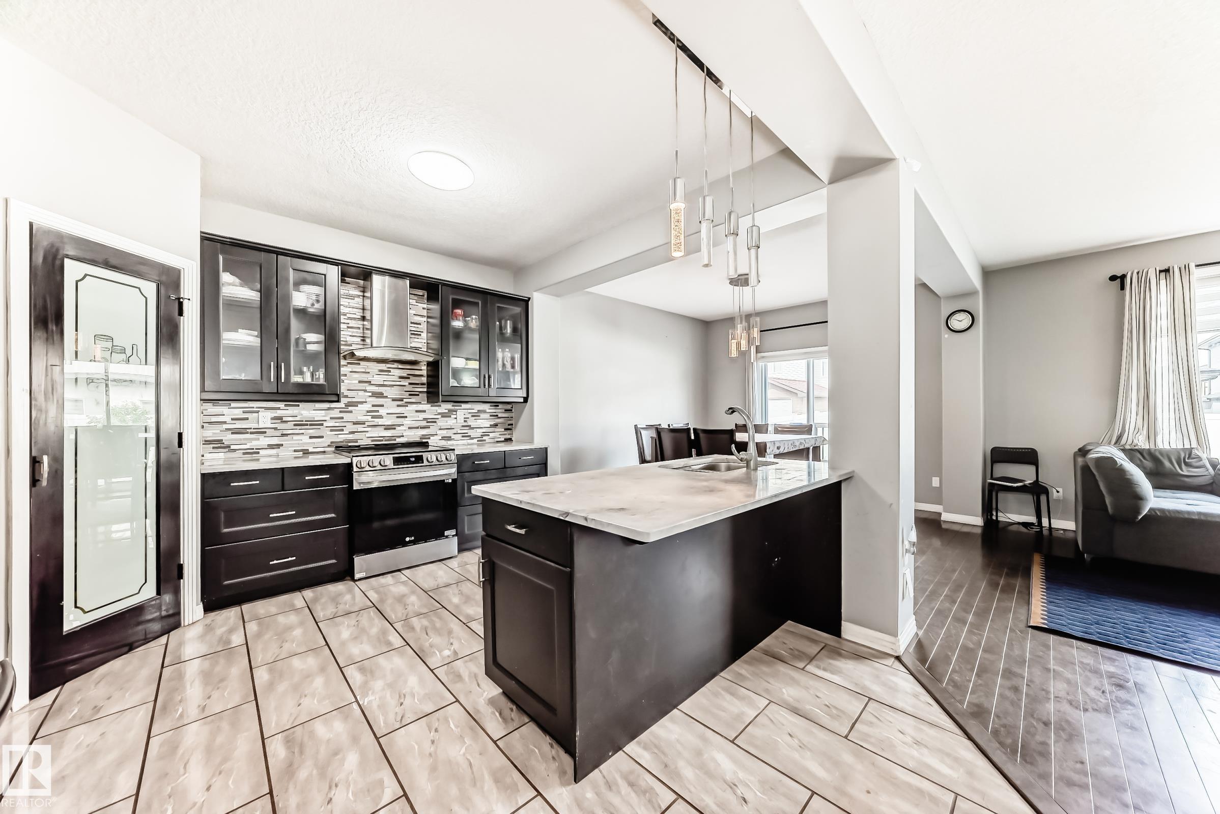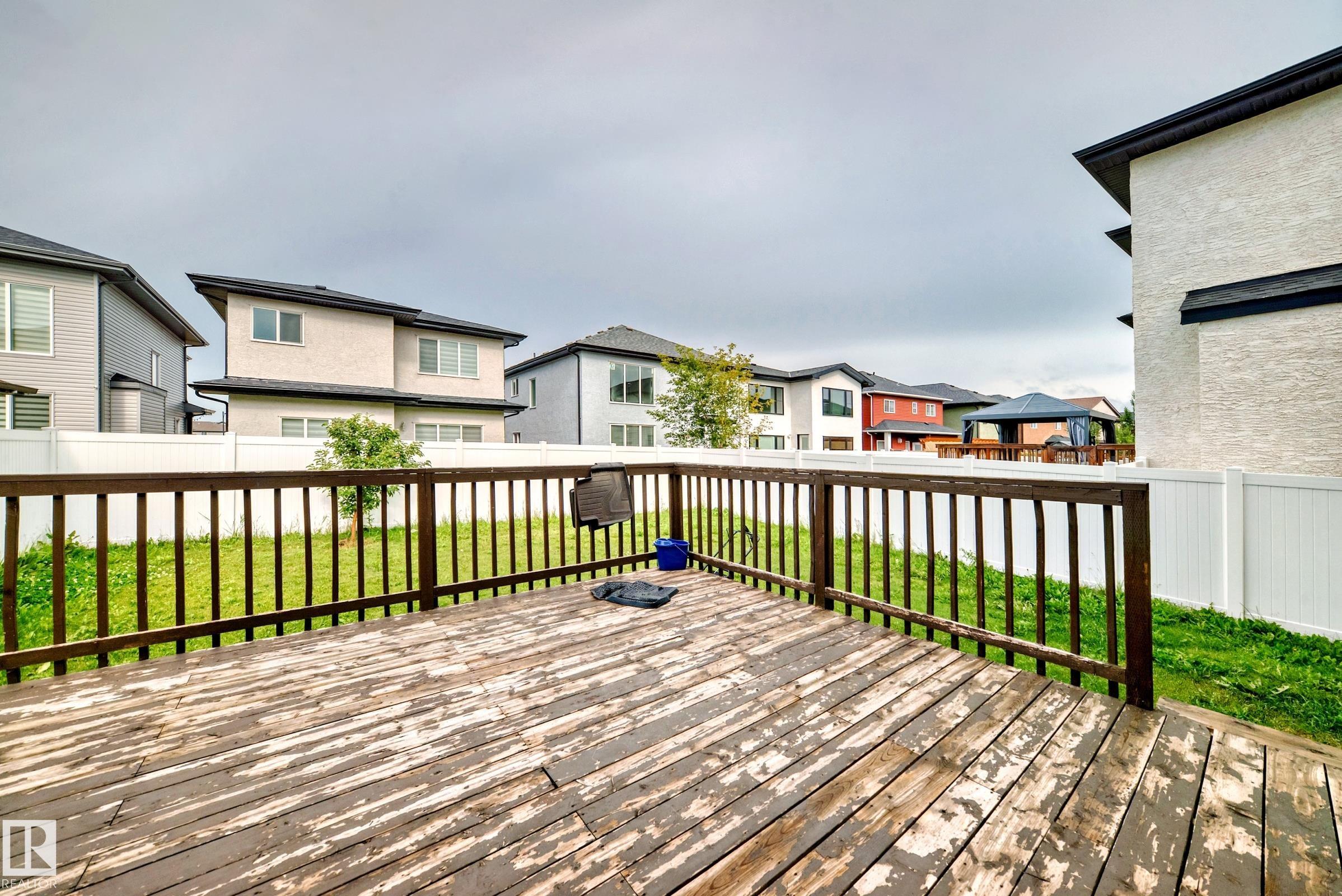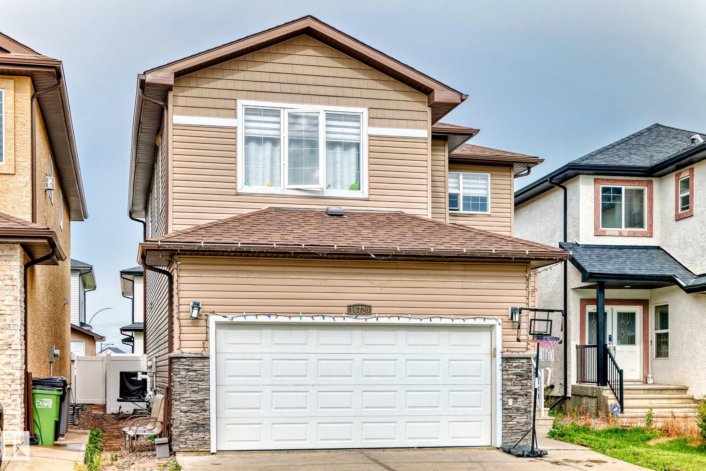 Welcome to this beautifully maintained 2-storey home in the desirable community of McConachie. This immaculate 2081 sq ft home features hardwood flooring on the main level, tile in the kitchen, carpet upstairs, and luxury vinyl plank in the fully finished basement. The open-concept main floor offers 9? ceilings, a stone-faced gas fireplace, and access to a west-facing, maintenance-free deck and fully fenced yard. The upgraded kitchen includes granite countertops, a large island with double sinks, tile backsplash, chef?s hood fan, pantry, and a bright breakfast nook. Upstairs offers a spacious bonus room, large primary suite with walk-in closet and 5-pc ensuite with jetted tub, plus two more bedrooms with closet organizers. Upper floor laundry with front-load washer/dryer. The basement features a second kitchen, bedroom, and full bath. Additional features: A/C, tankless HWT, alarm, central vacuum, finished double garage, and vinyl siding. Close to Henday, Manning & shopping.