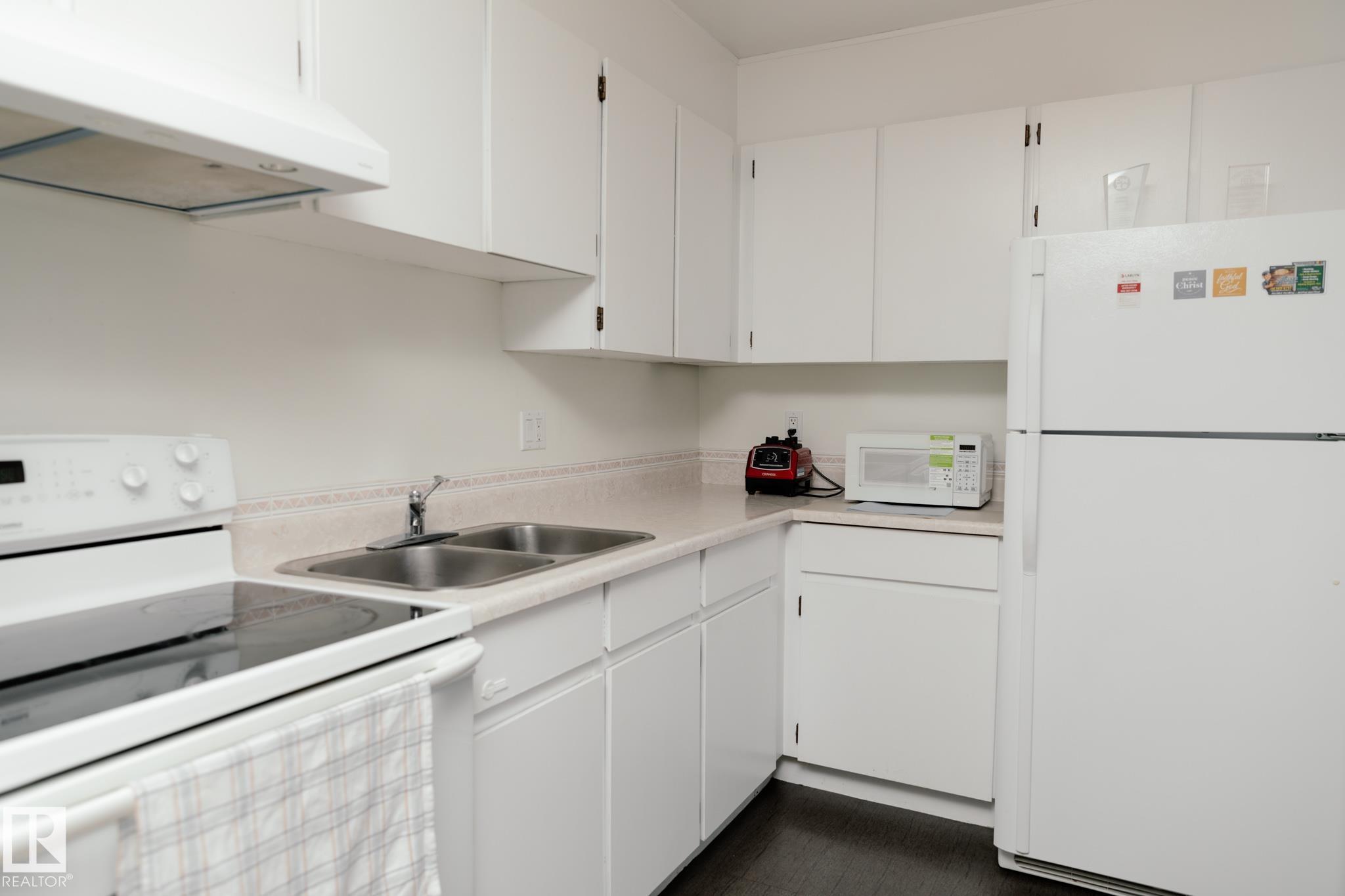 Welcome to this charming and budget-friendly studio in southwest Edmonton! Located in Fairway South, this unit is just minutes from Century Park LRT and nearby schools. Inside, you?ll find a bright and inviting living space with updated flooring, fresh paint, and modern lighting. Step out onto the covered balcony for a relaxing outdoor retreat. The sleeping area offers privacy and generous storage, while the clean kitchen with white cabinetry is nicely tucked away from the main living area. A comfortable dining nook overlooks the courtyard, and the updated 3-piece bathroom adds a modern touch. With same-floor laundry, an assigned parking stall, and condo fees that include all utilities, this home is a fantastic opportunity for first-time buyers.