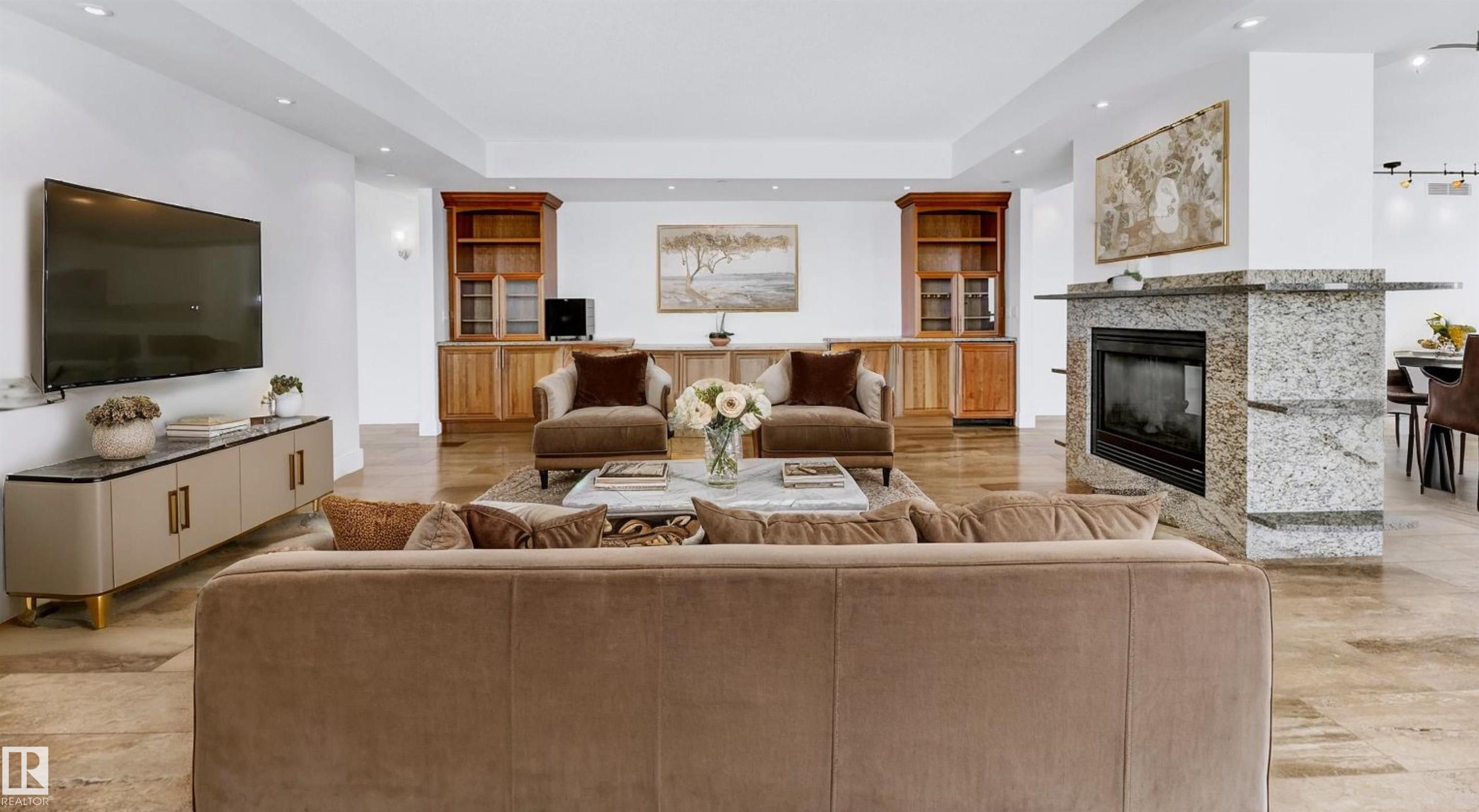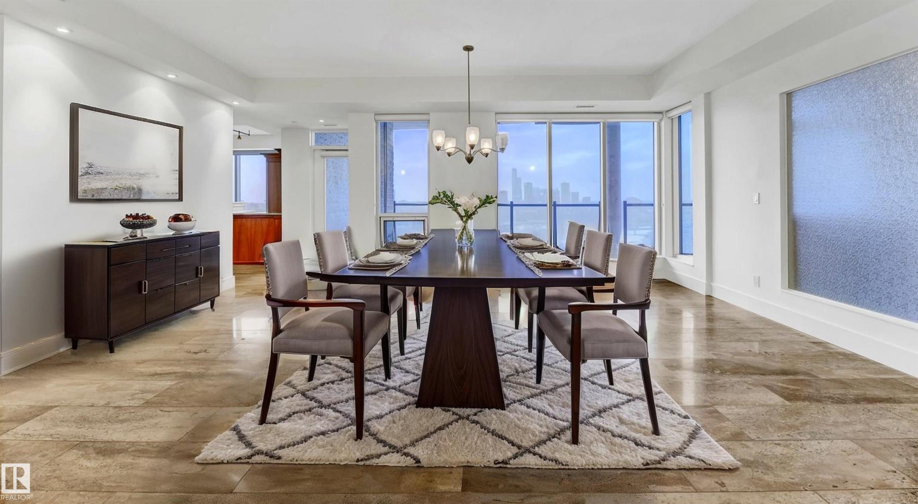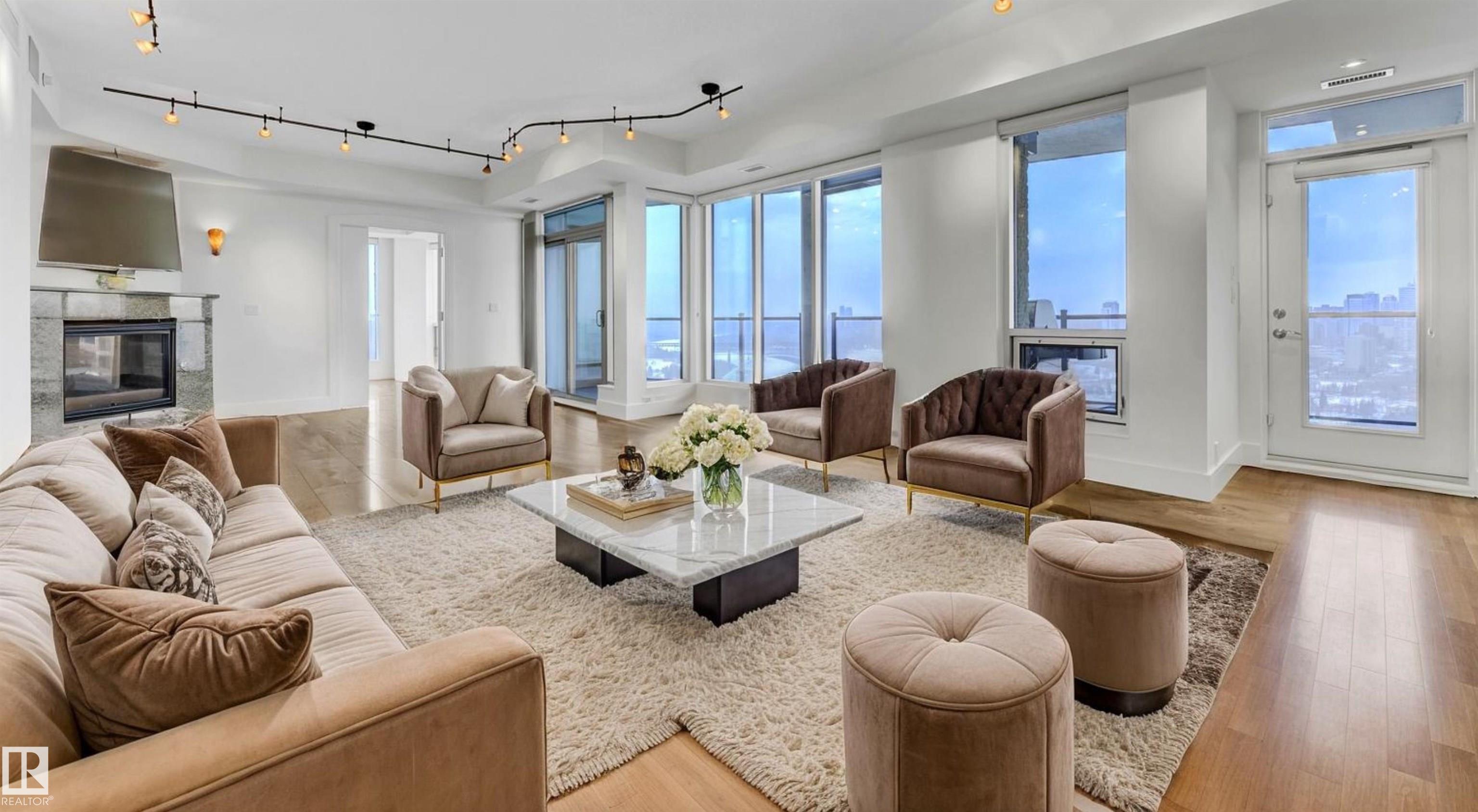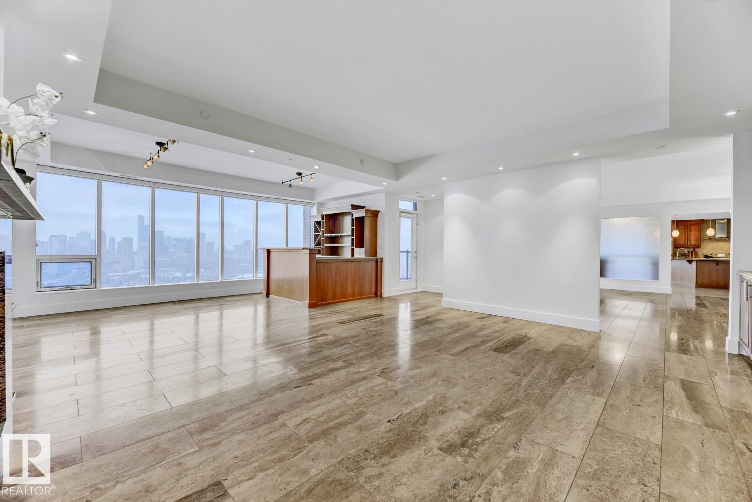 One River Park, Edmonton?s most prestigious private residence. This full-floor penthouse on the 19th floor offers stunning 360-degree views of downtown, the North Saskatchewan River, & iconic landmarks, with three expansive balconies to take it all in. Designed for elegance & comfort, the home features floor-to-ceiling windows, a grand foyer, formal living & dining areas, & a gourmet chef?s kitchen with premium appliances, granite countertops, & custom cabinetry. A bar area, breakfast nook, & walk-in pantry only add to daily convenience. The primary suite is a true retreat, boasting 2 spa-inspired ensuites & 2 dressing rooms. Two more bedrooms each have access to a bath, while a media room with a two-sided F/P & a dedicated office. Additional features include a private elevator access that opens directly into the suite, in-suite laundry, built-in central vacuum, ample storage, central A/C, a heated underground garage that offers 5 parking stalls, including an enclosed 3 car garage & 3 storage lockers.