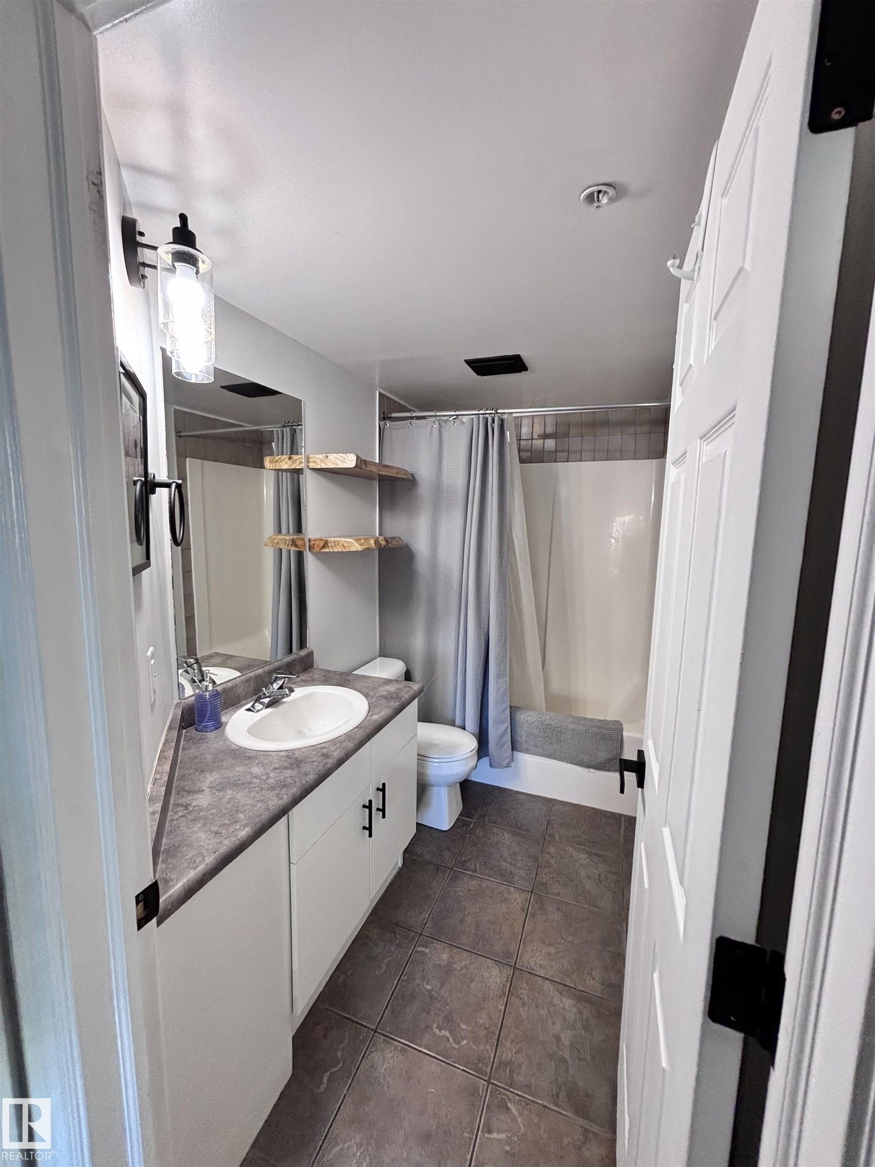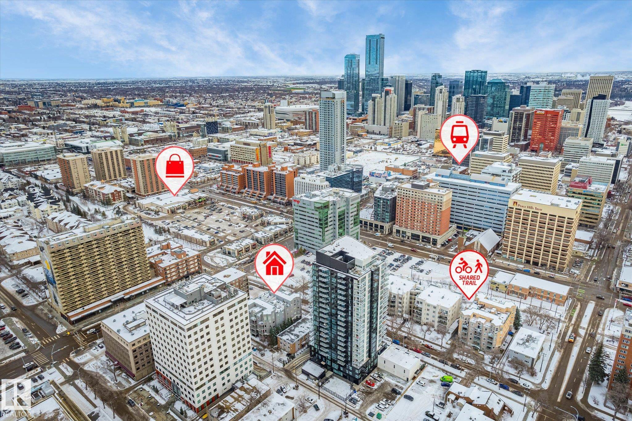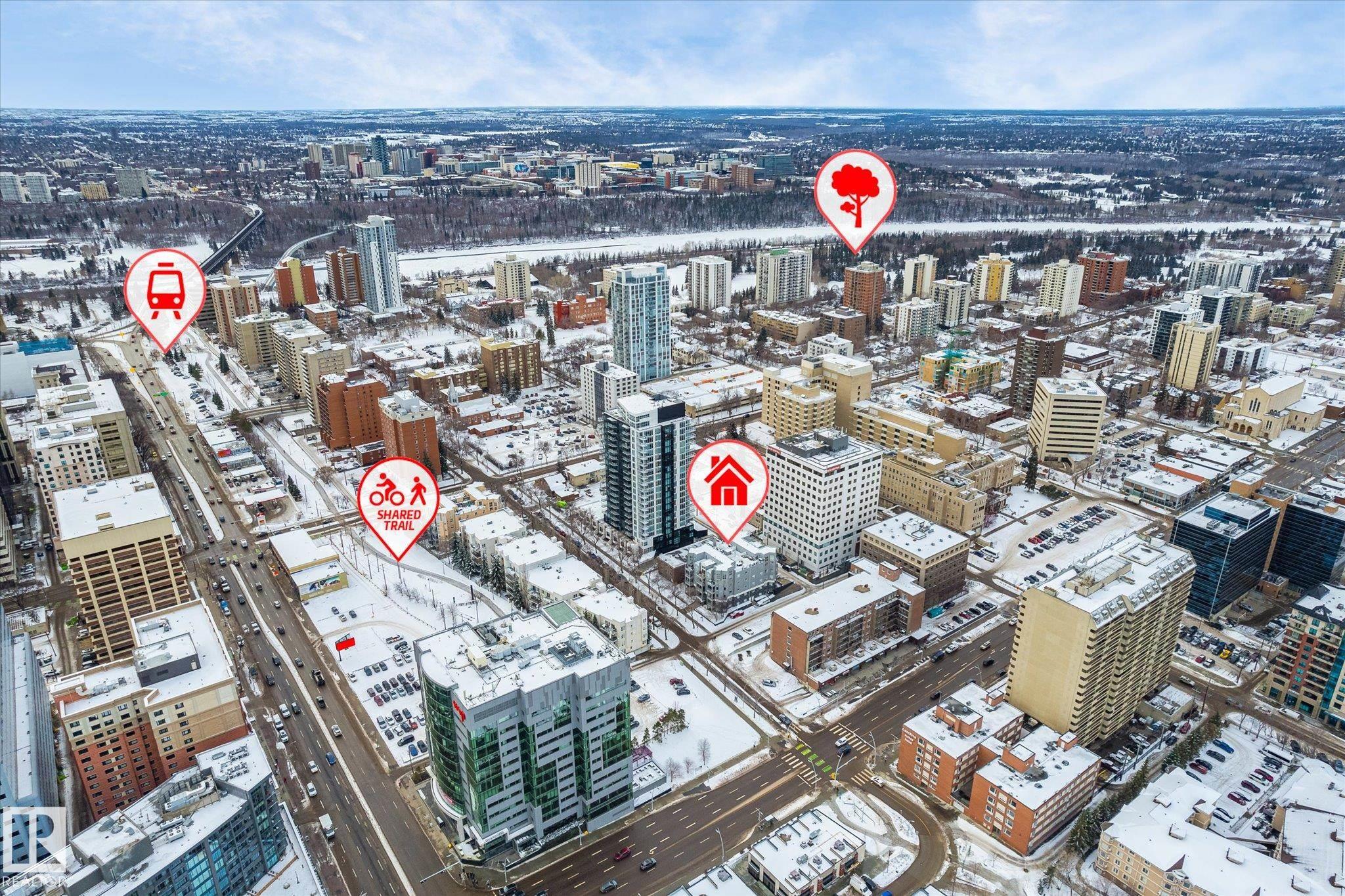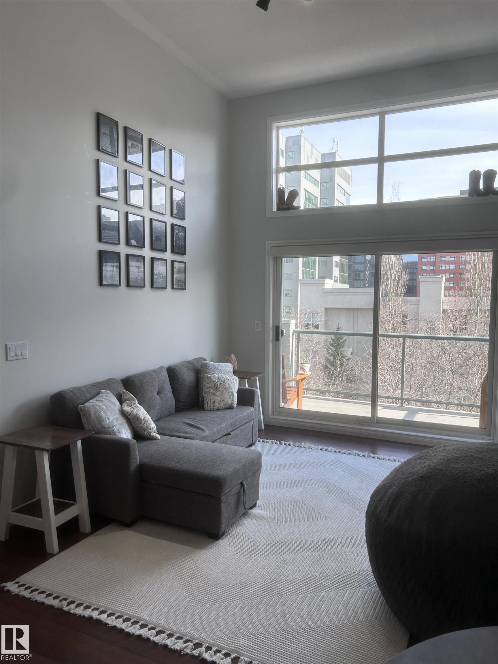 Recently renovated top floor loft style condo in Grandin! This East facing 2 bedroom and 2 full bath open concept floor plan is great for room mates. Features include infloor heating, soaring 12' ceilings, ceramic tile and laminate floor, rounded corners, lots of natural light, insuite laundry & storage. Kitchen has sharp white cabinetry, island and eating bar. Large primary bedroom has walk-in closet and 4 piece ensuite. The huge balcony off the living room has a gas line for bbq. Titled underground parking stall comes with the unit. Located in the ultra convenient Grandin area of Oliver one of Edmonton's most sought after communities. You are steps off Jasper Ave, 1 block to a grocery store, walk 5 mins to LRT (light rail transit) Government Centre stop, 6 mins to Corona LRT, restaurants, the river valley trail system, and parks. Excellent setup for students with University of Alberta, Grant MacEwan and NAIT easily accessible by car or transit. The seller will also repaint the unit prior to possession.